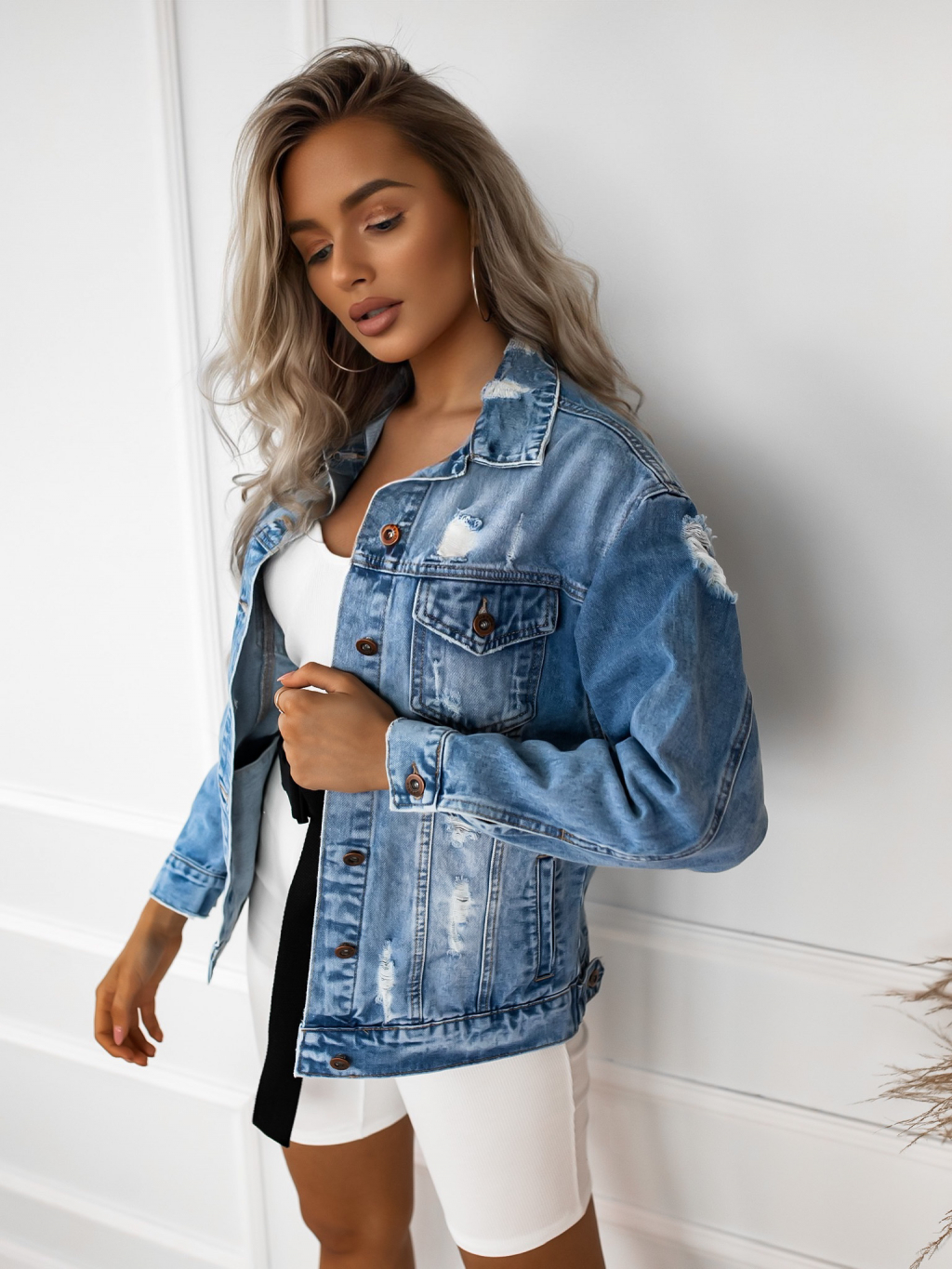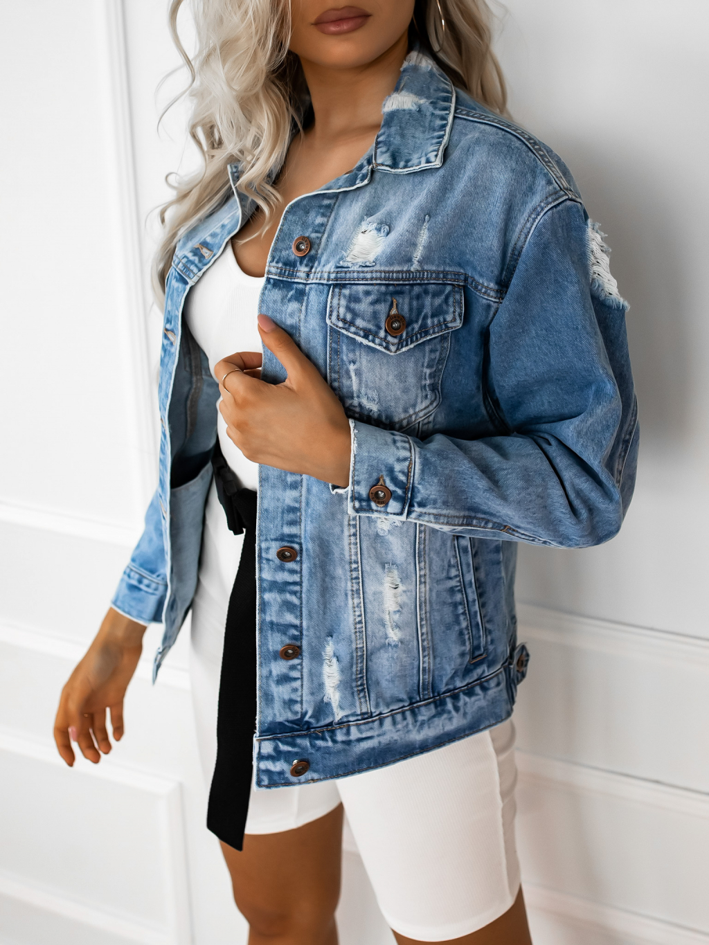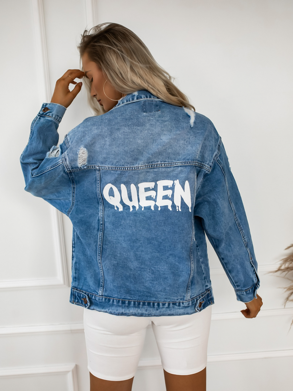 Džínová denim bunda PENELOPE s potiskem na zádech