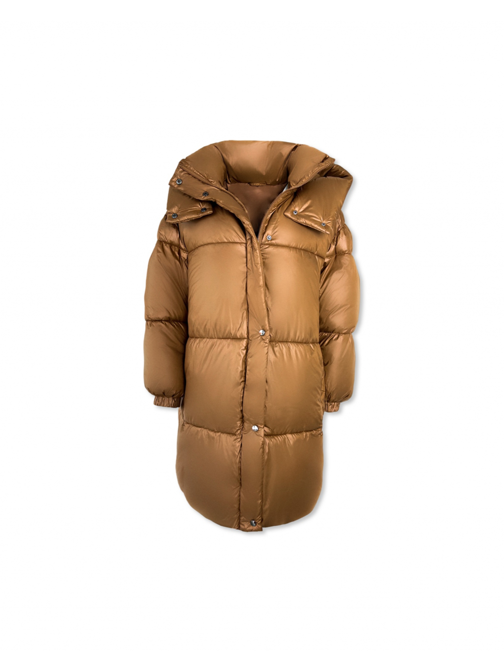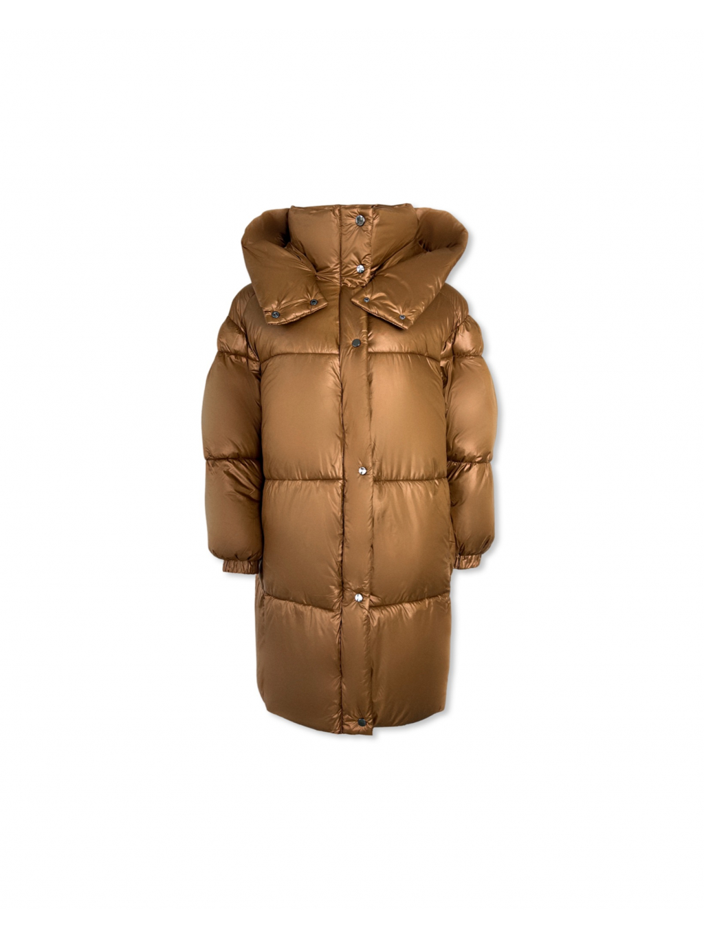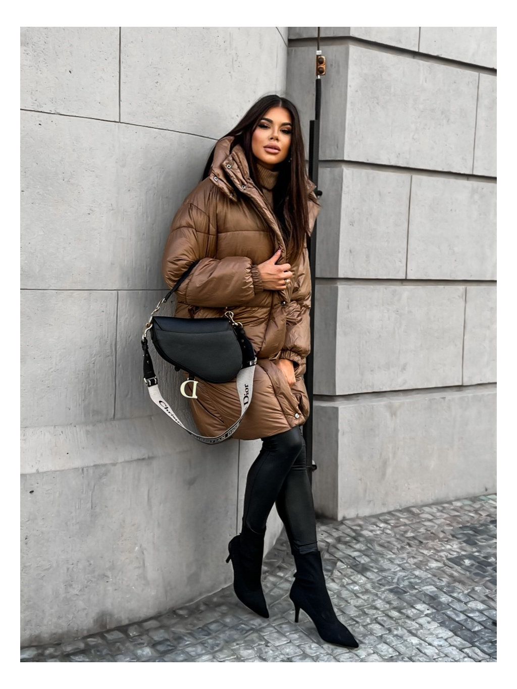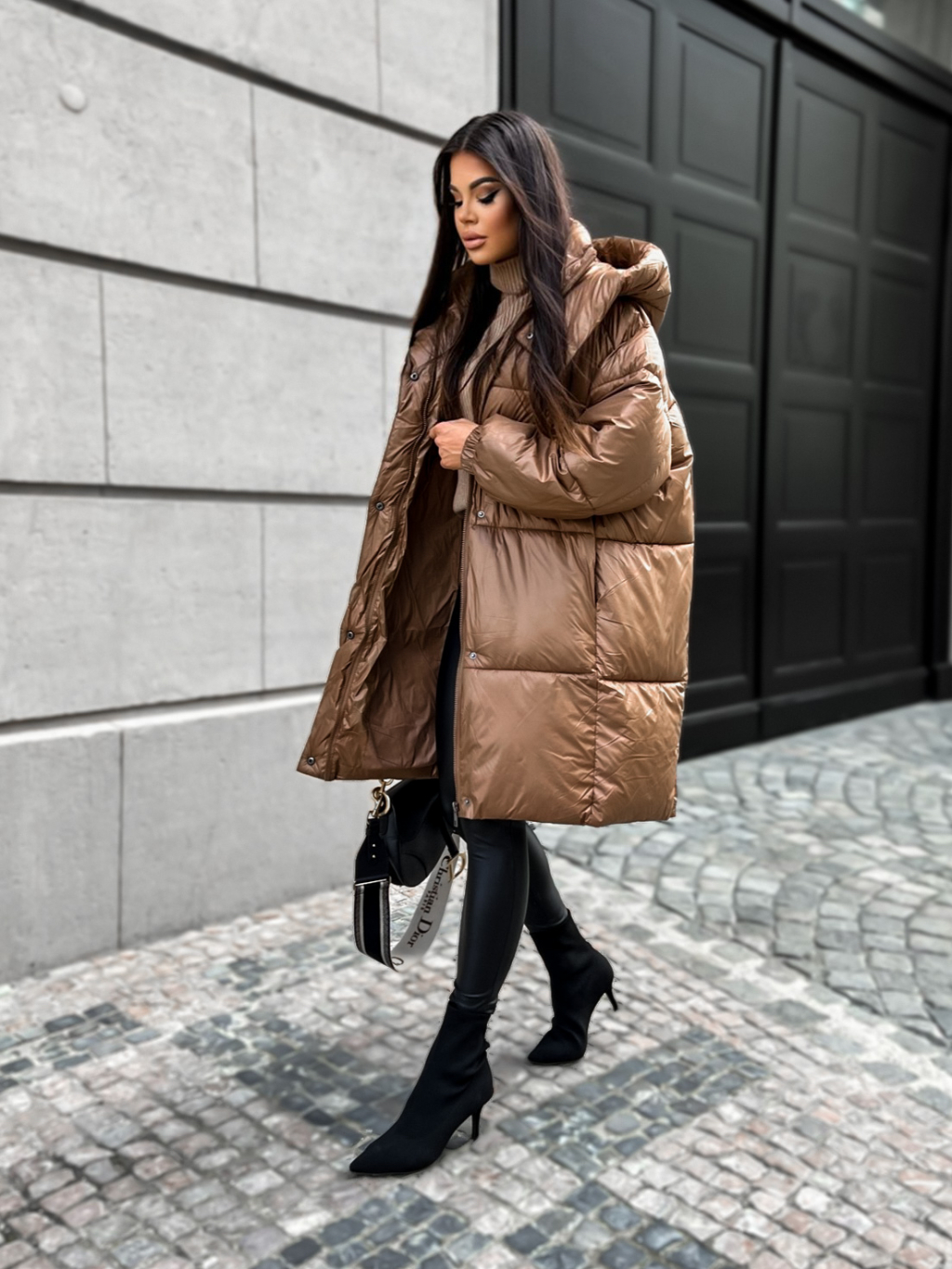 Hnědá dlouhá prošívaná bunda PARANA s kapucí