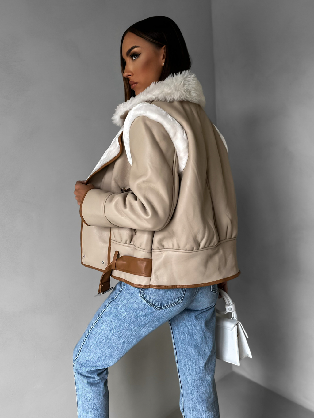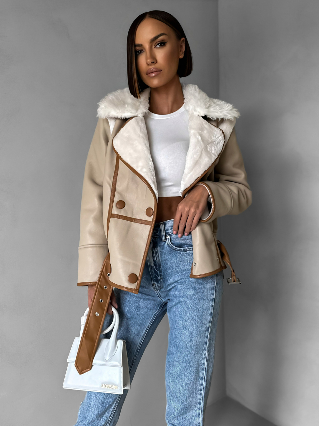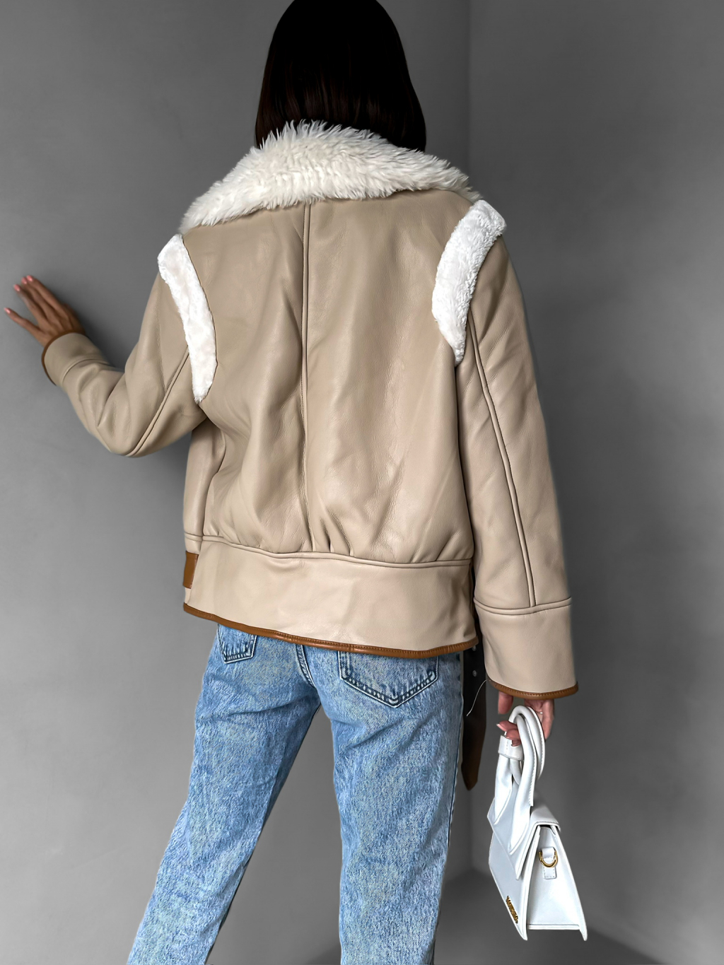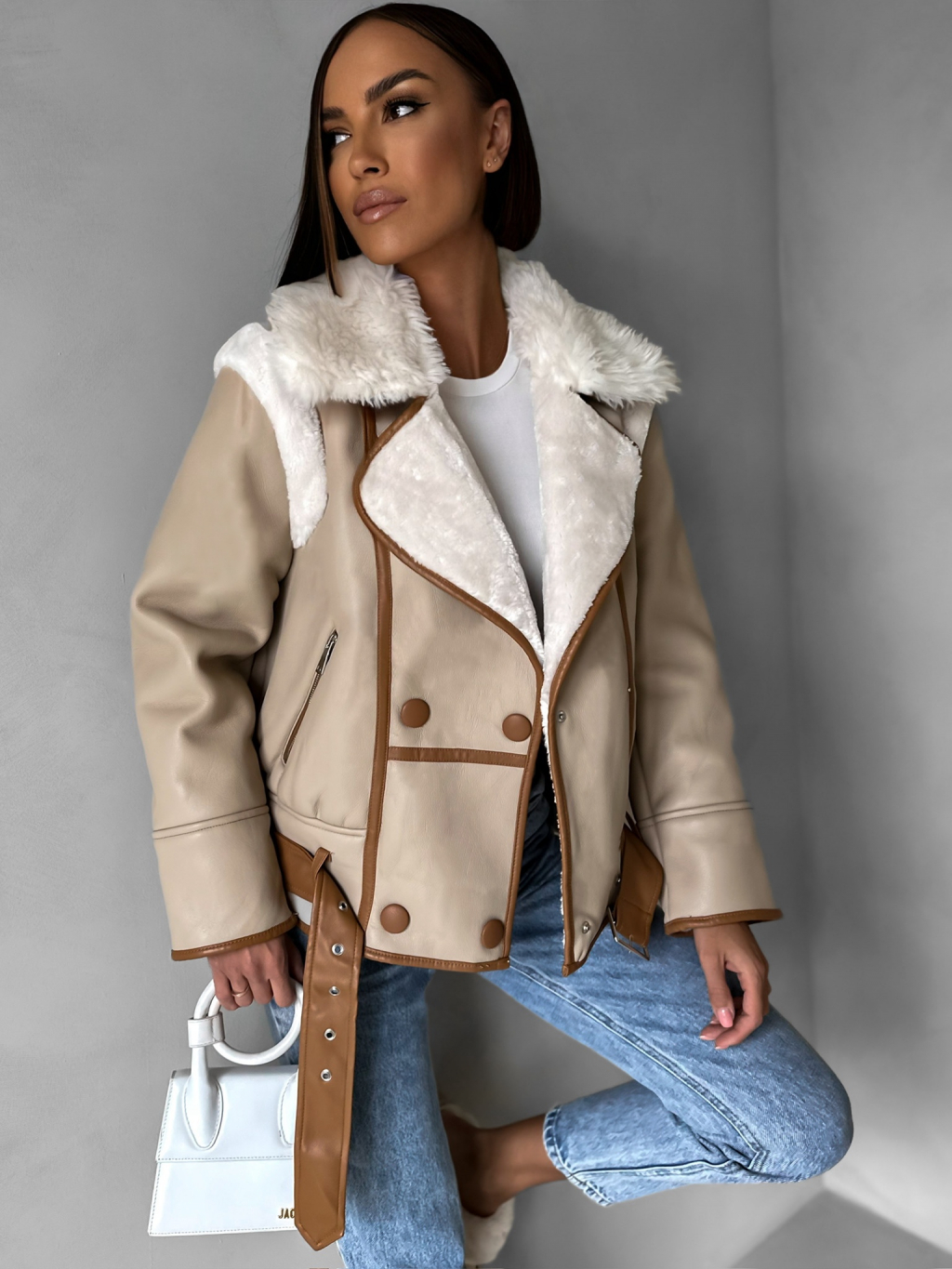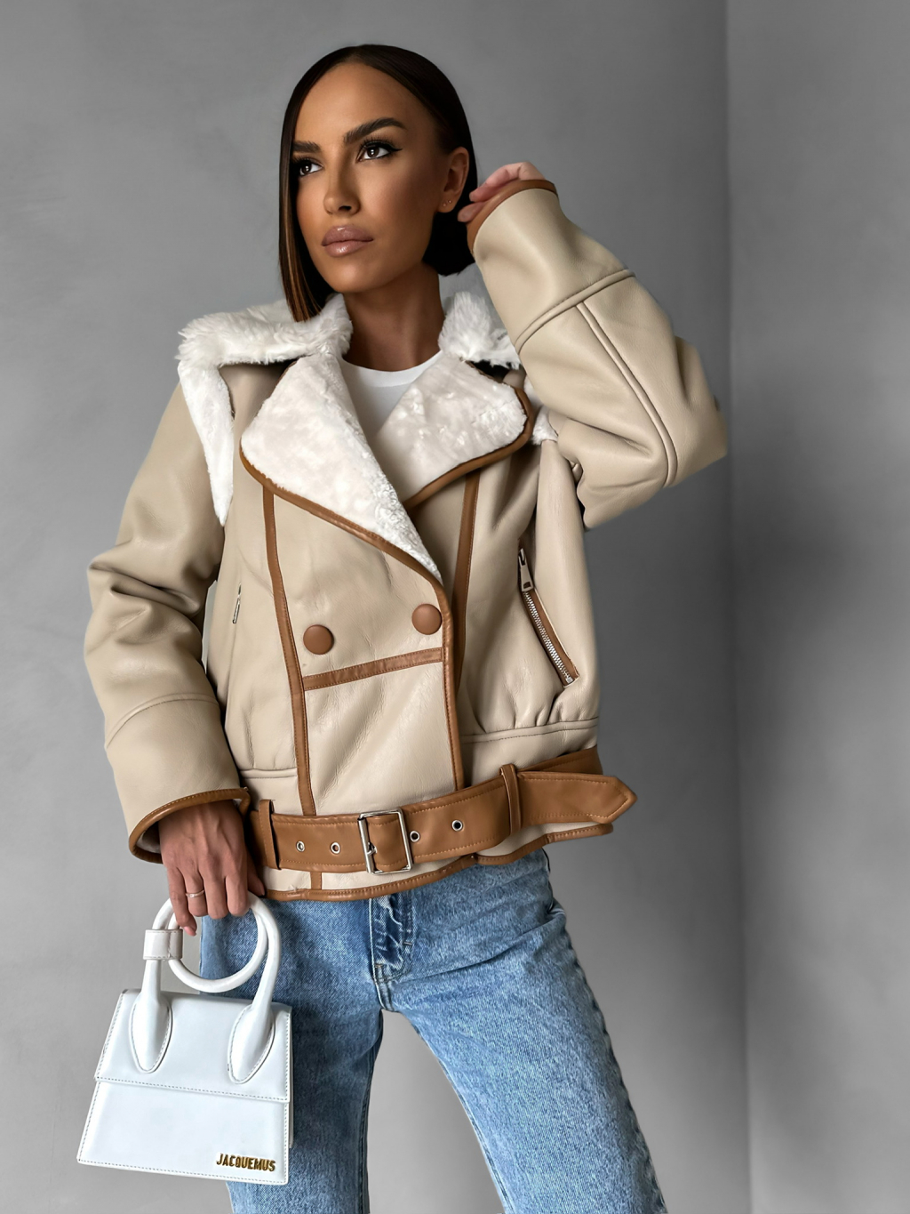Hnědá koženková bunda HEKTOR s kožíškem
