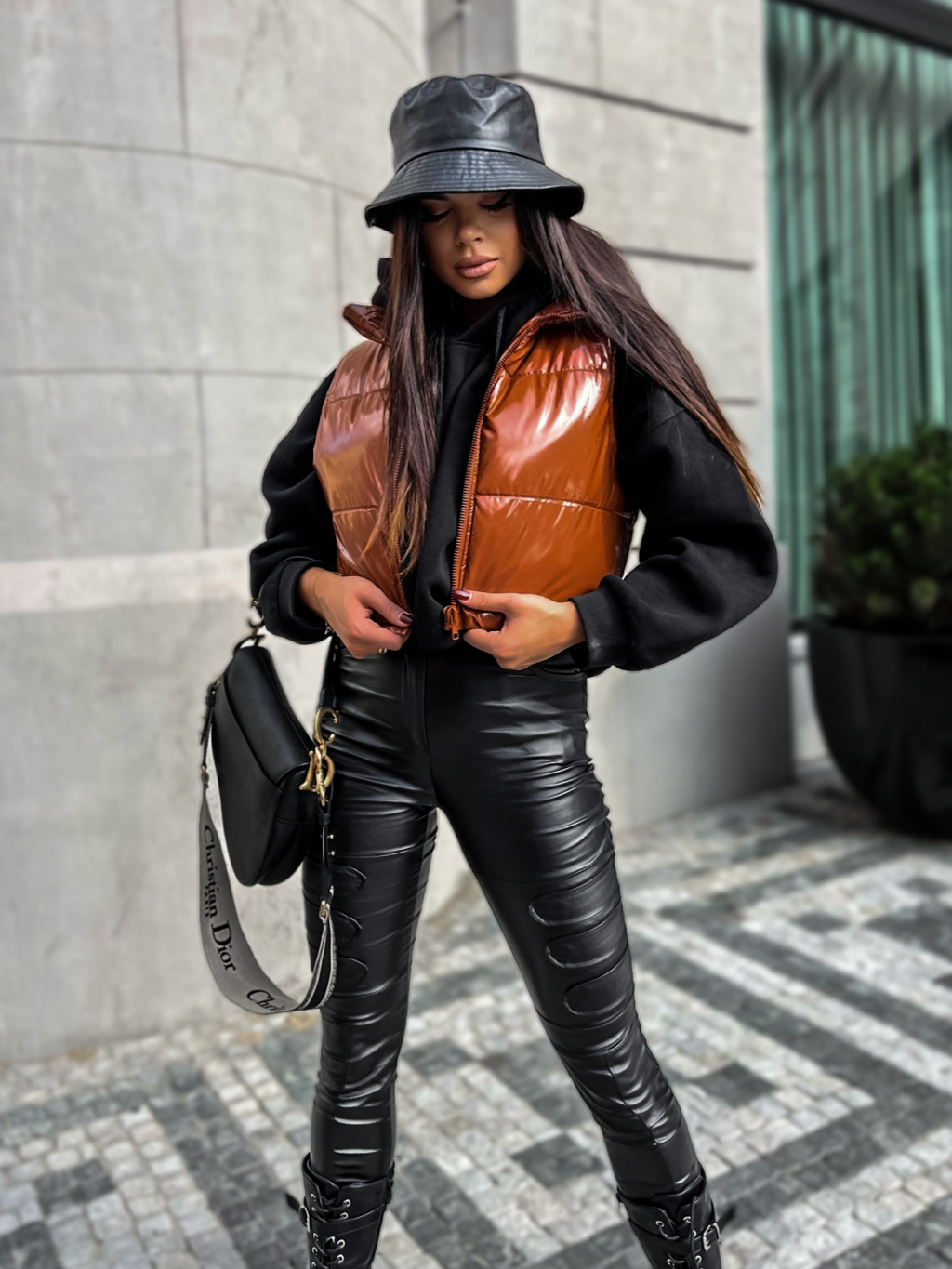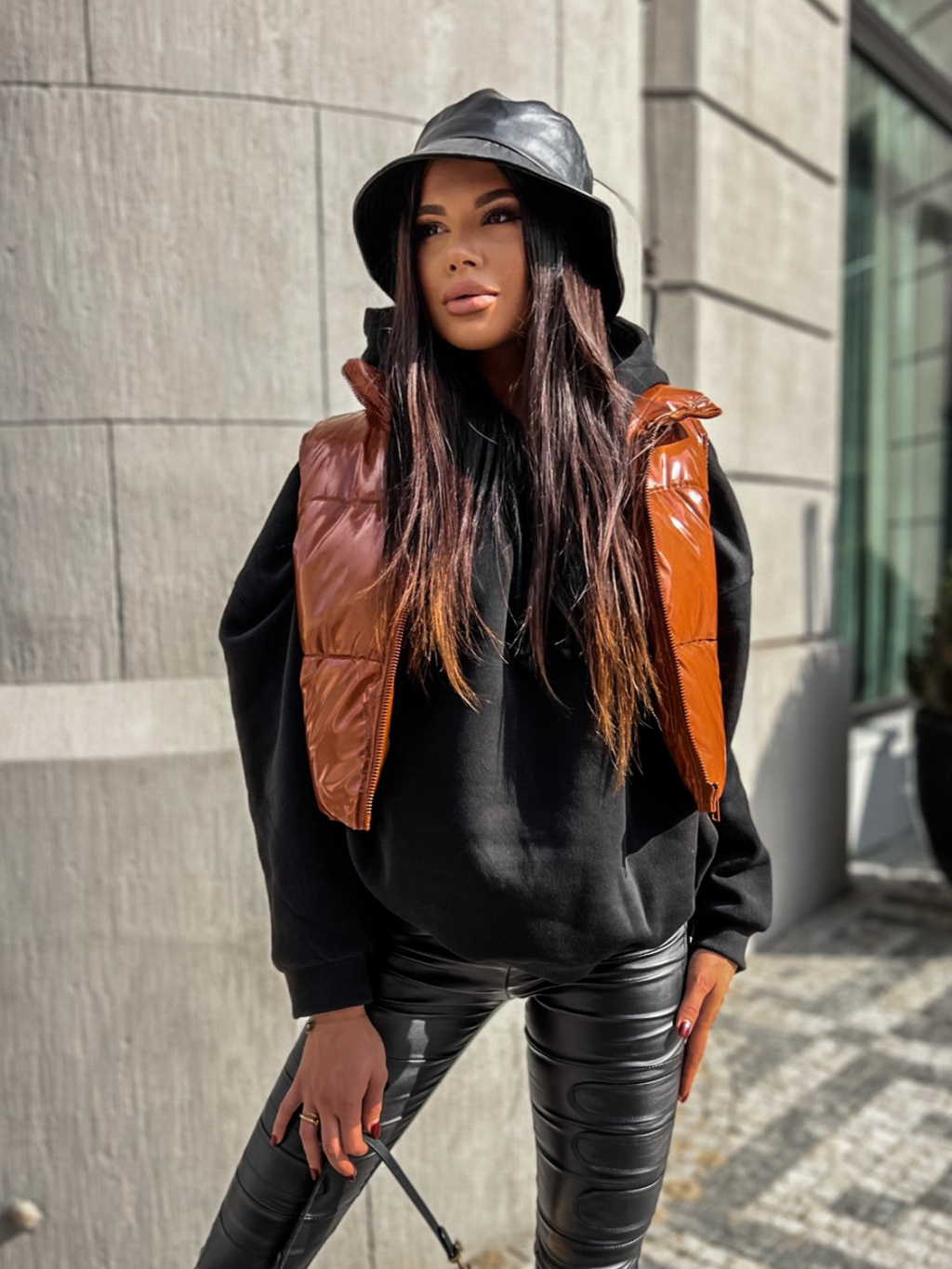 Hnědá lesklá vestička NOYER
