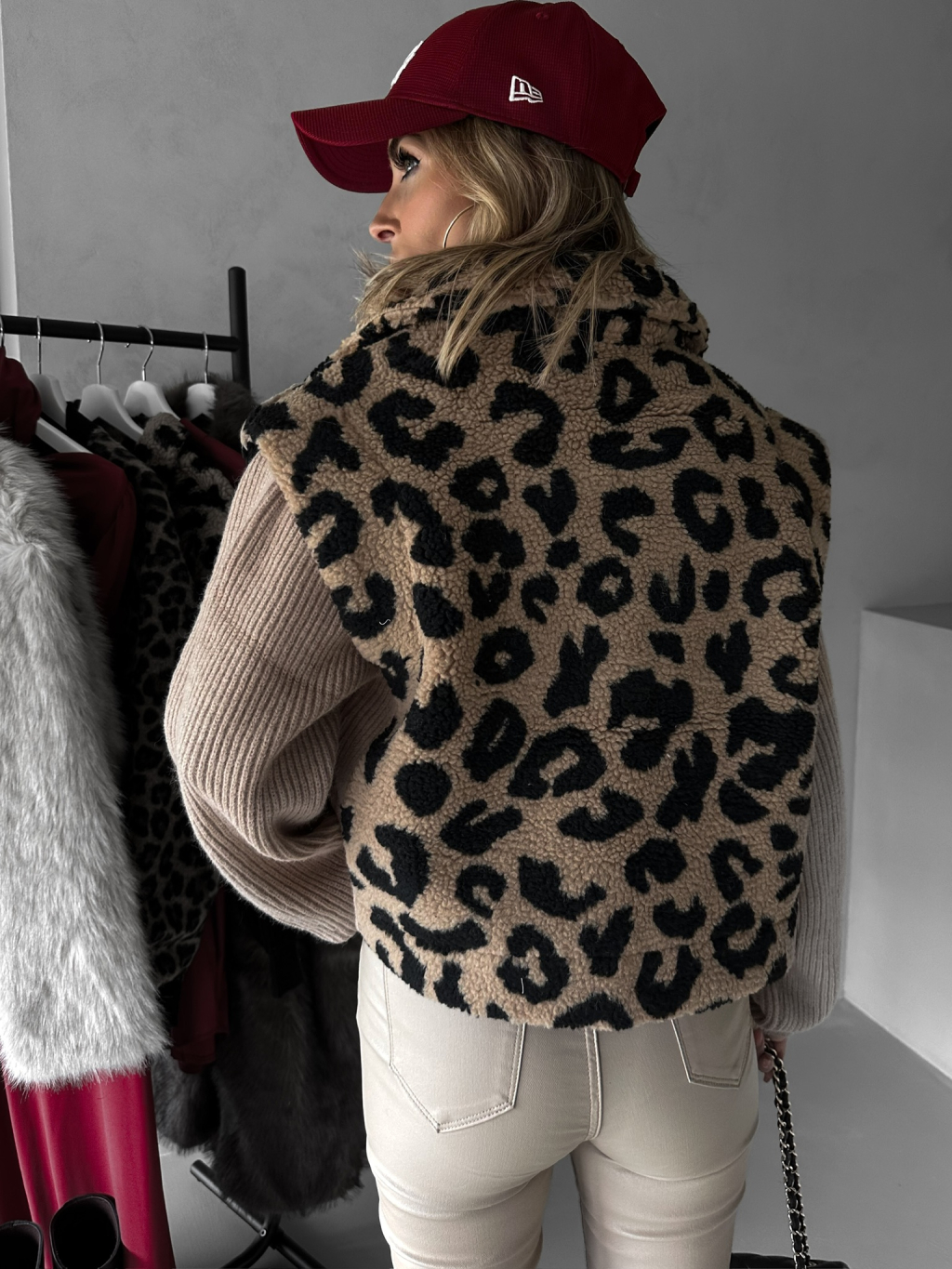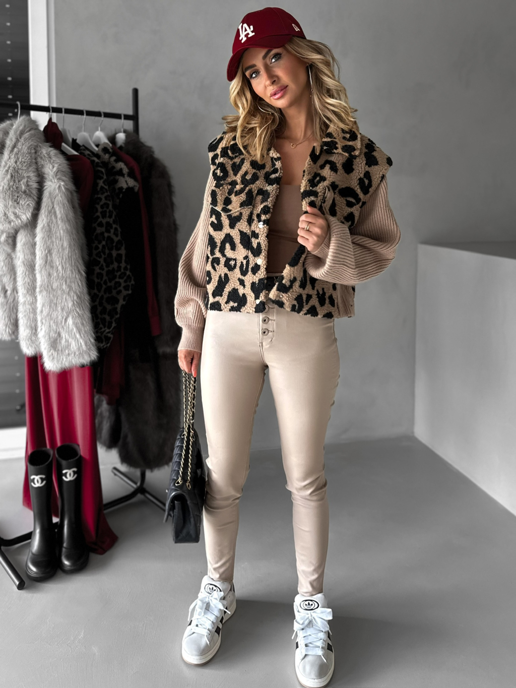 Hnědá svetrová bunda MARALAA s gepardím vzorem