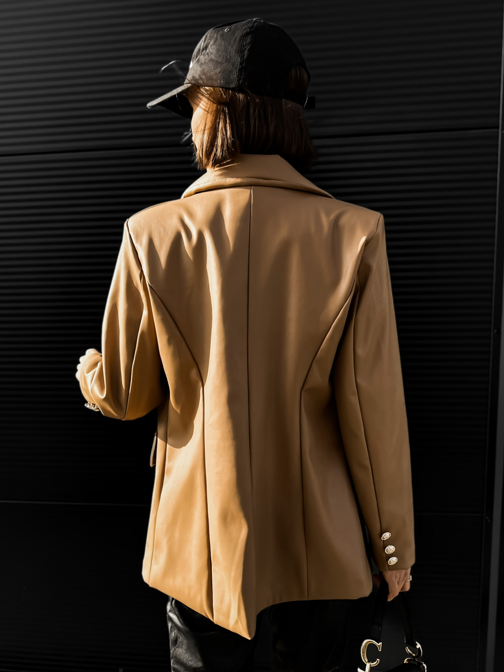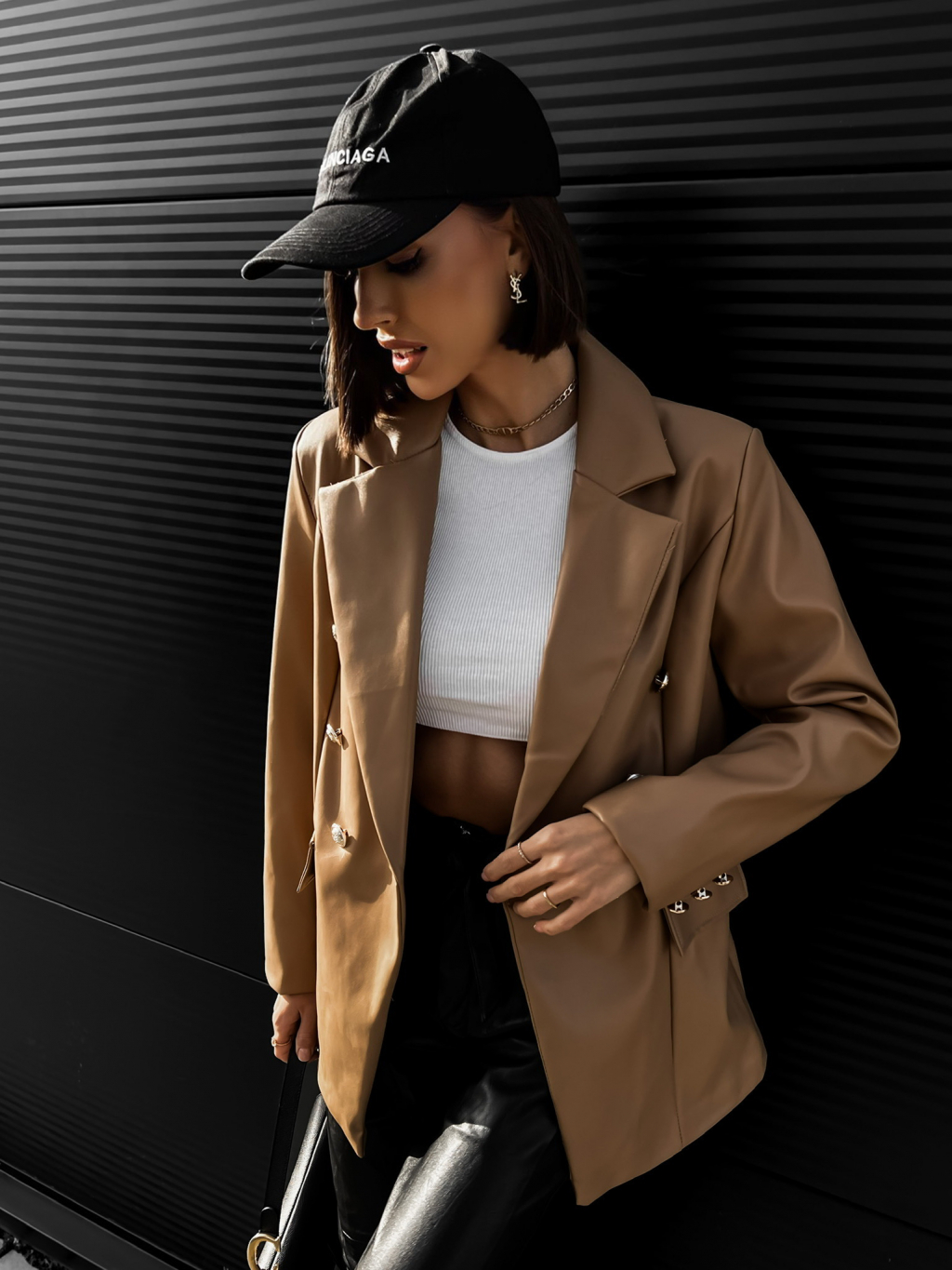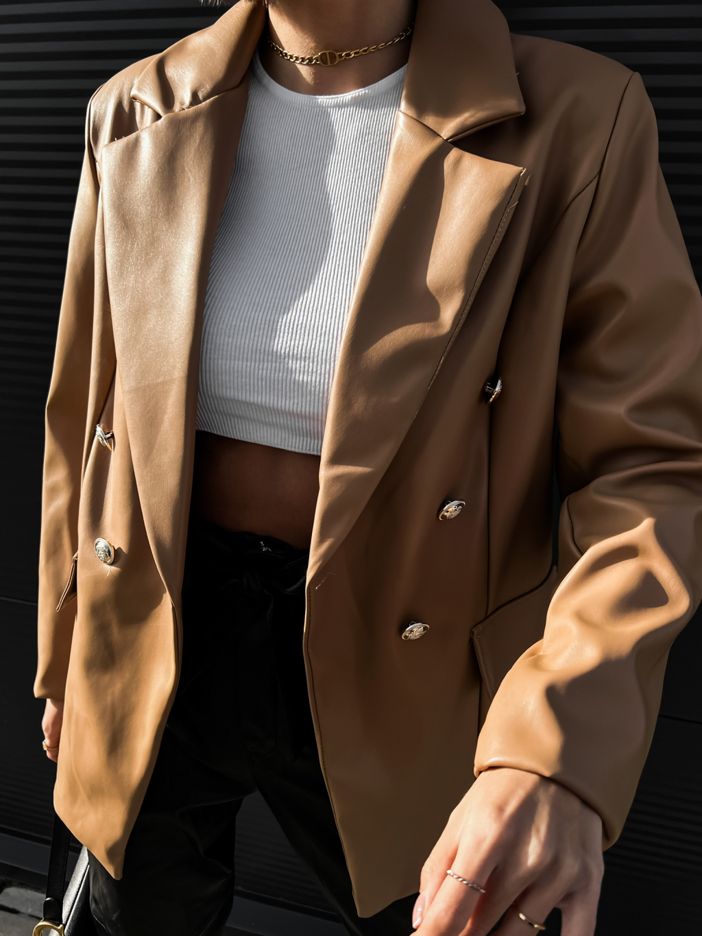 Hnědé koženkové sako PALLADI s knoflíky