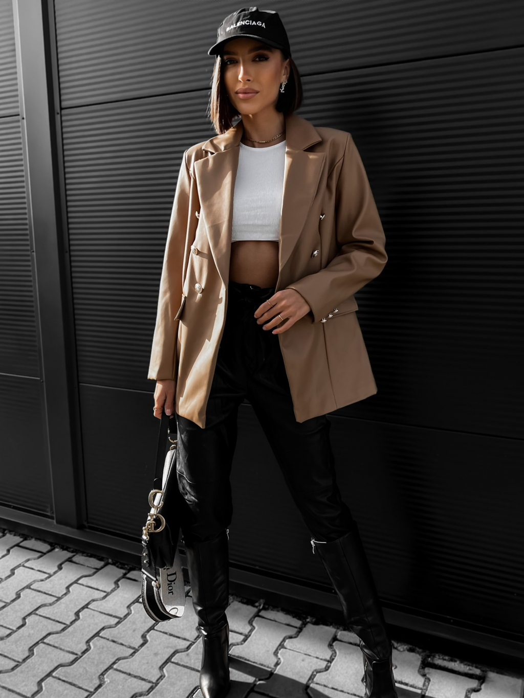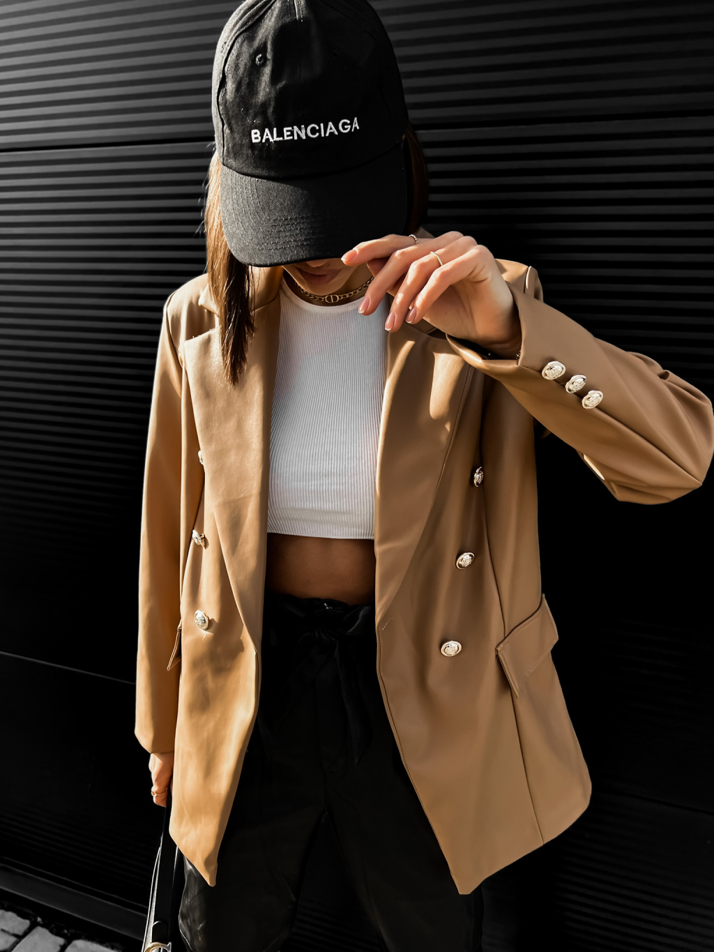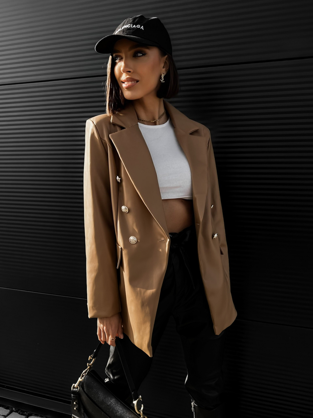 Hnědé koženkové sako PALLADI s knoflíky