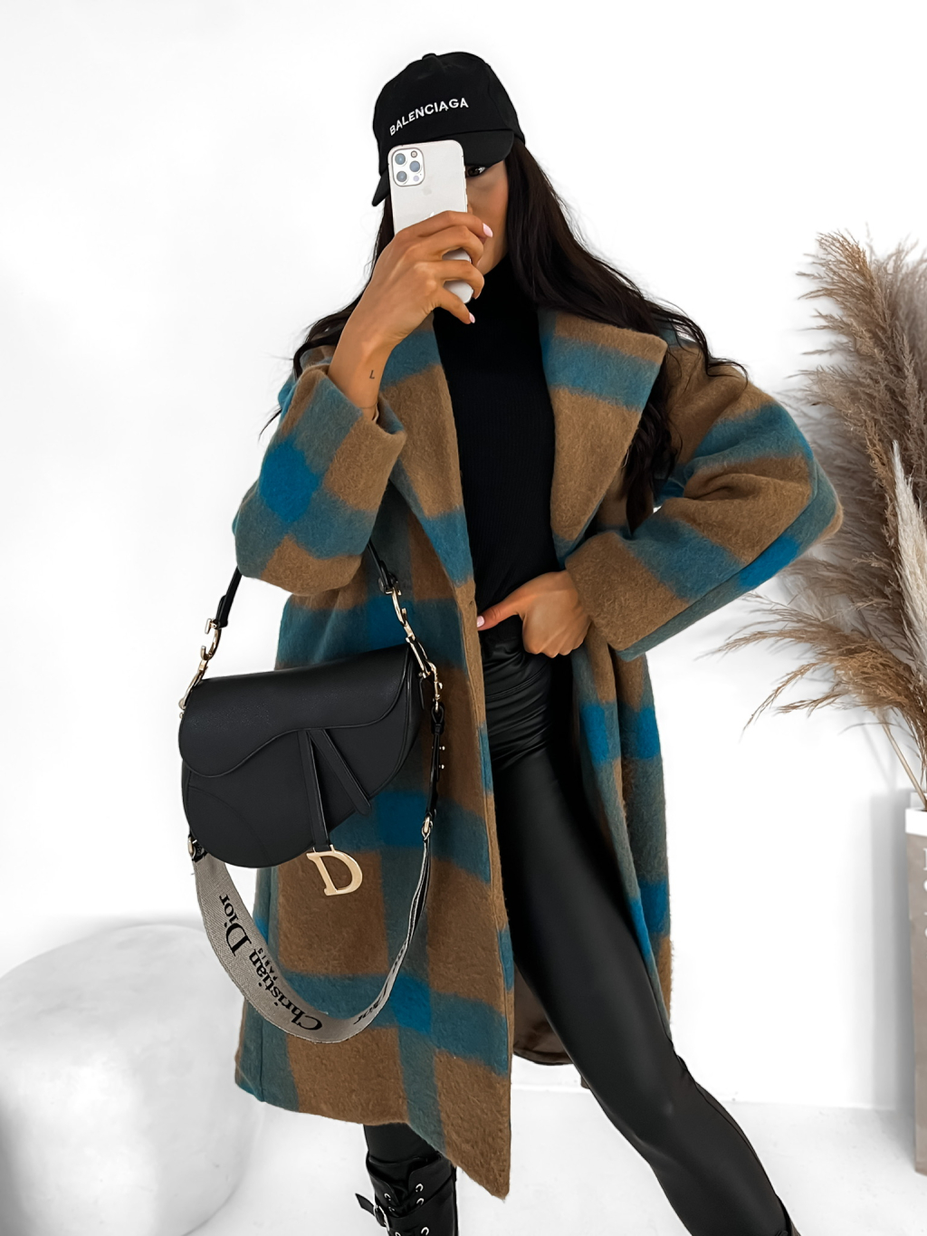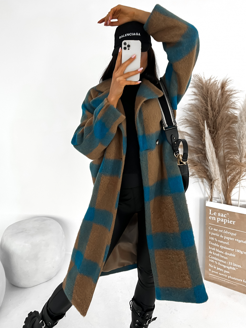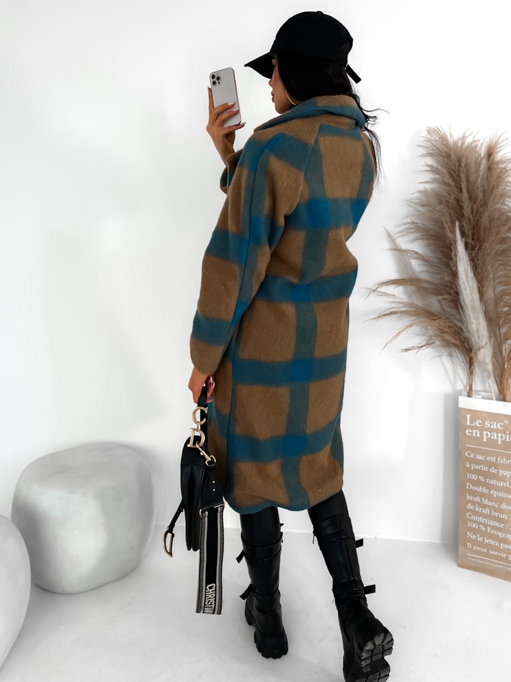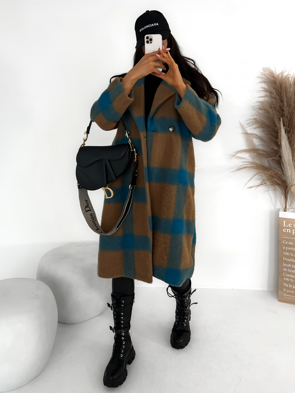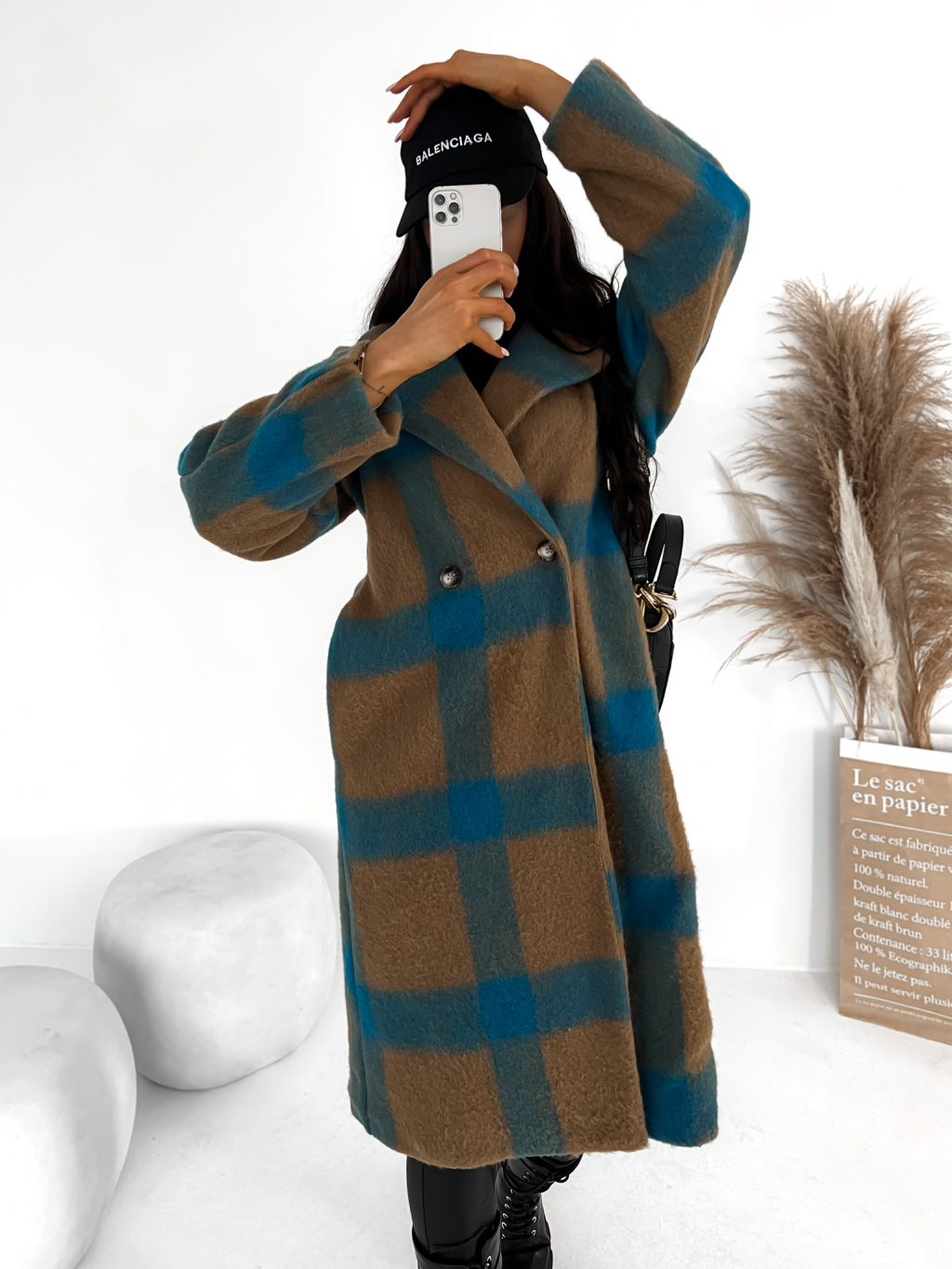 Hnědo modrý károvaný kabát CORIA s knoflíky