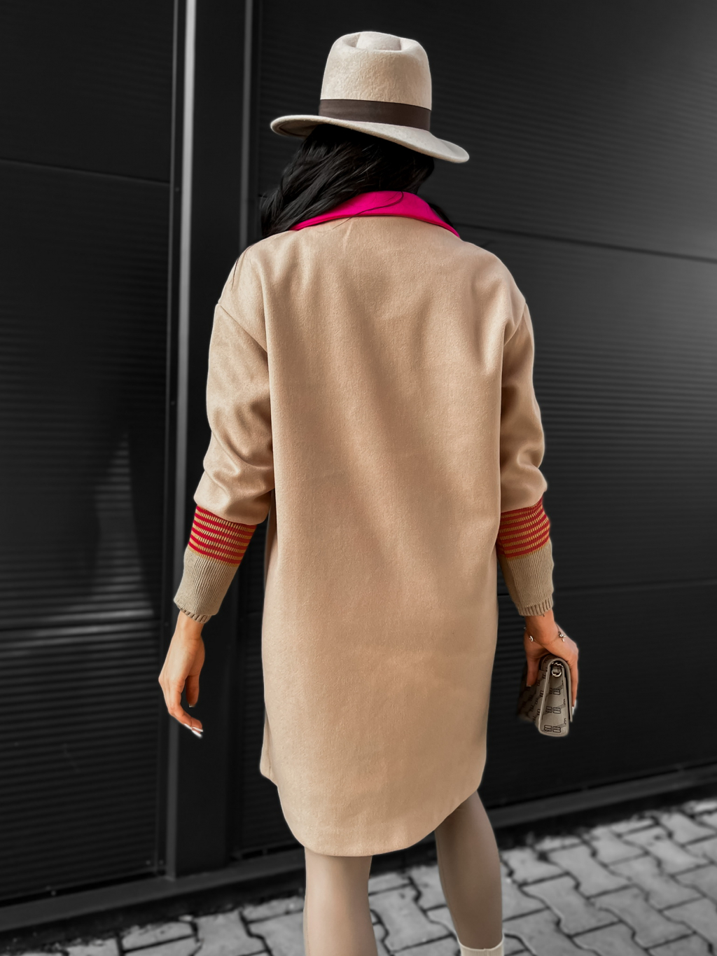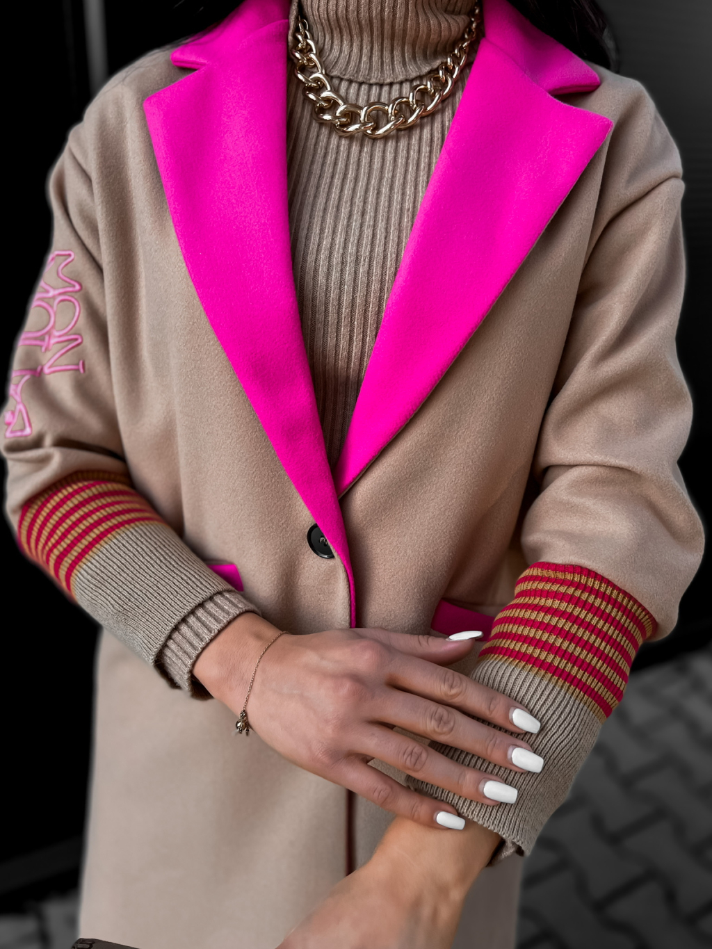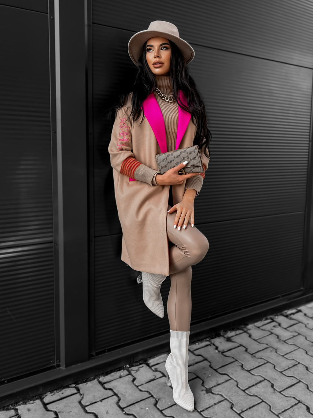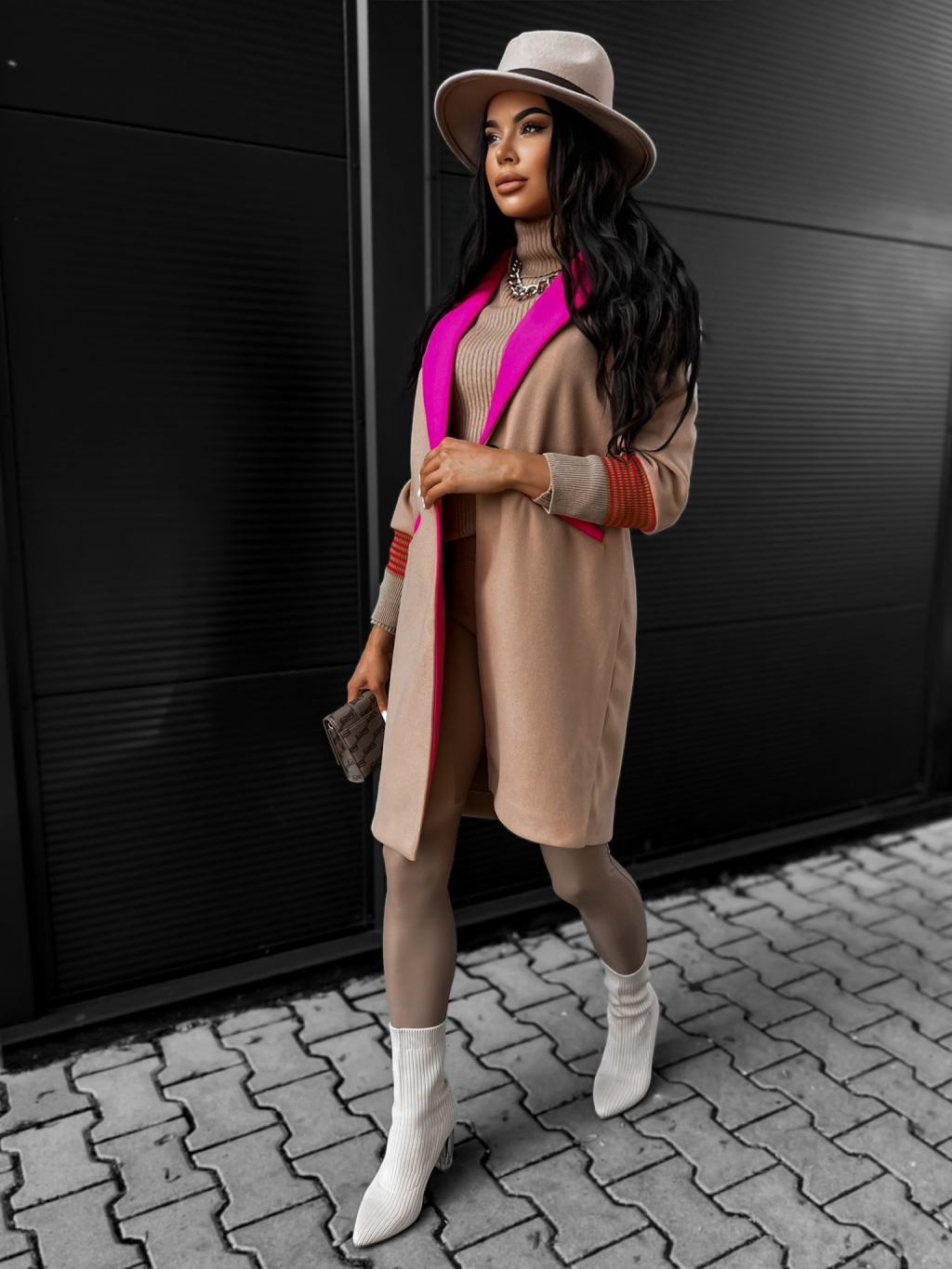 Hnědý elegantní kabátek FINNIA s potiskem