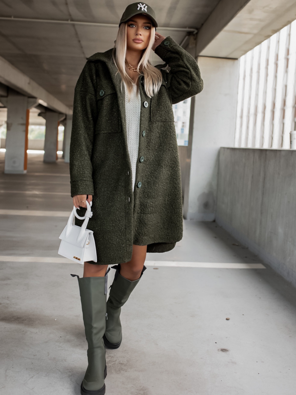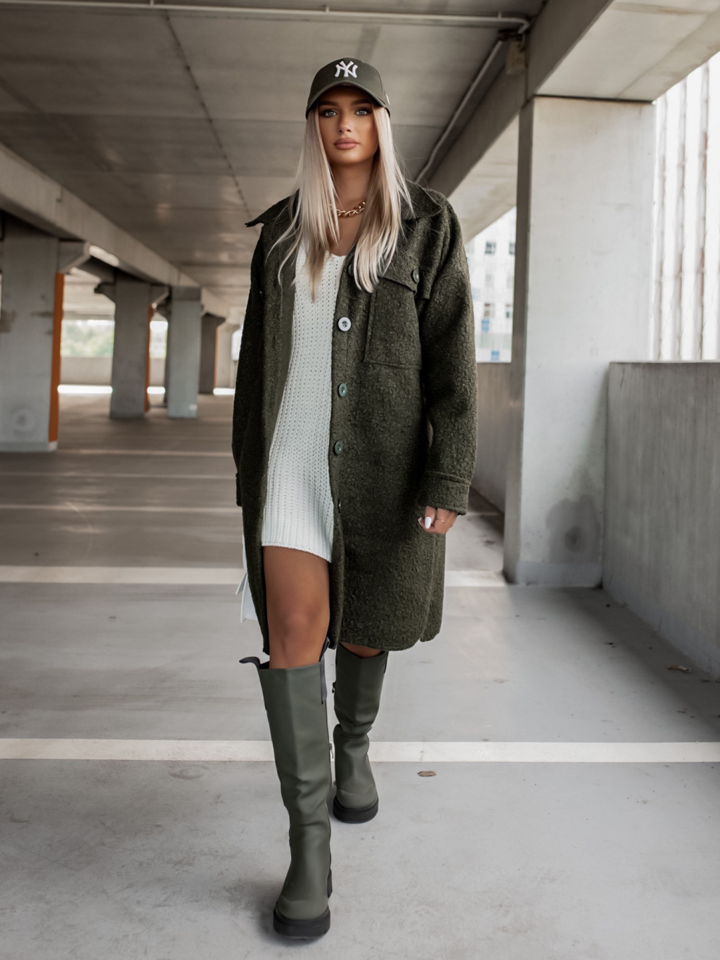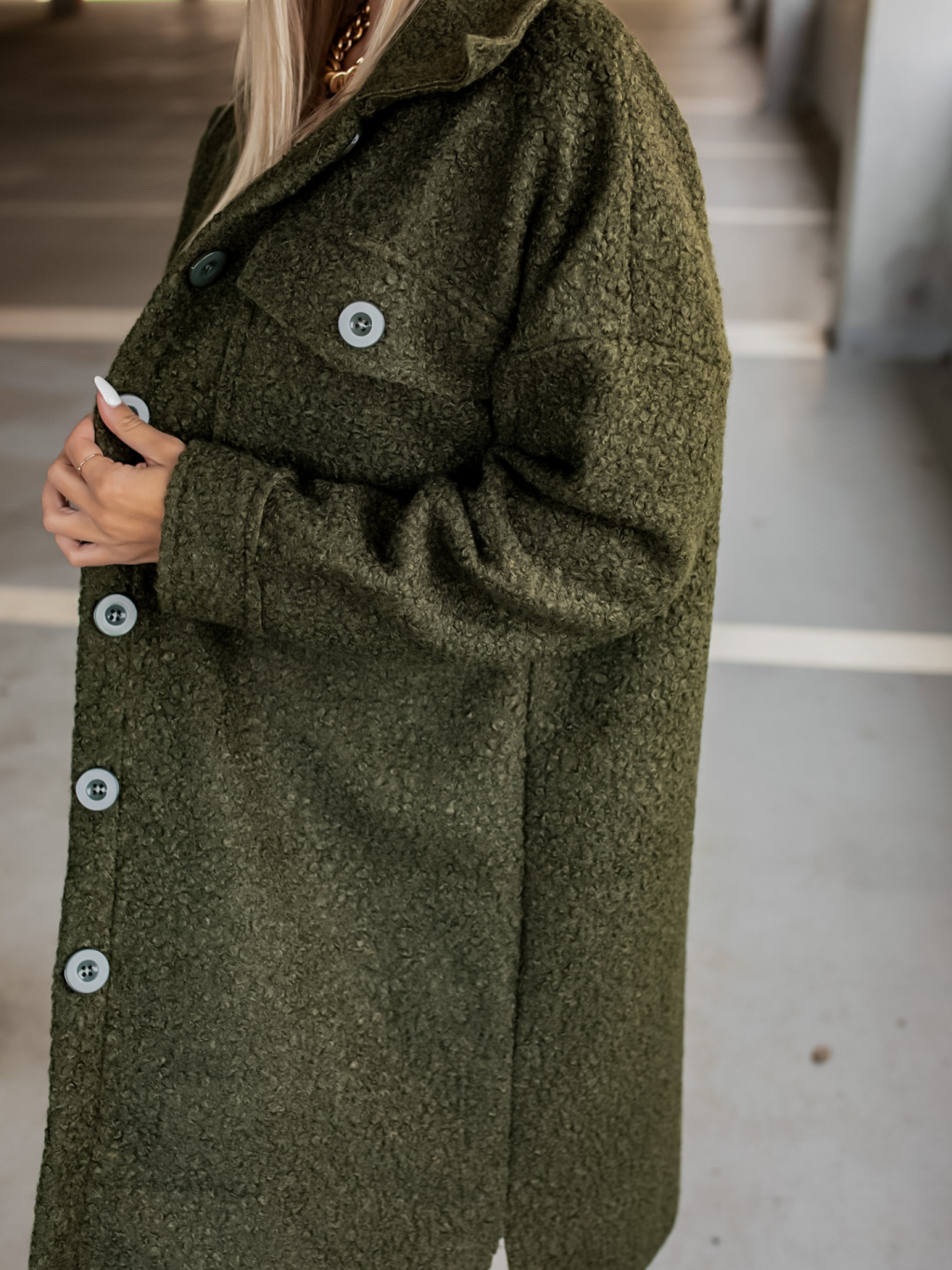 Khaki oversize kabát RESULT na knoflíky