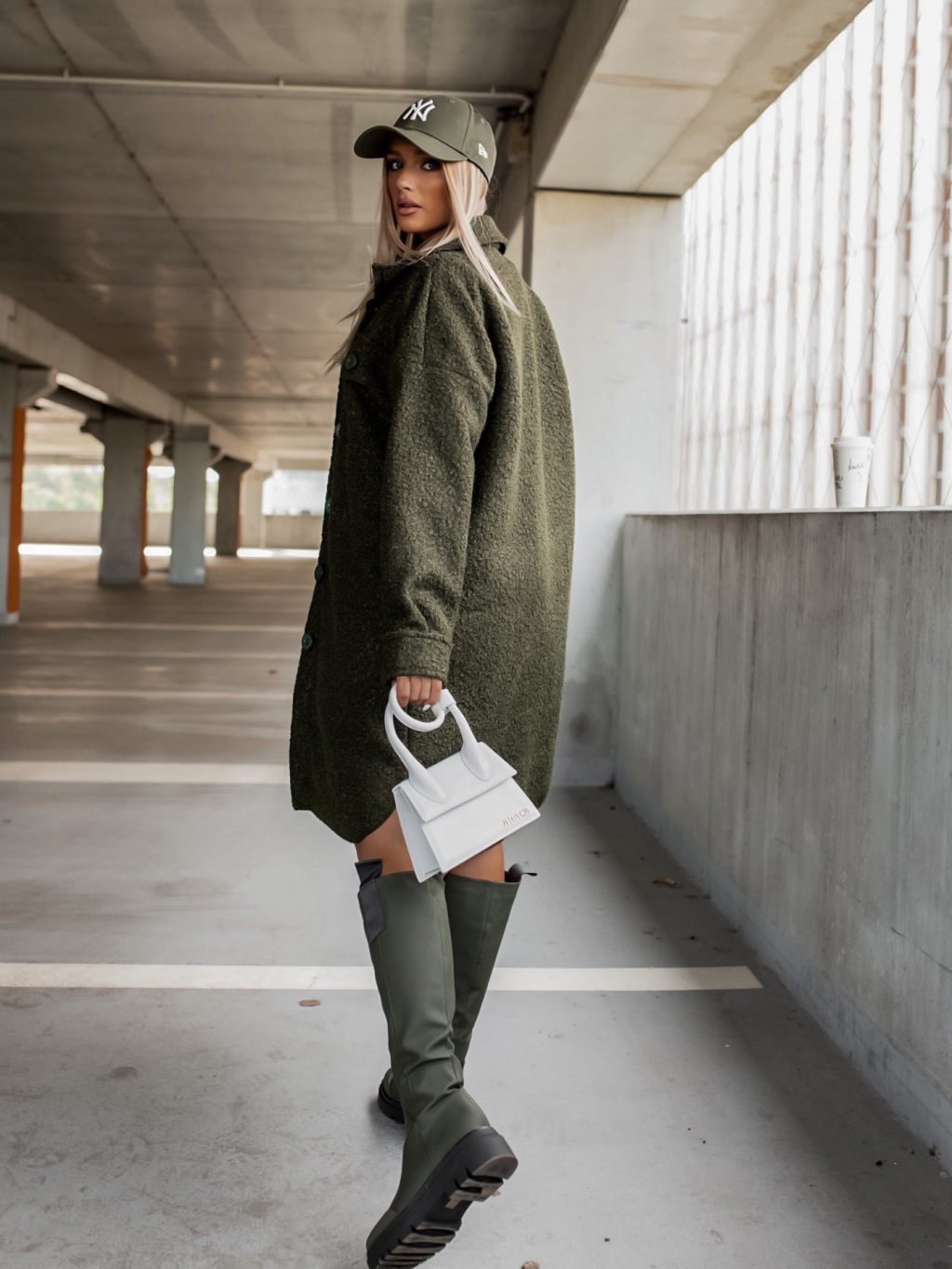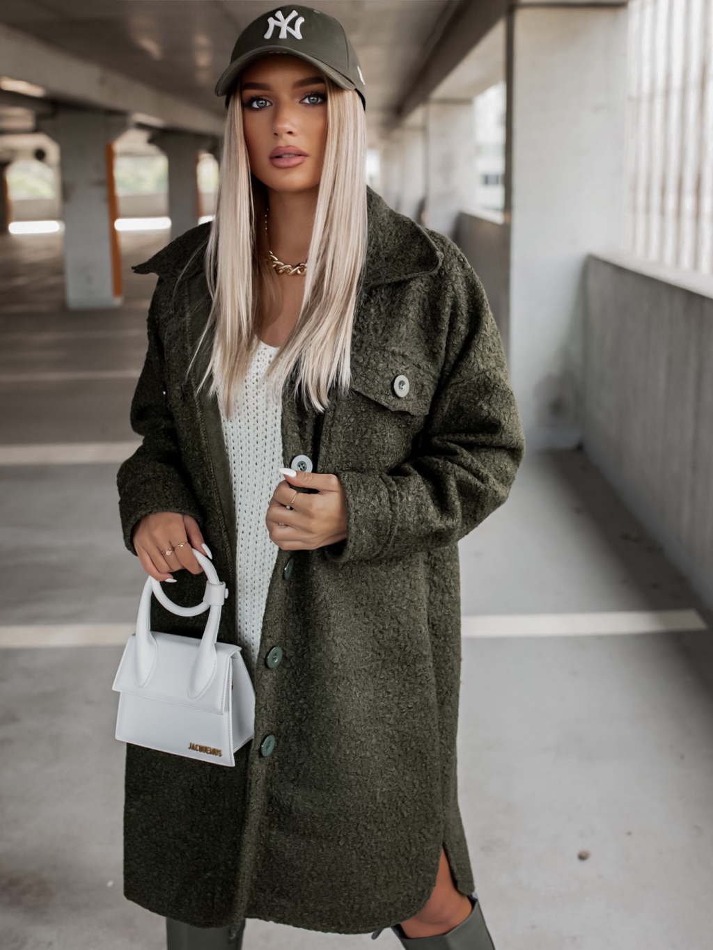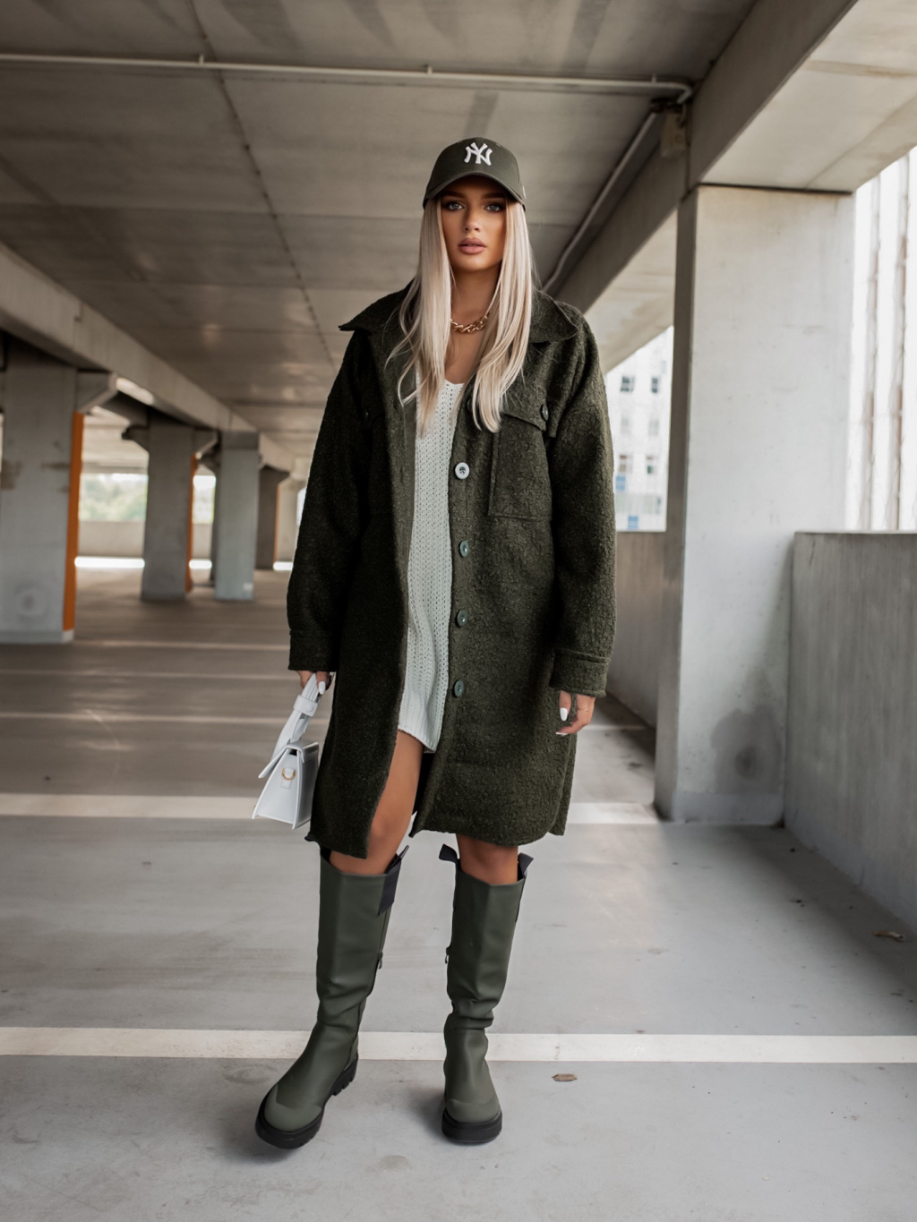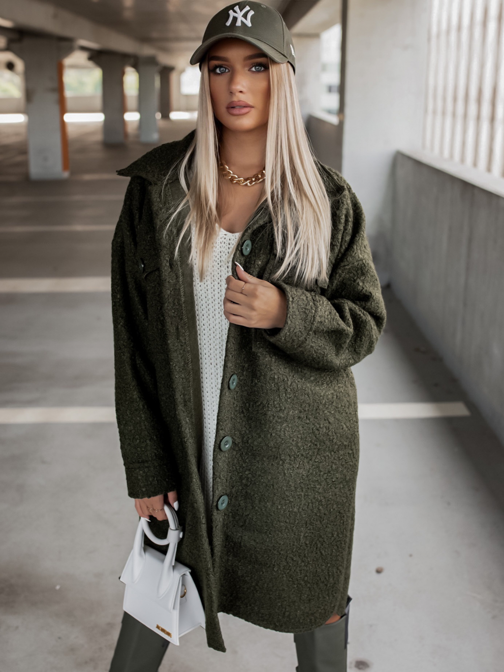 Khaki oversize kabát RESULT na knoflíky