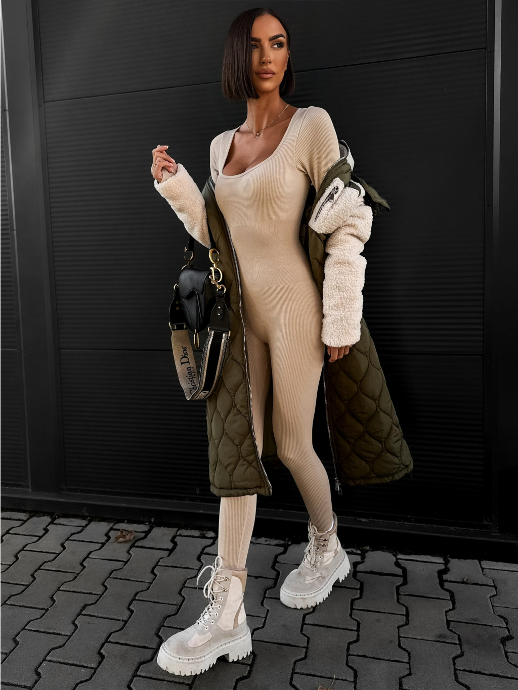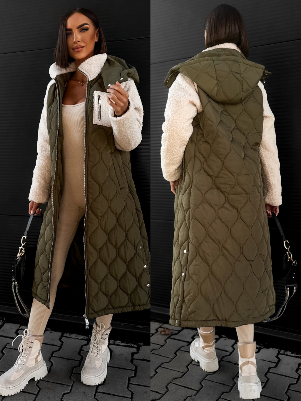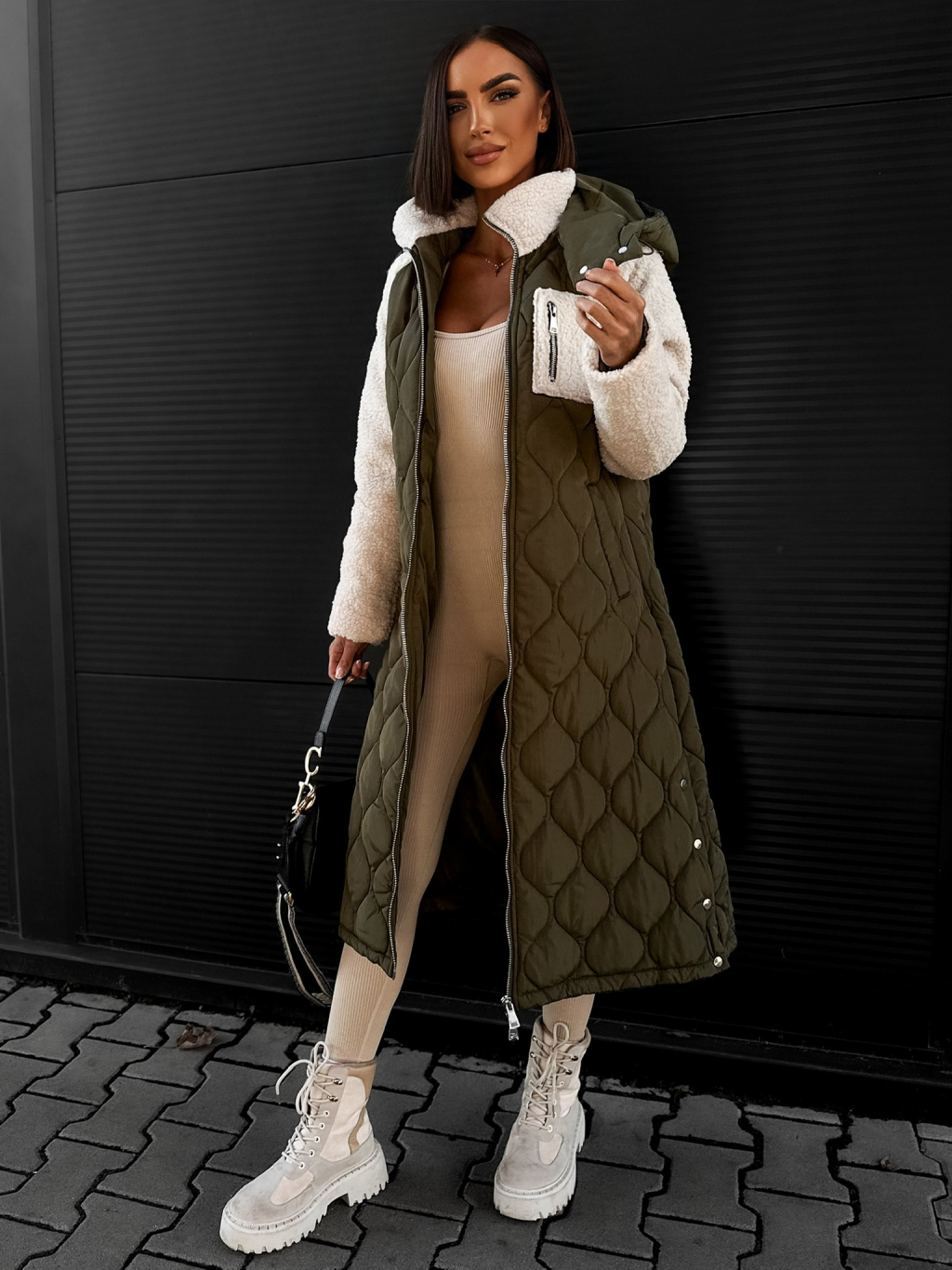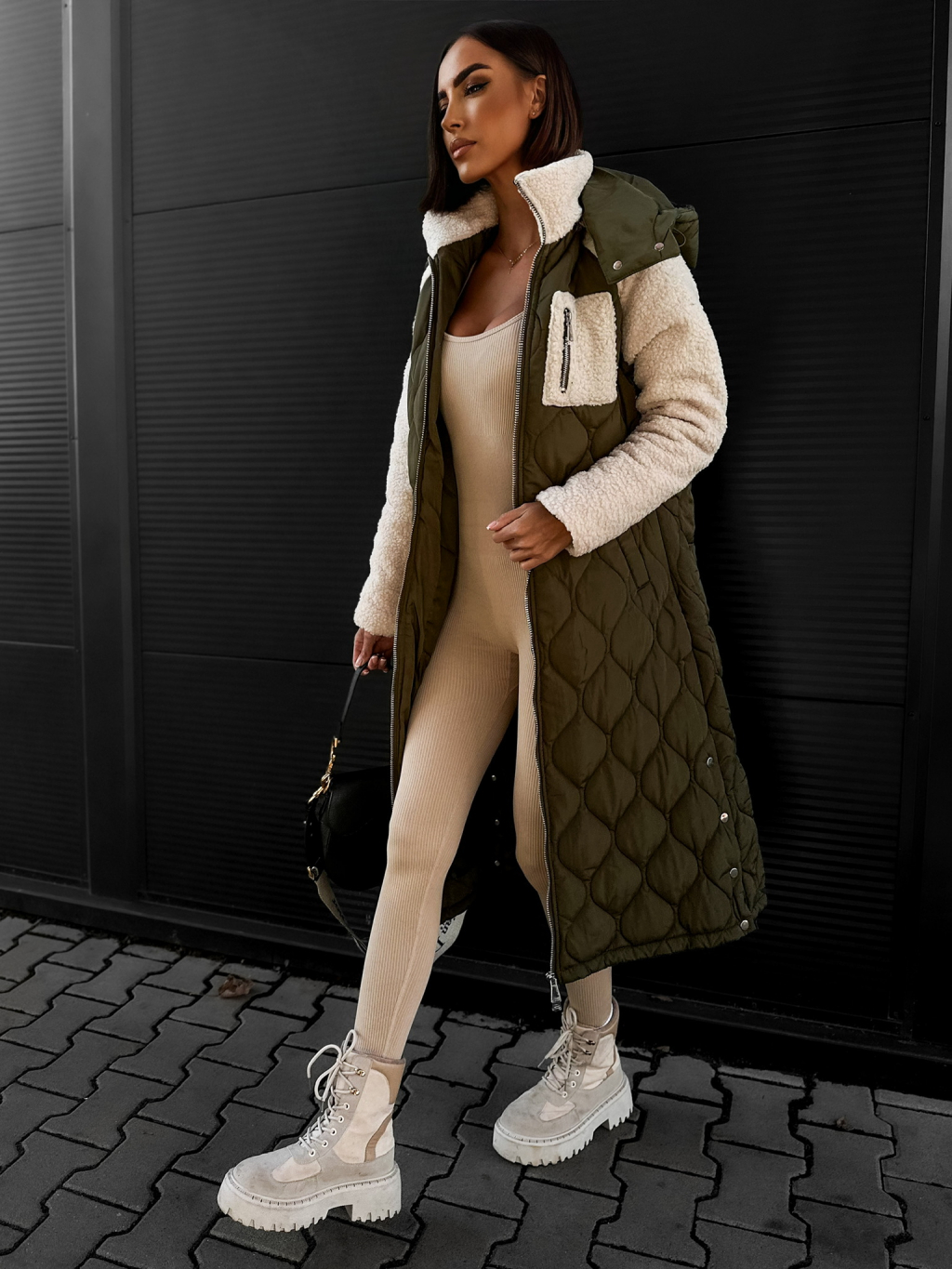Khaki prošívaná bunda LYKOS
