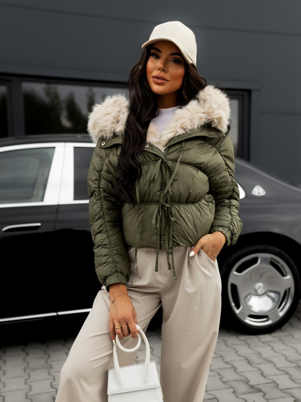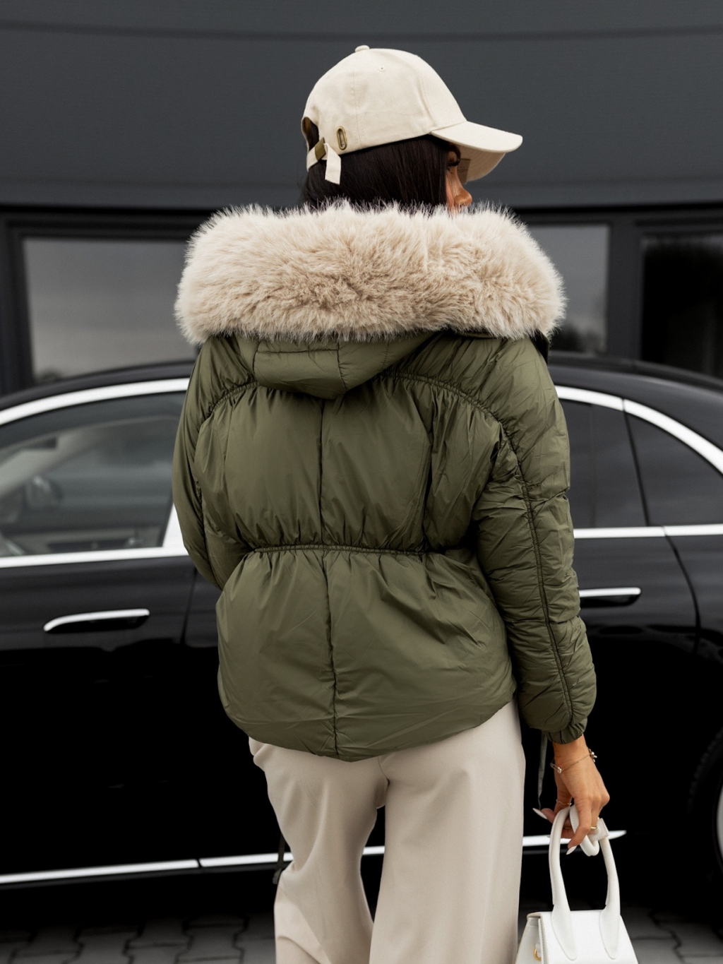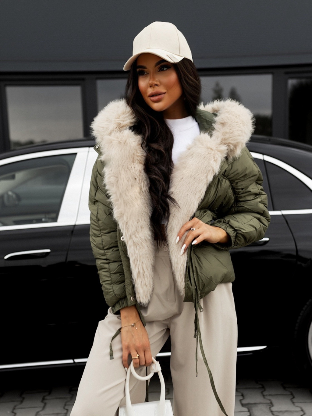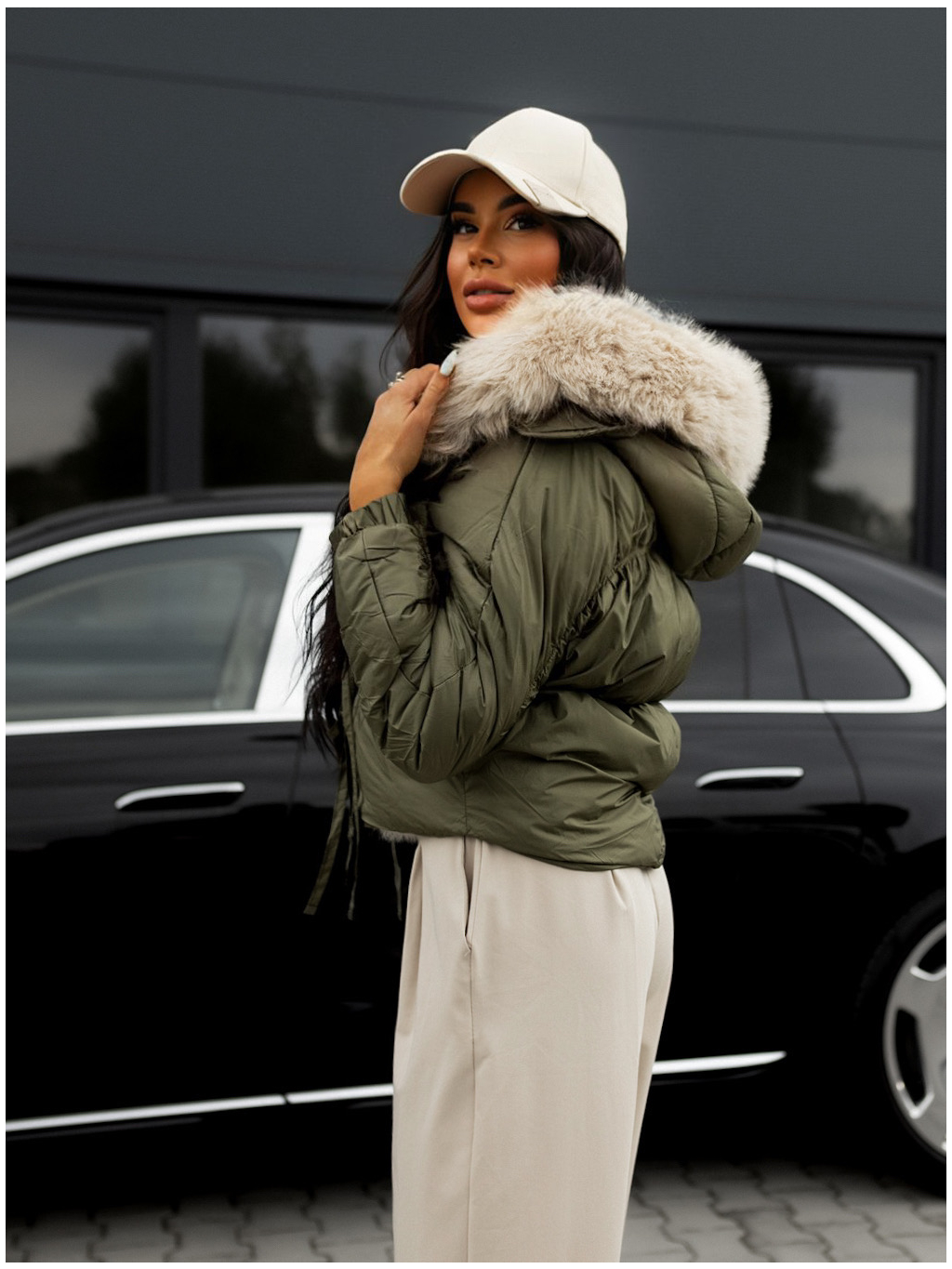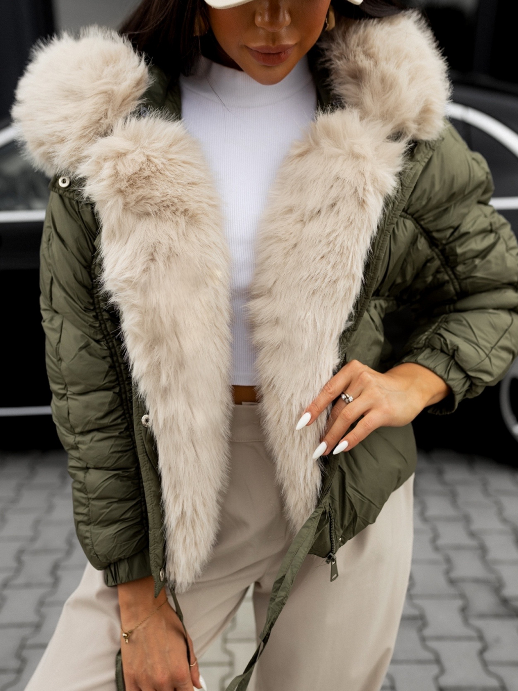 Khaki prošívaná zimní bunda CHICE s kožíškem