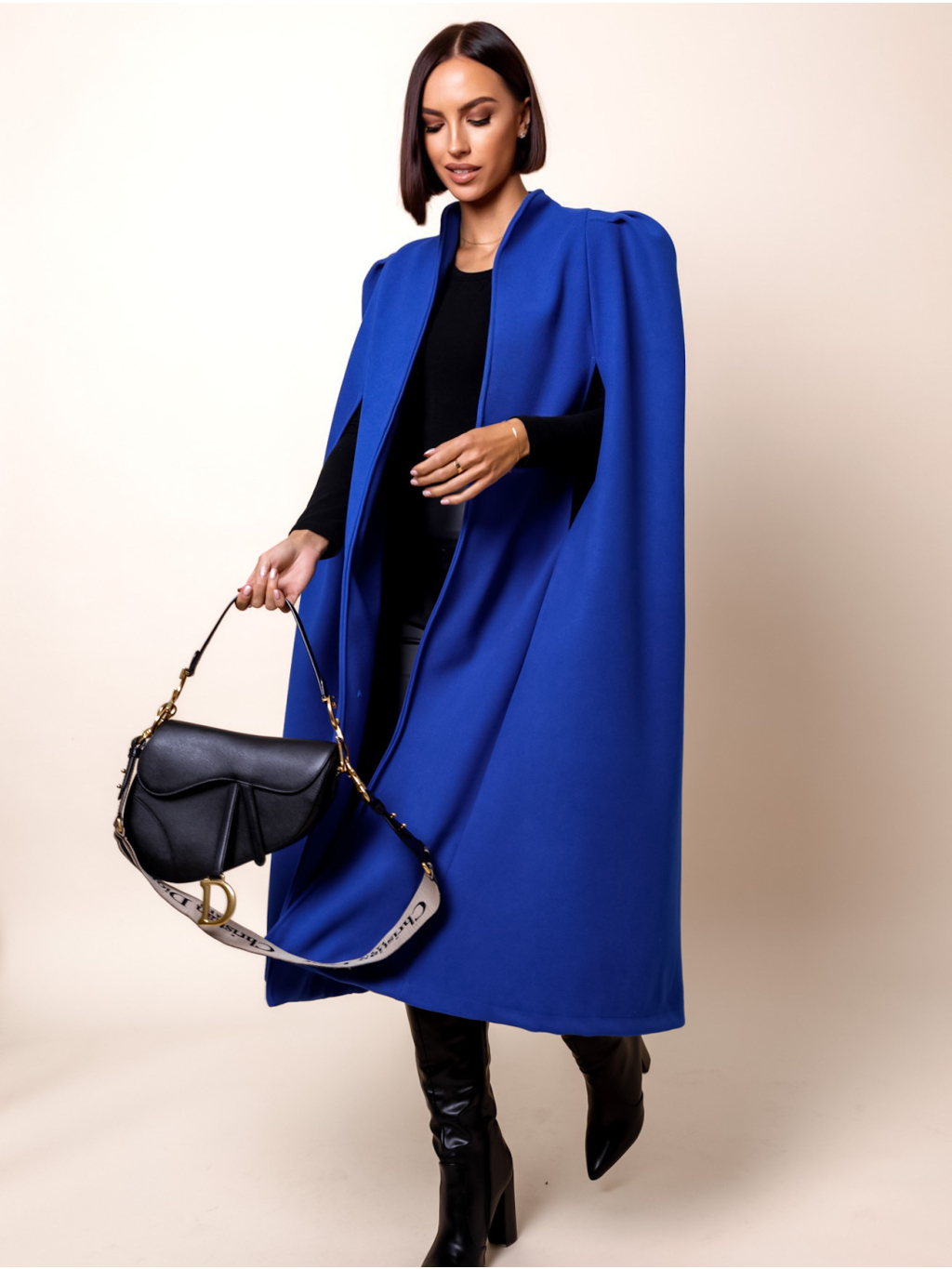 Královsky modrý elegantní kabát ABBAE bez rukávu