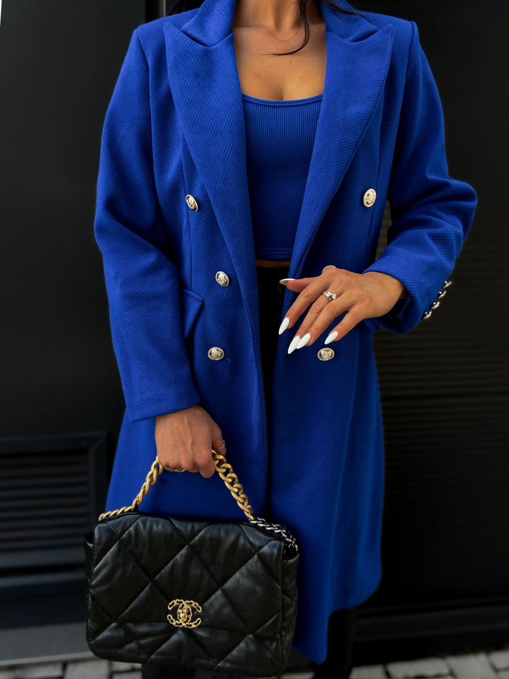 Královský modrý kabát PHILS na knoflíky