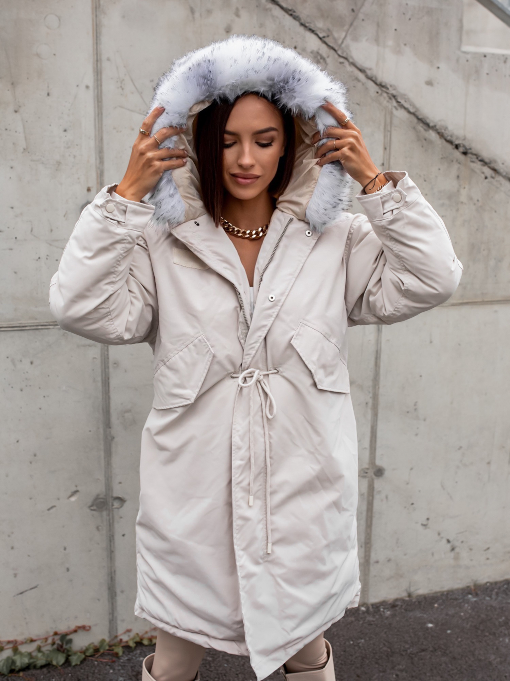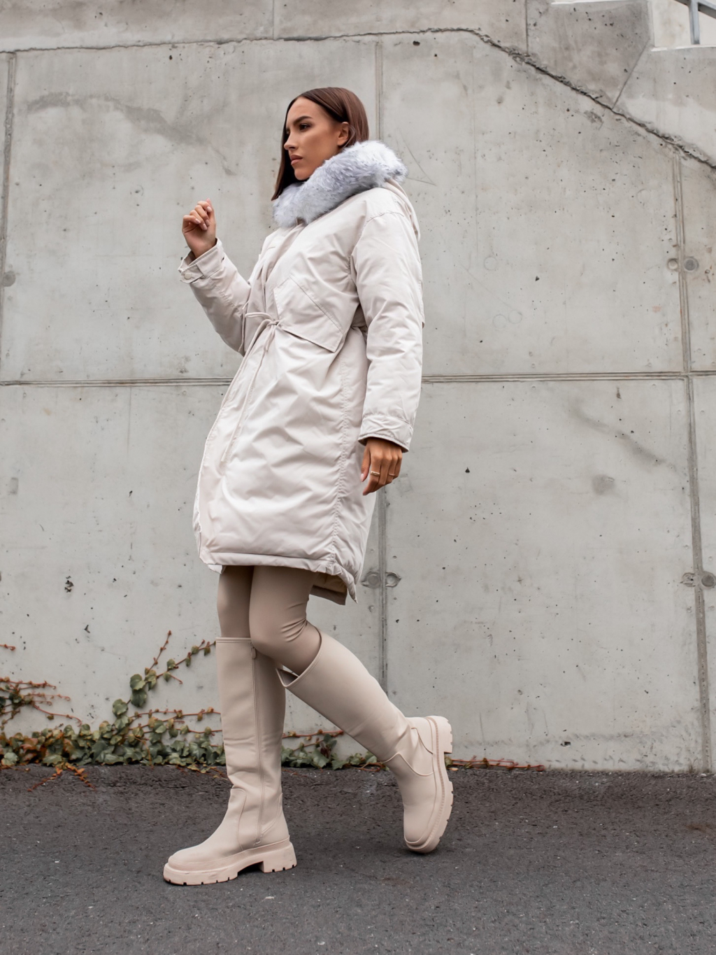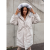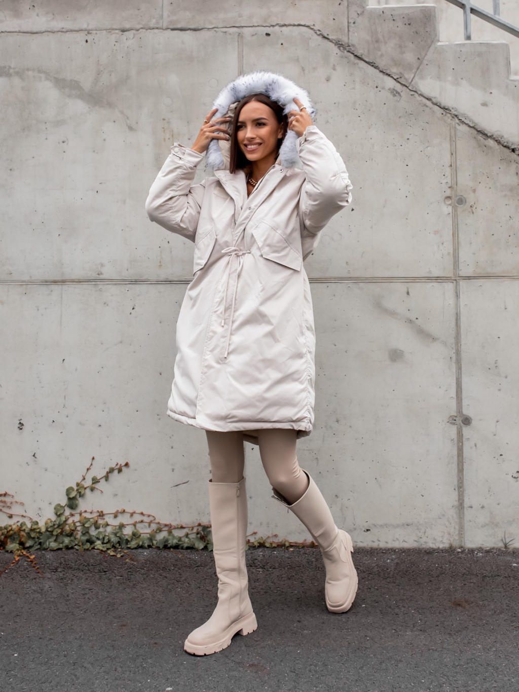 Krémová parka MIRRABEL s kožešinou a stahováním v pase