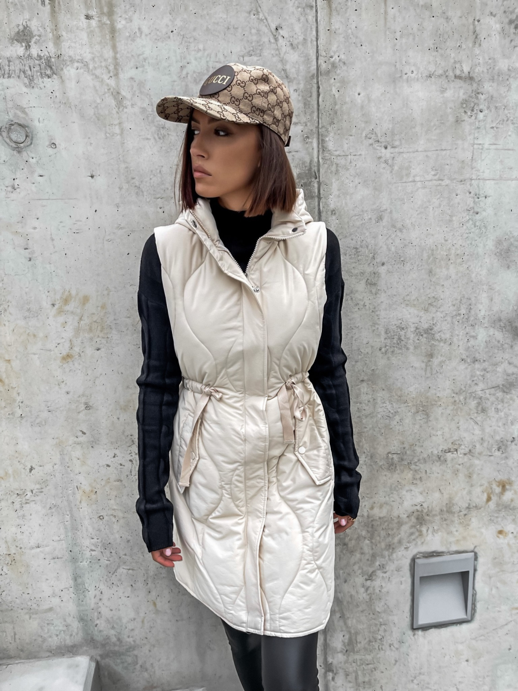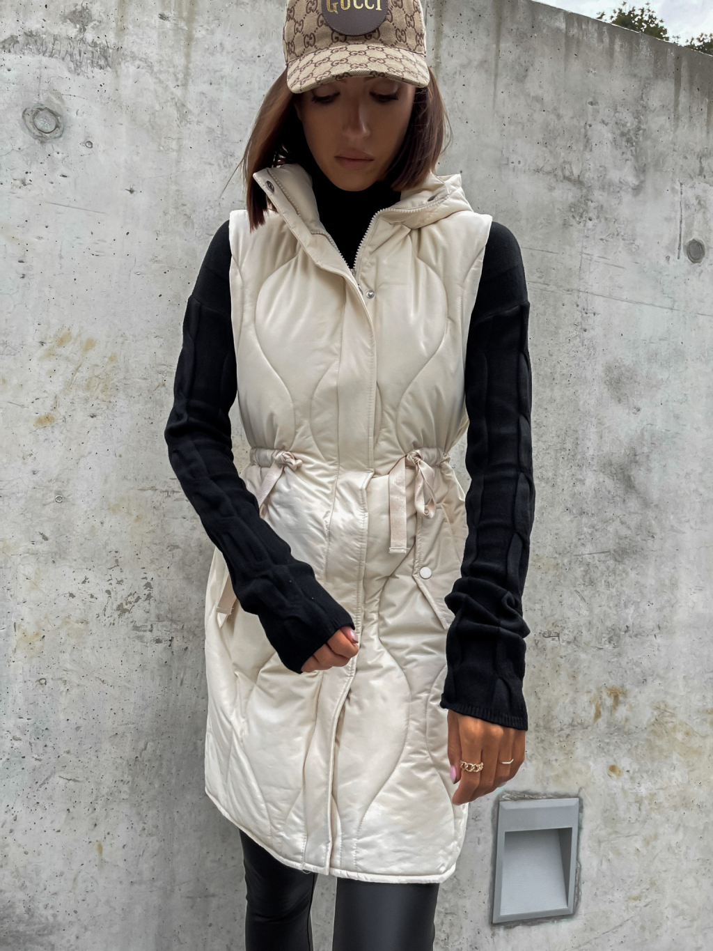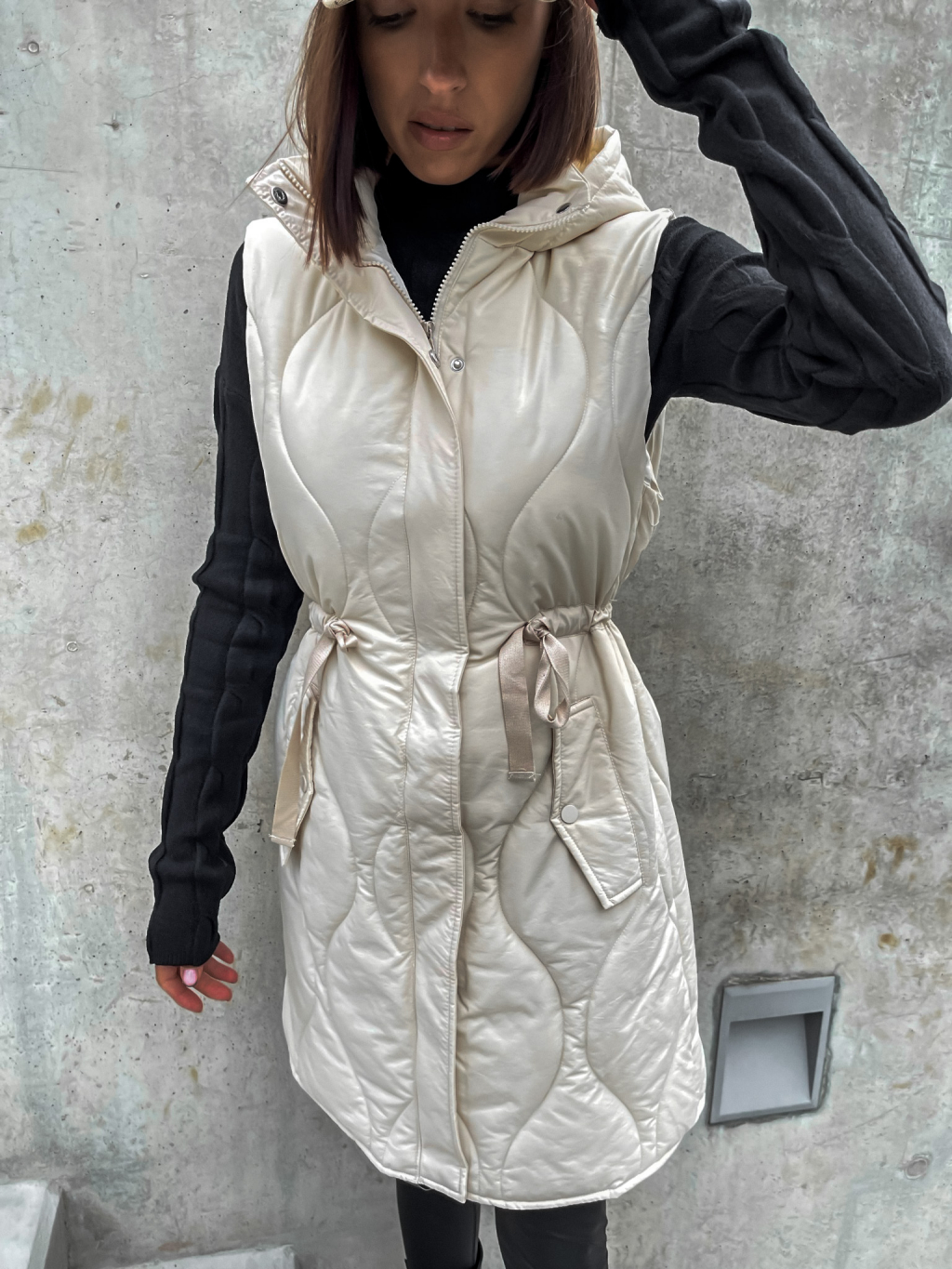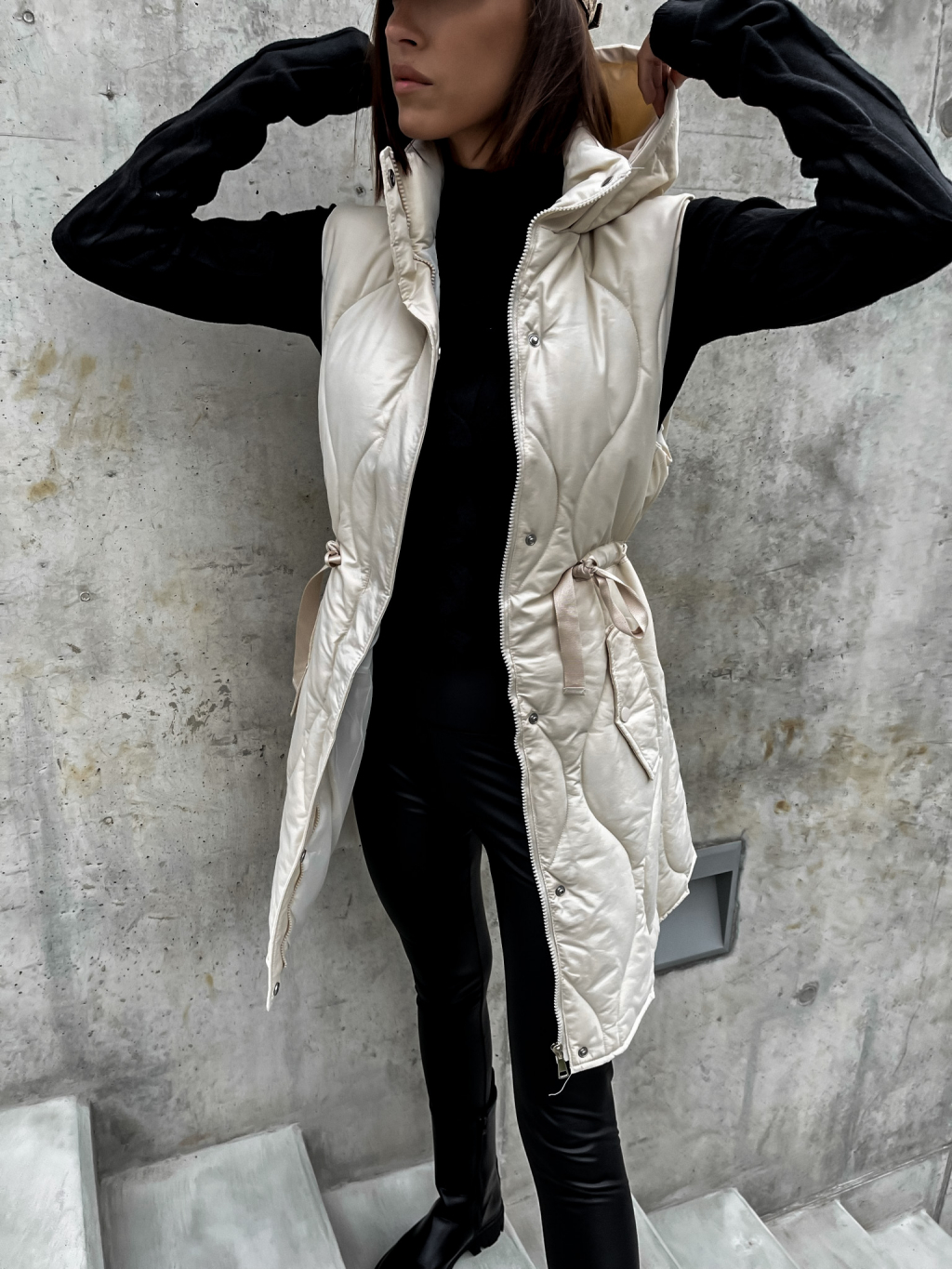 Krémová prošívaná vesta SHALL se stahováním v pase