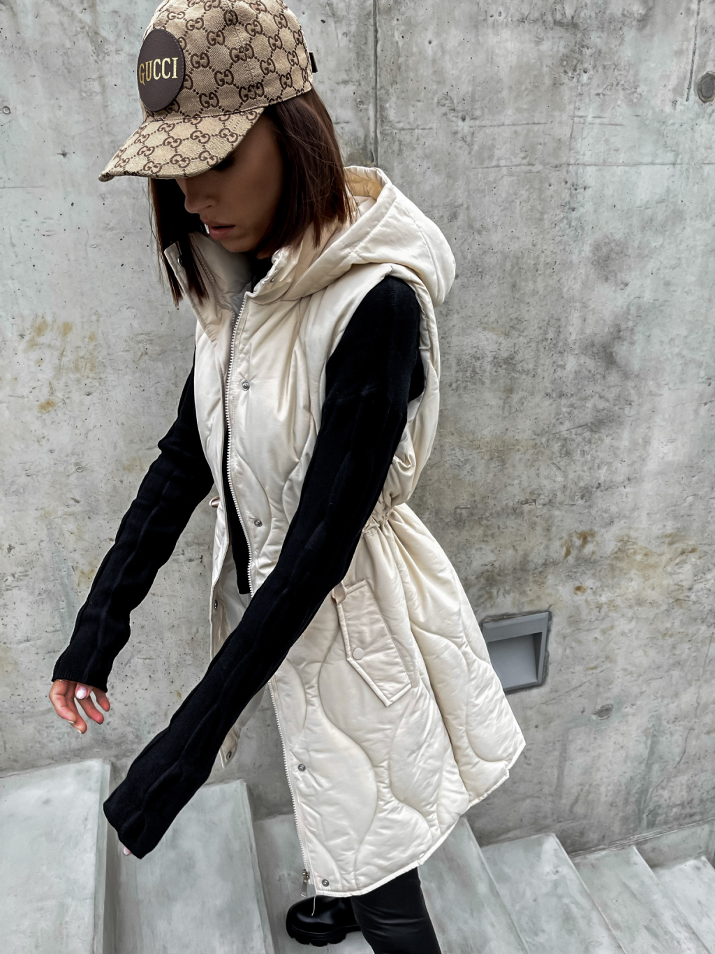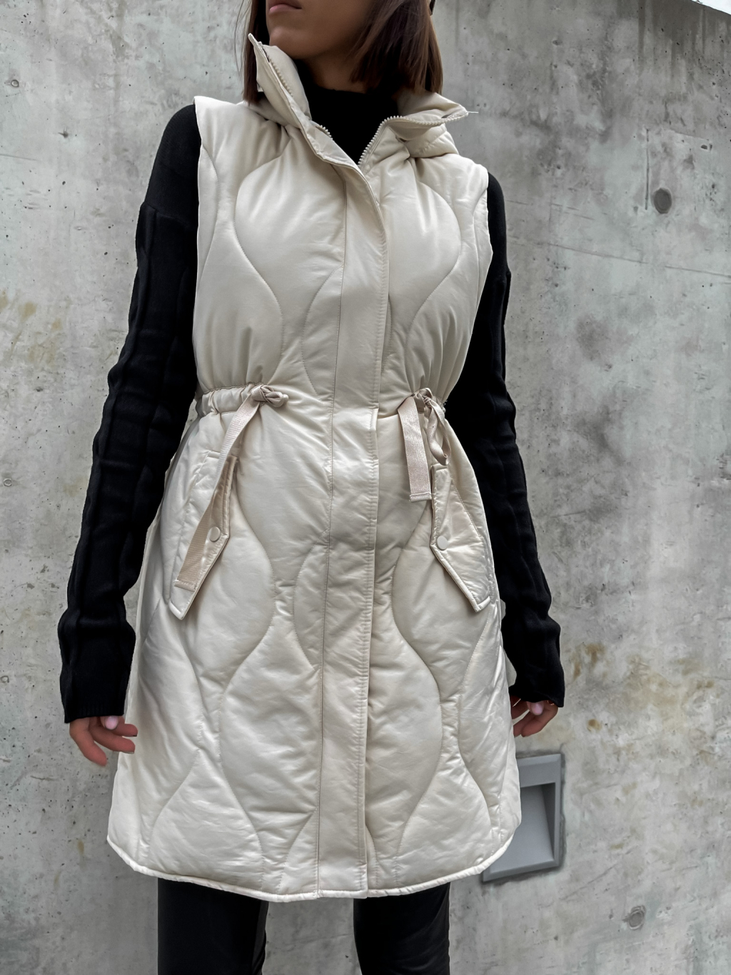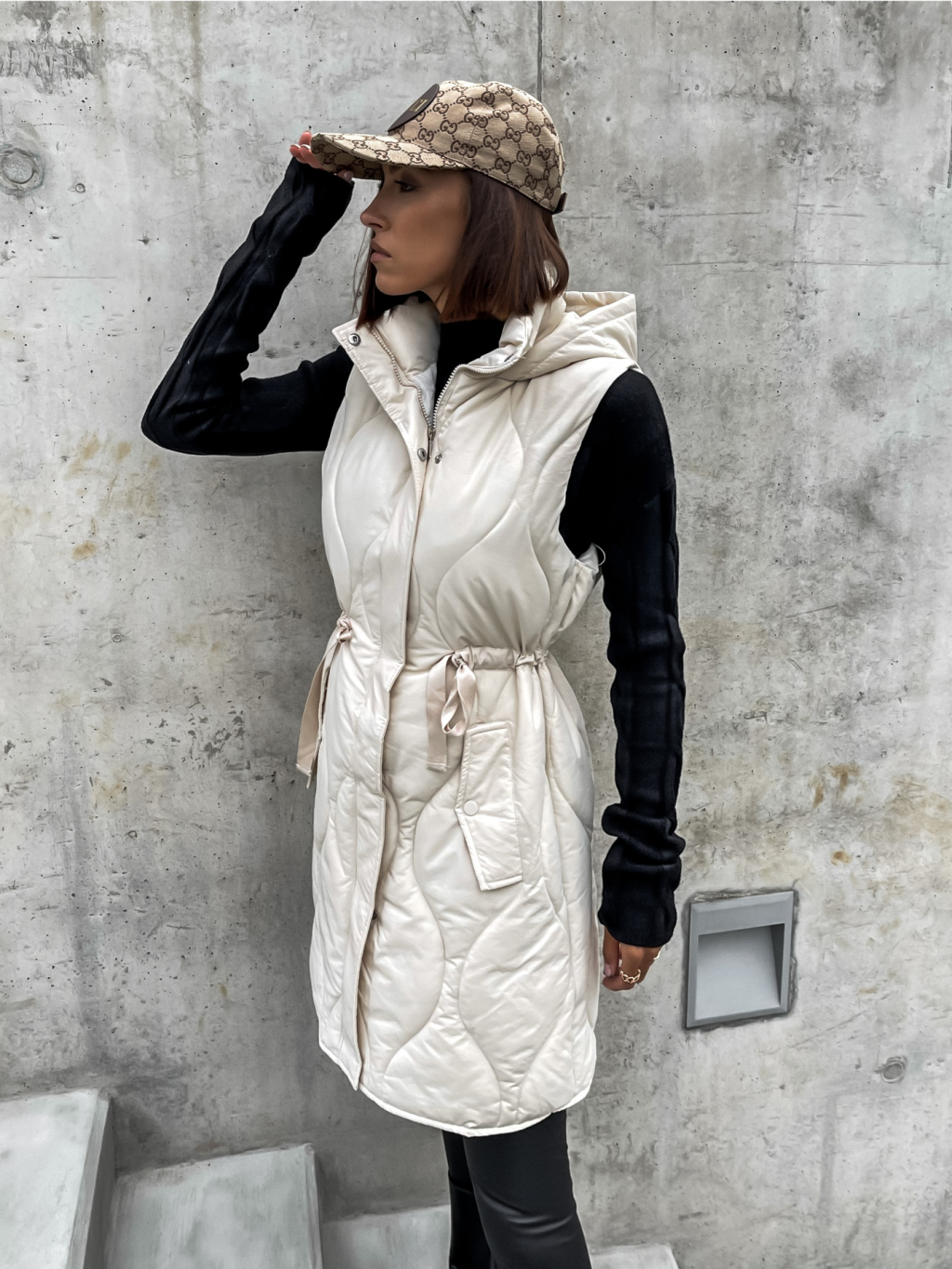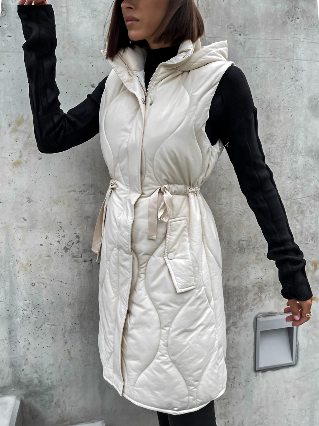 Krémová prošívaná vesta SHALL se stahováním v pase