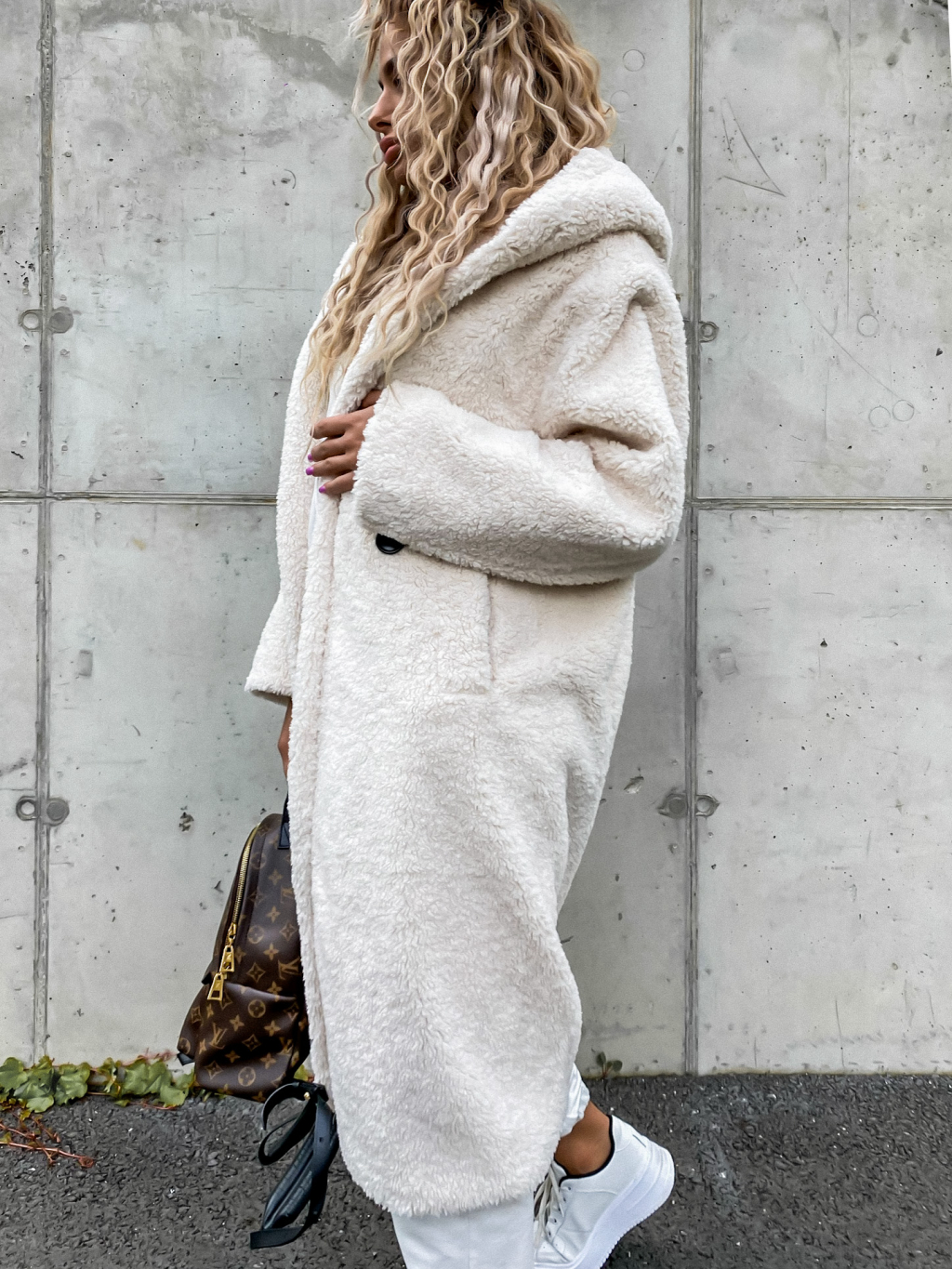 Krémový delší kabát LEXIE s kapucí