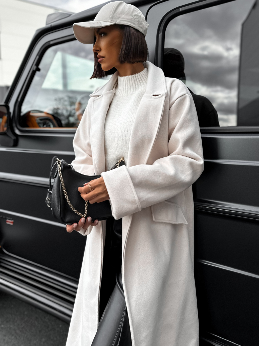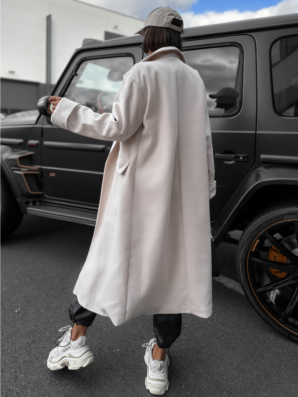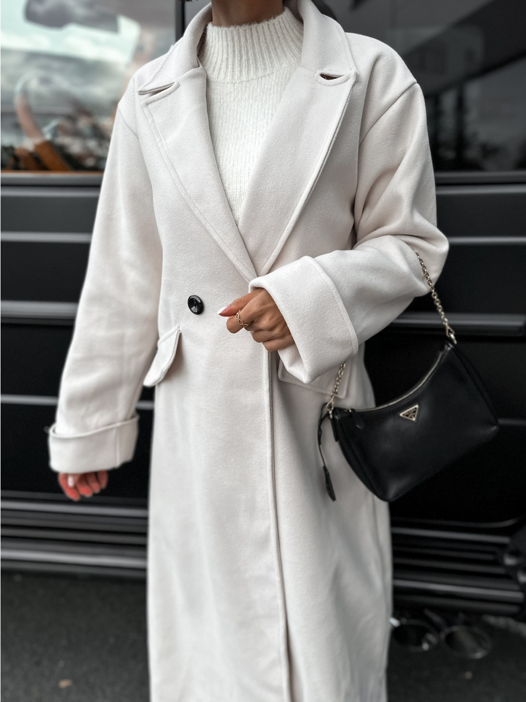 Krémový dlouhý kabát EKYN na knoflíky