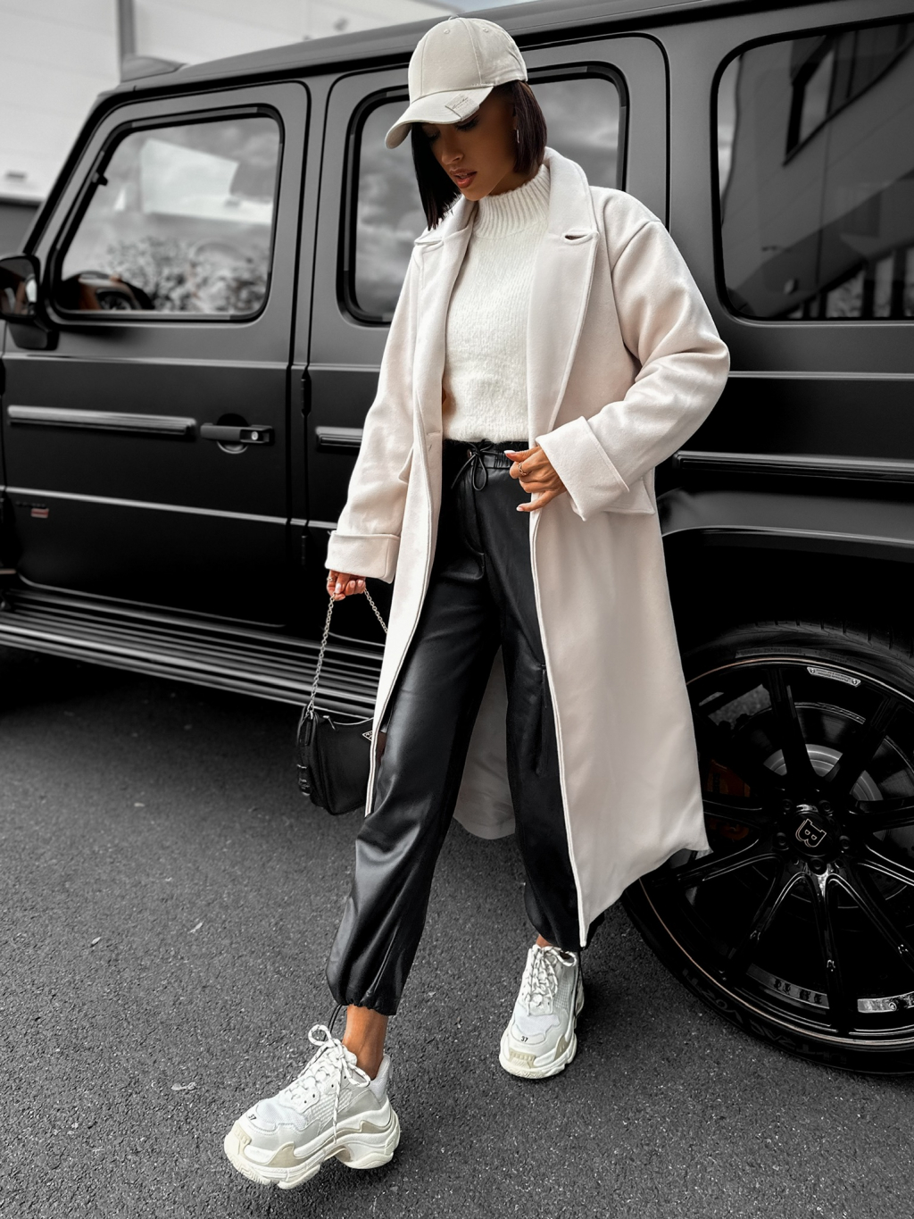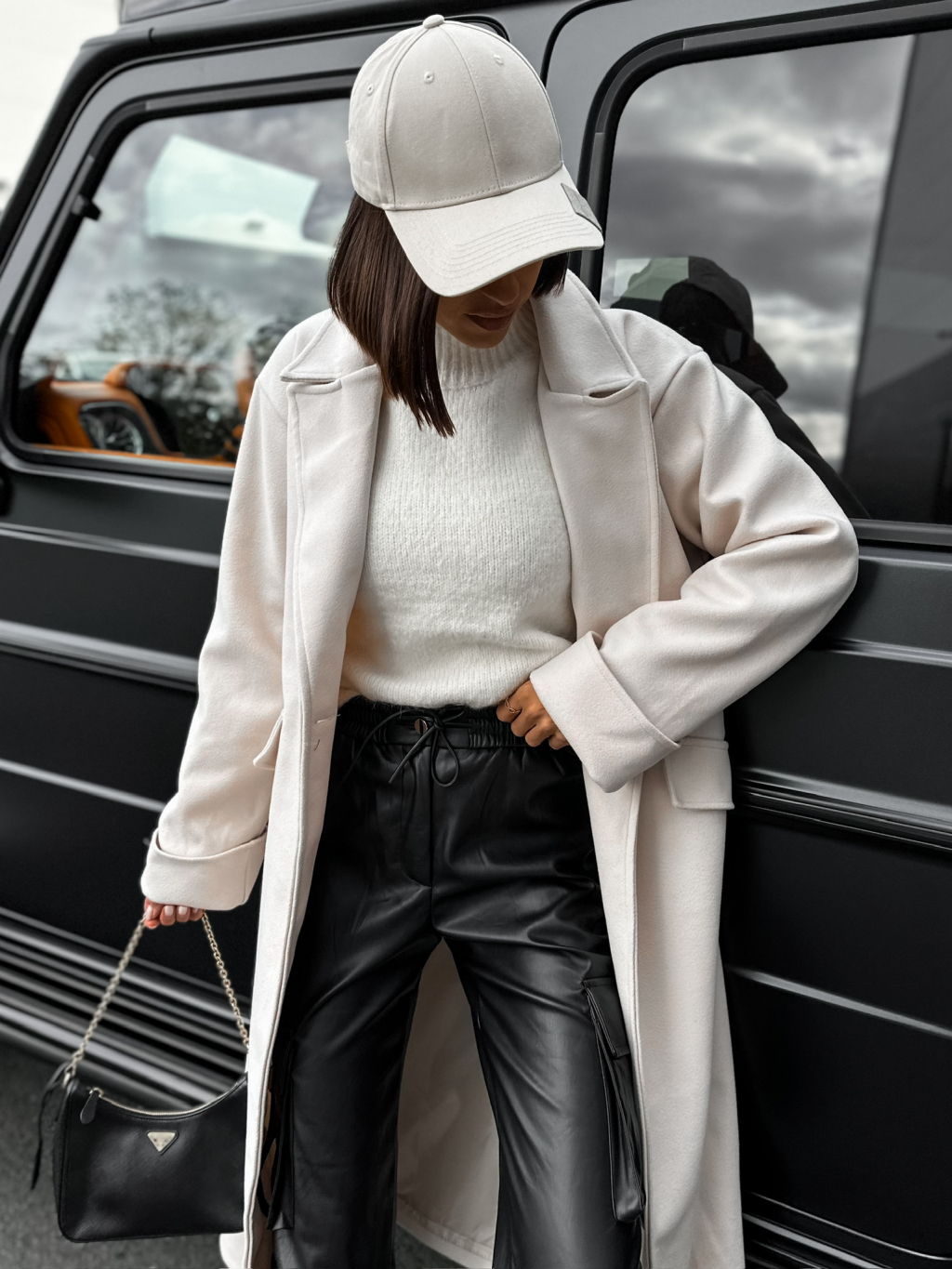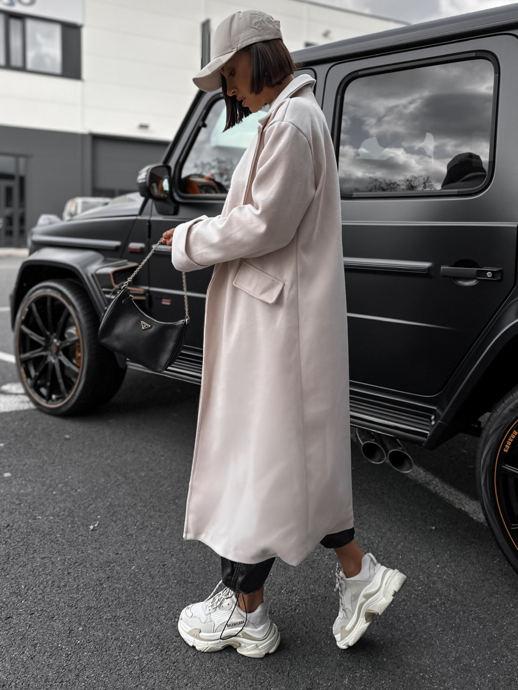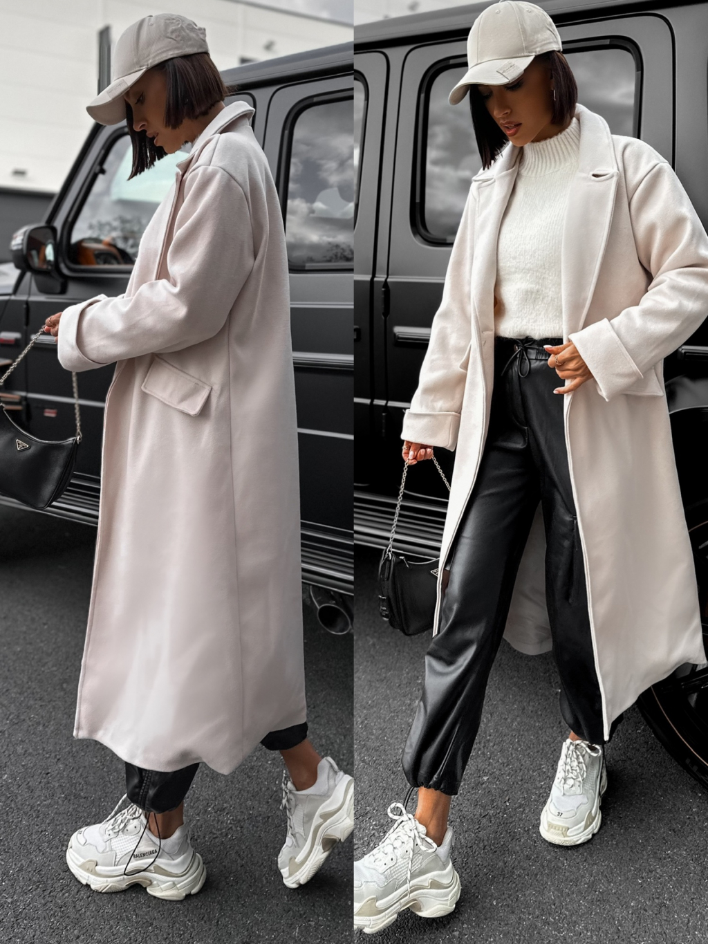 Krémový dlouhý kabát EKYN na knoflíky