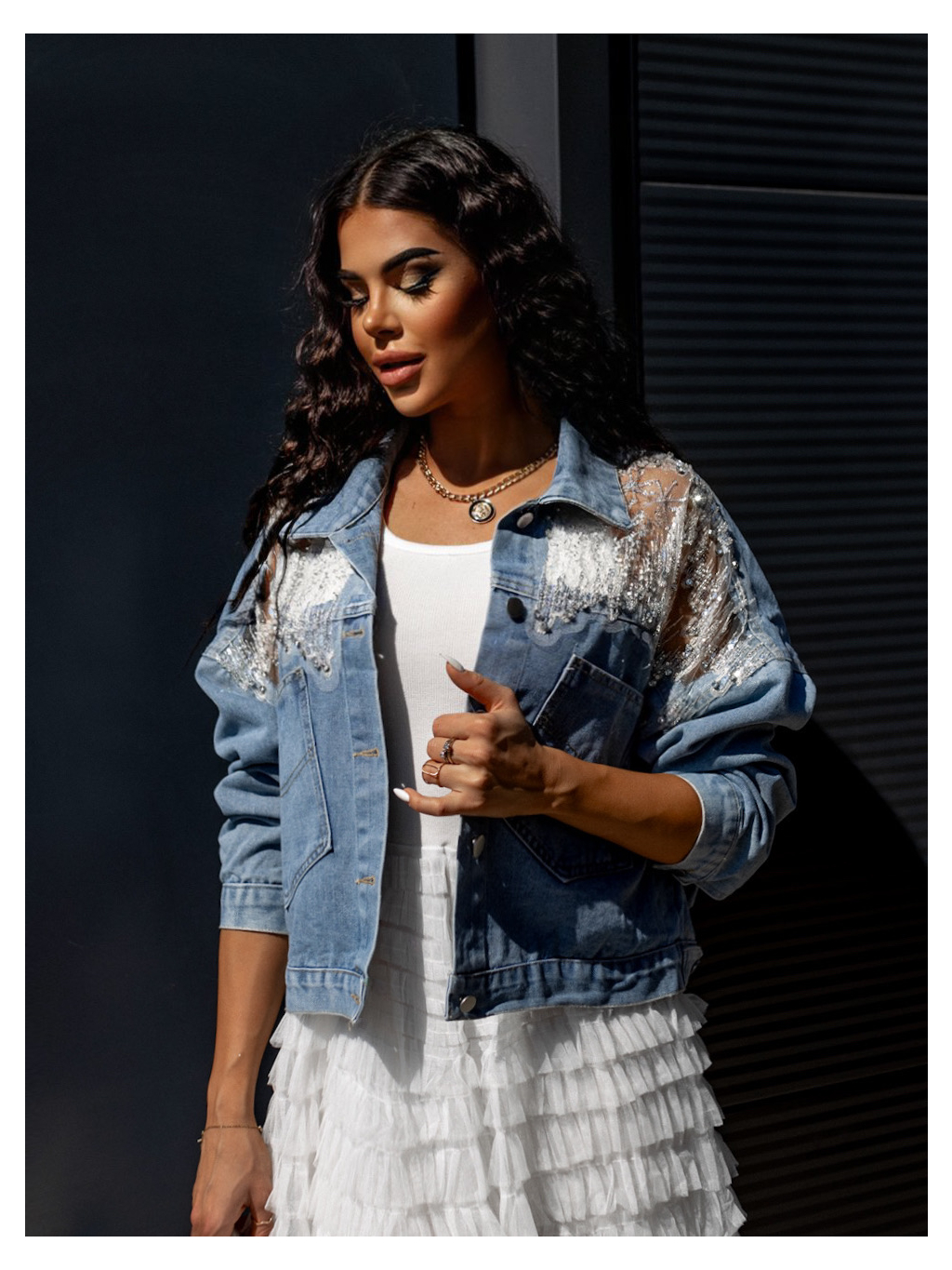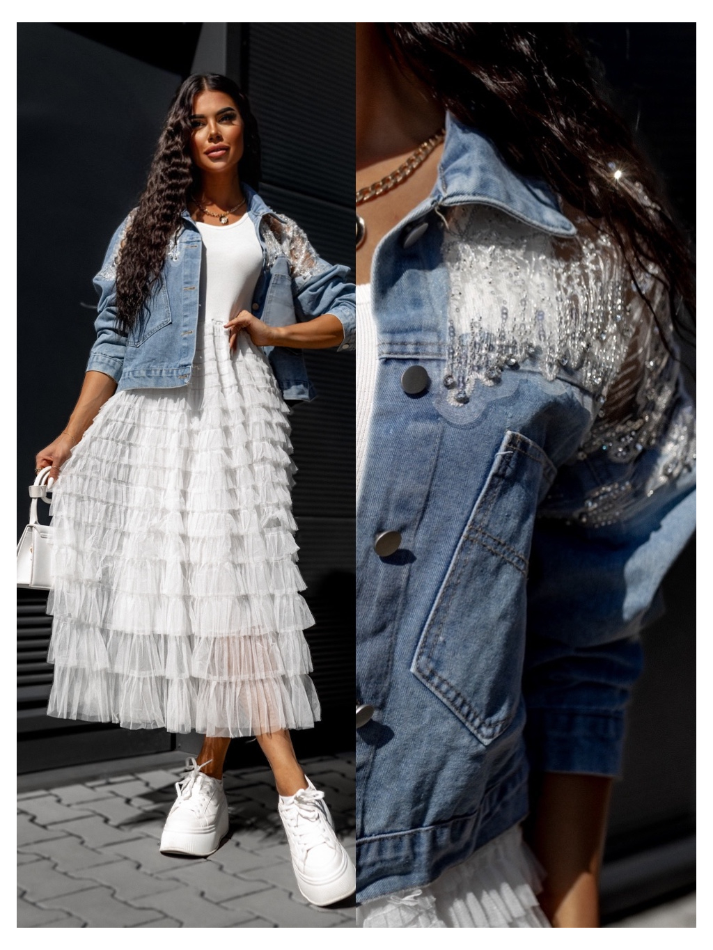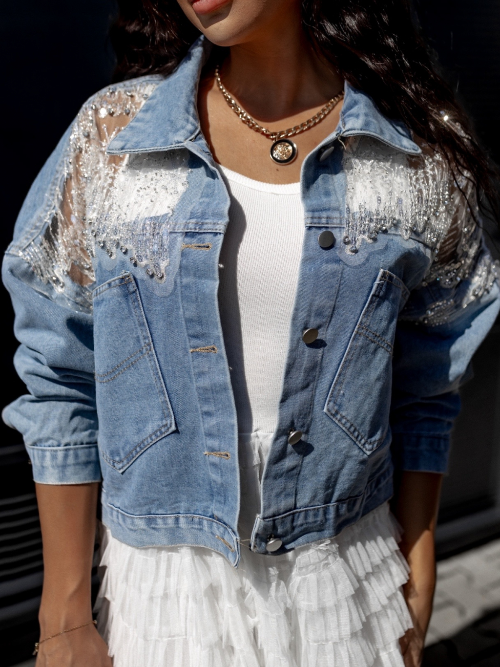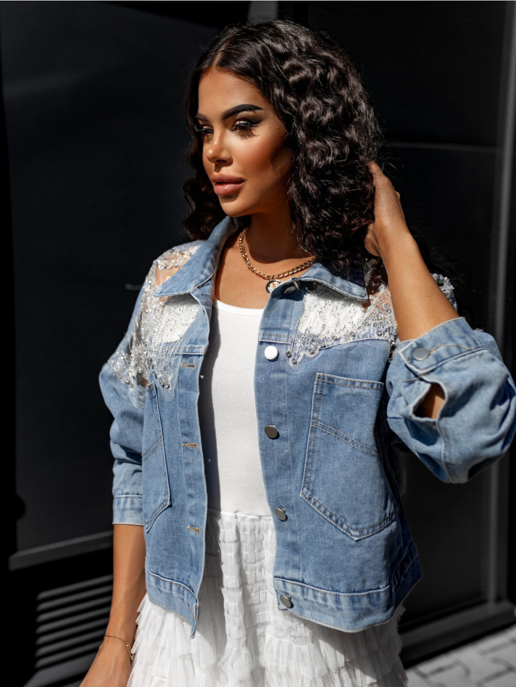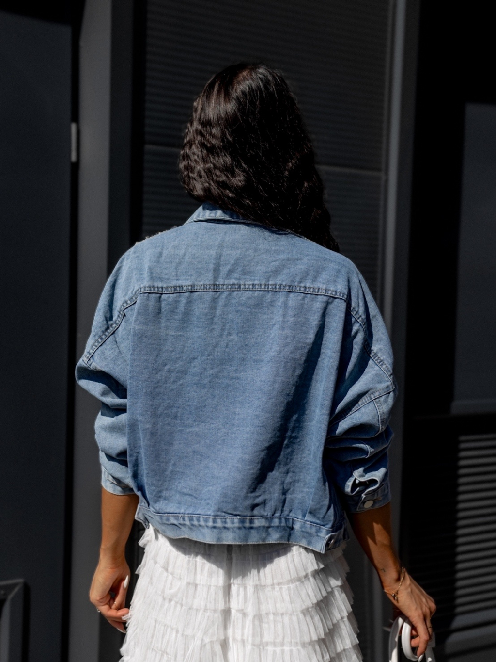 Modrá denim bunda COAT se stříbrnými aplikacemi
