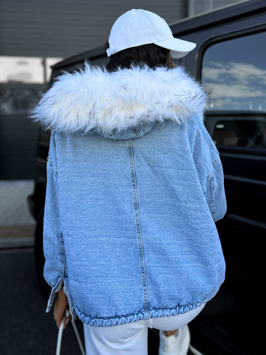 Modrá denim bunda GENYT s kožíškem