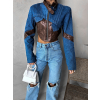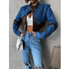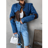 Modrá krátká džínová bunda ZALMIZ s koženkou