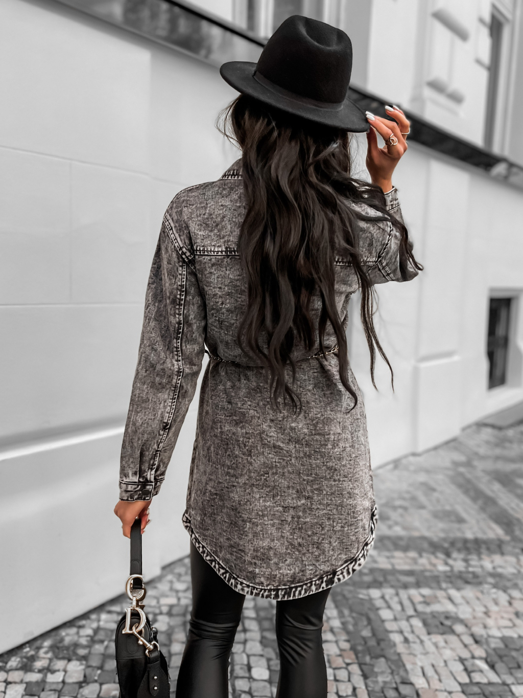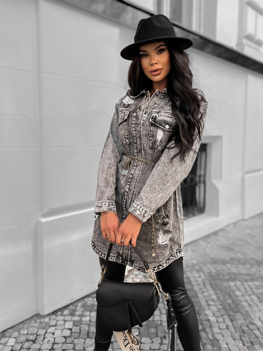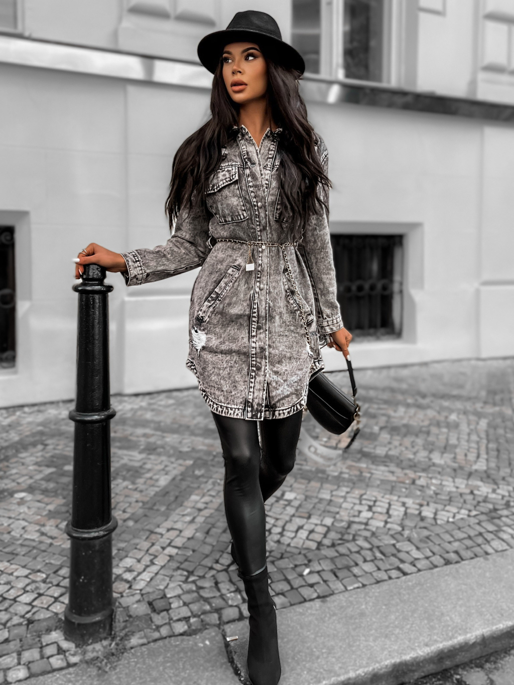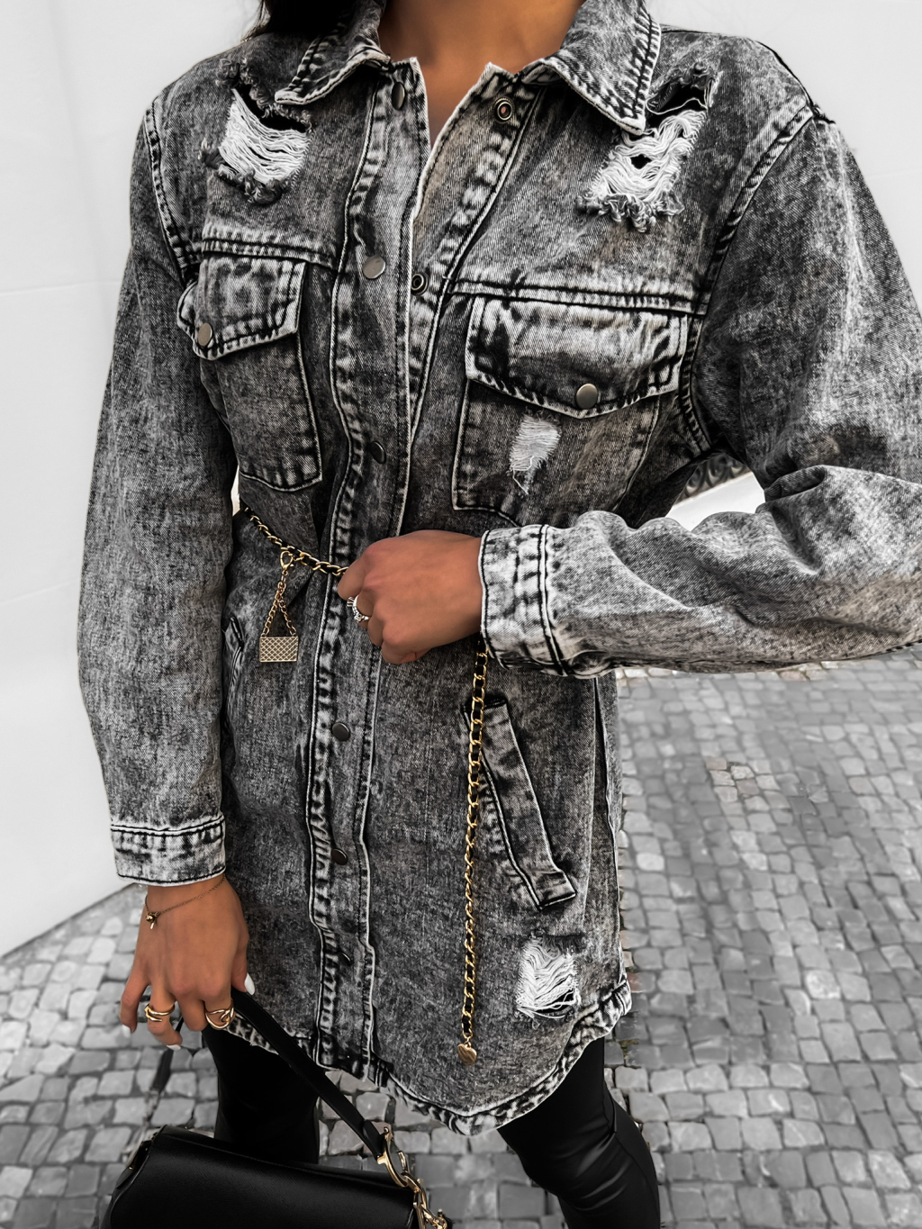 Šedá delší denim bundička GUNNARI s páskem