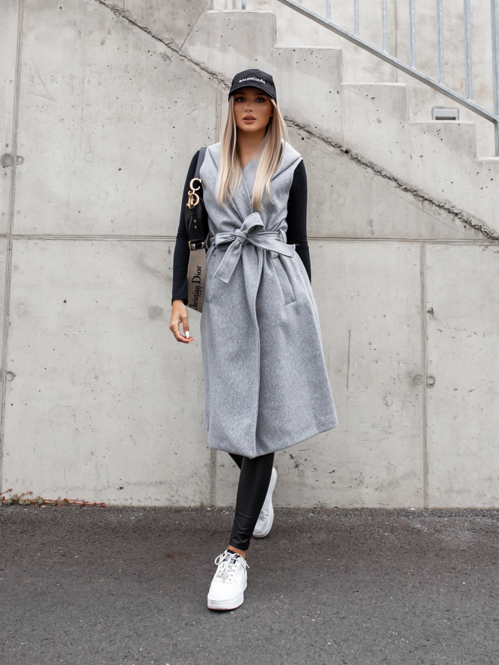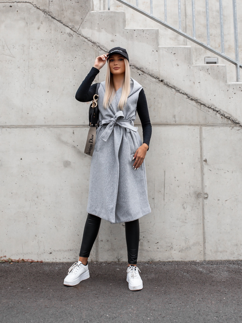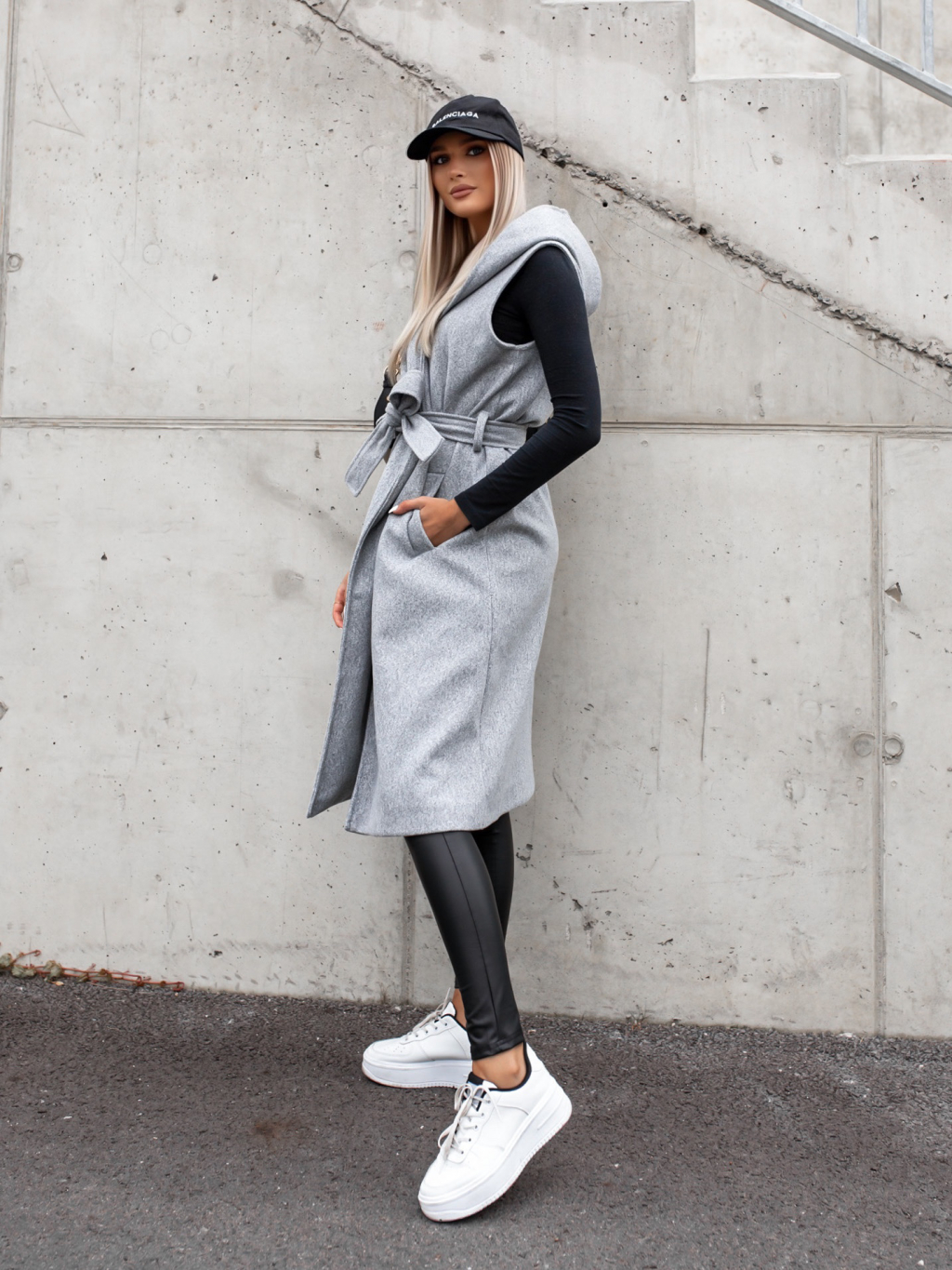Šedá vesta GALLANT s kapucí na zavazování v pase