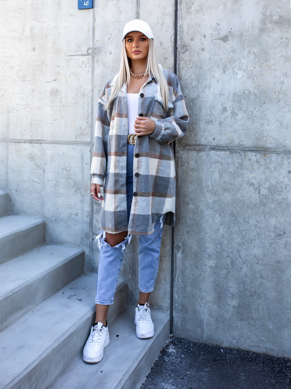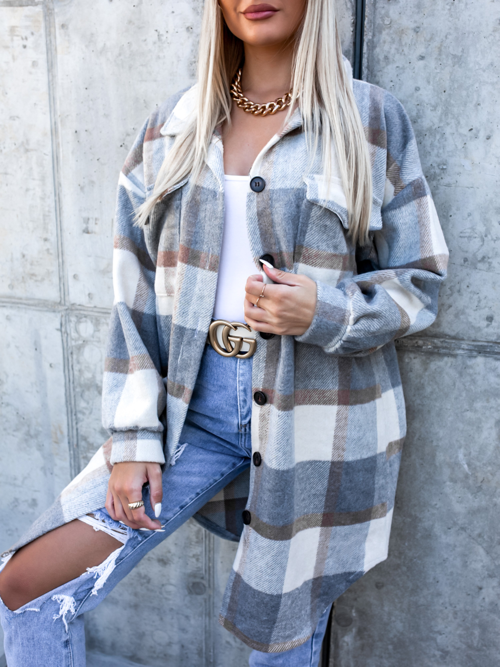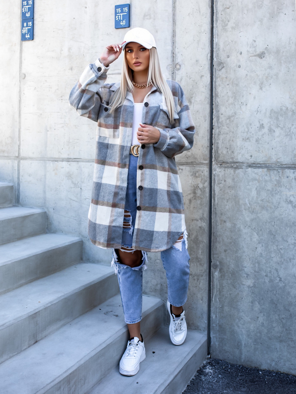 Šedý károvaný kabátek CAFFAS na knoflíky