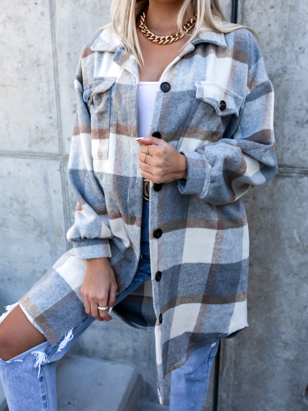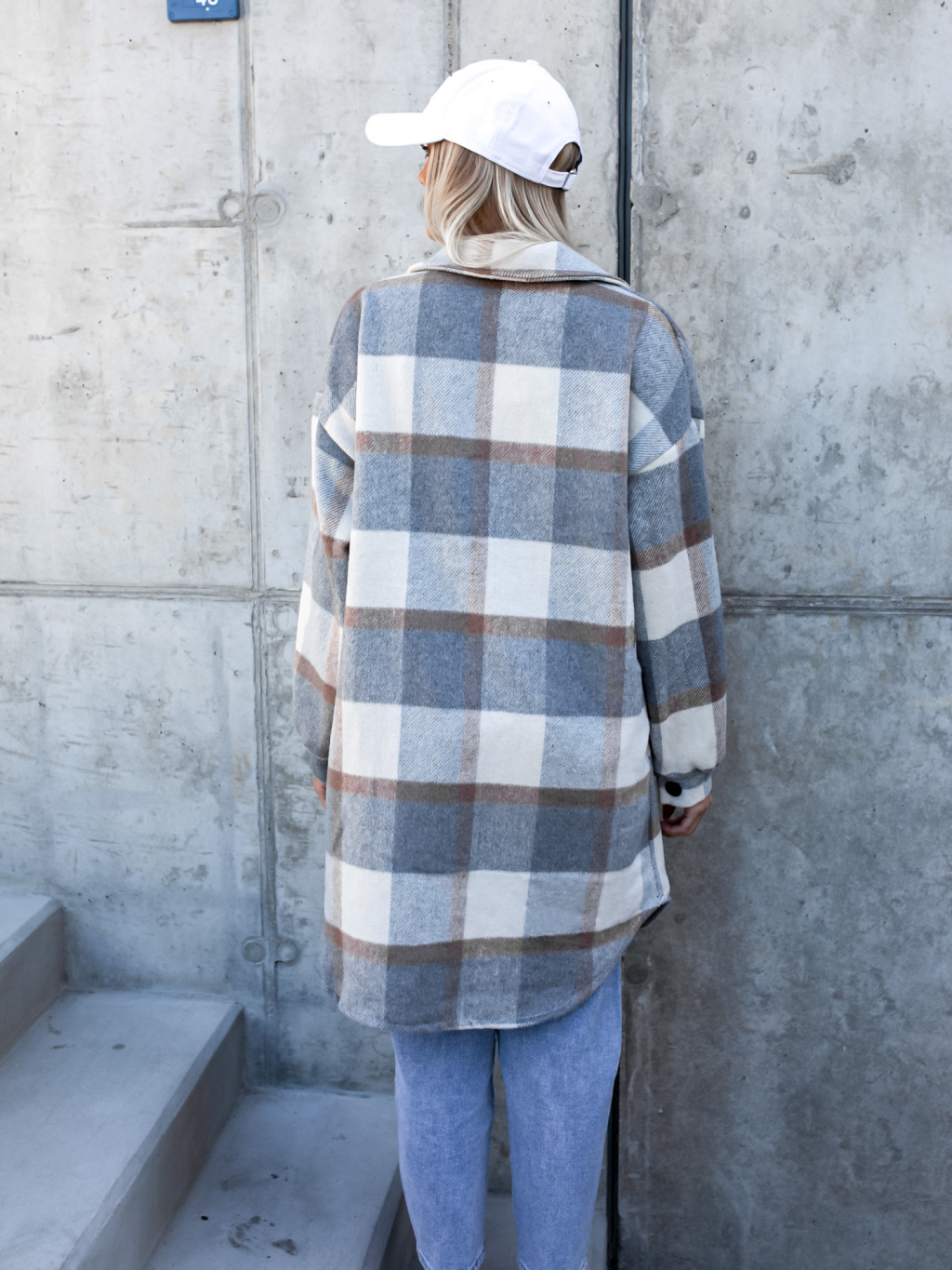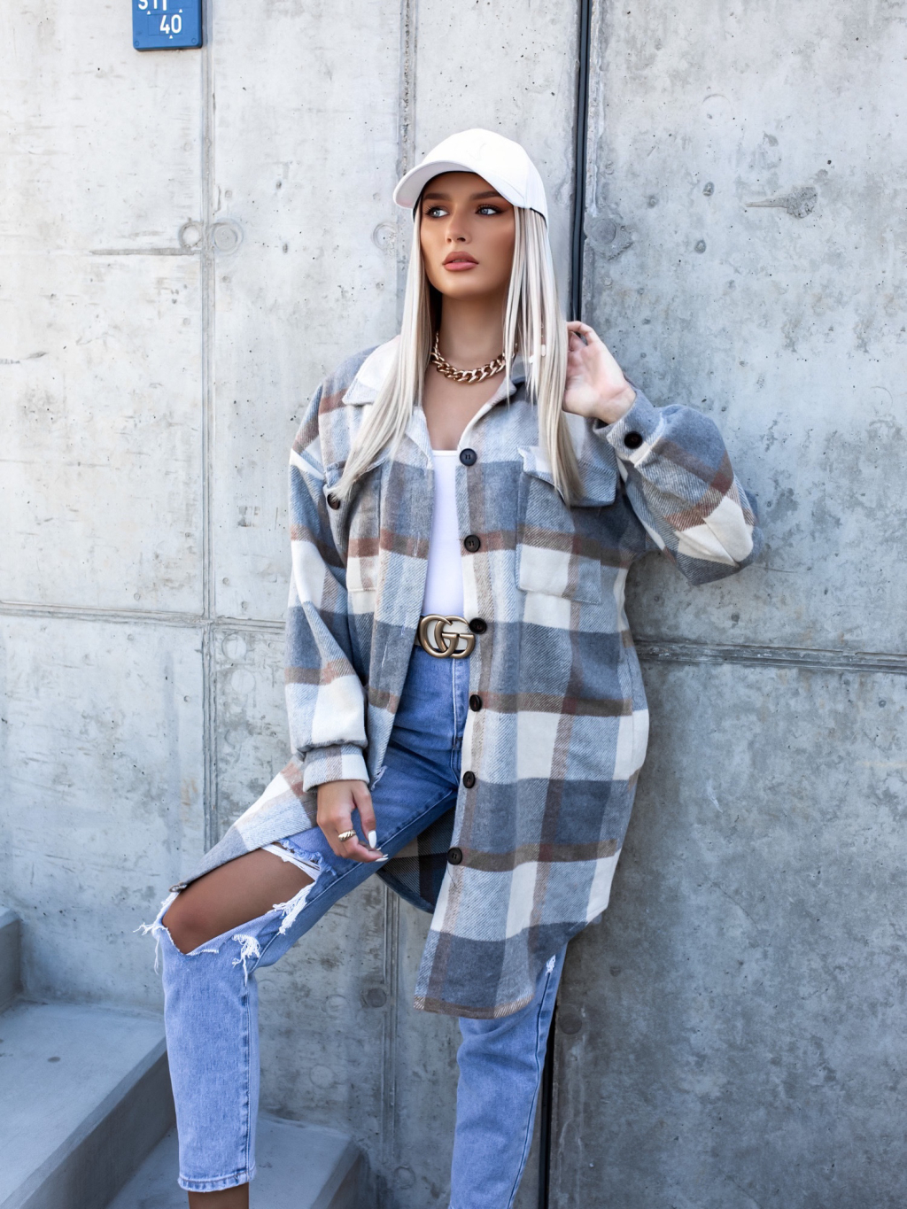 Šedý károvaný kabátek CAFFAS na knoflíky