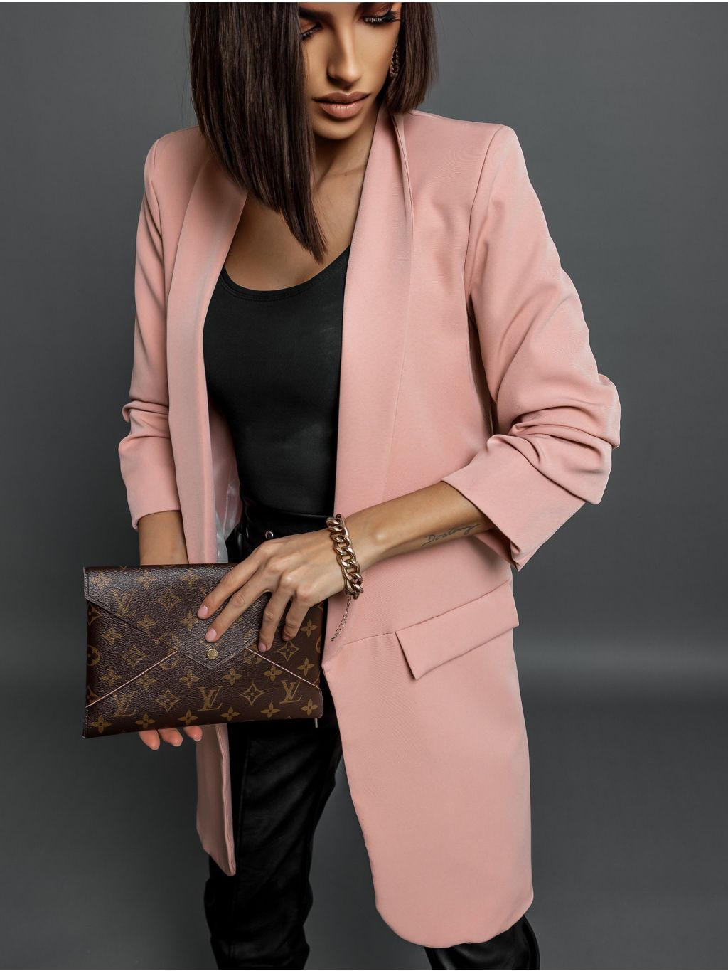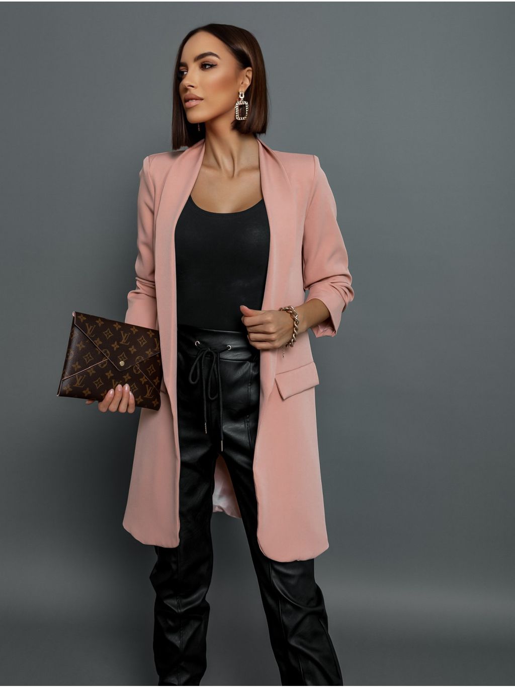 Starorůžové delší sako ROBIN s řasenými rukávy