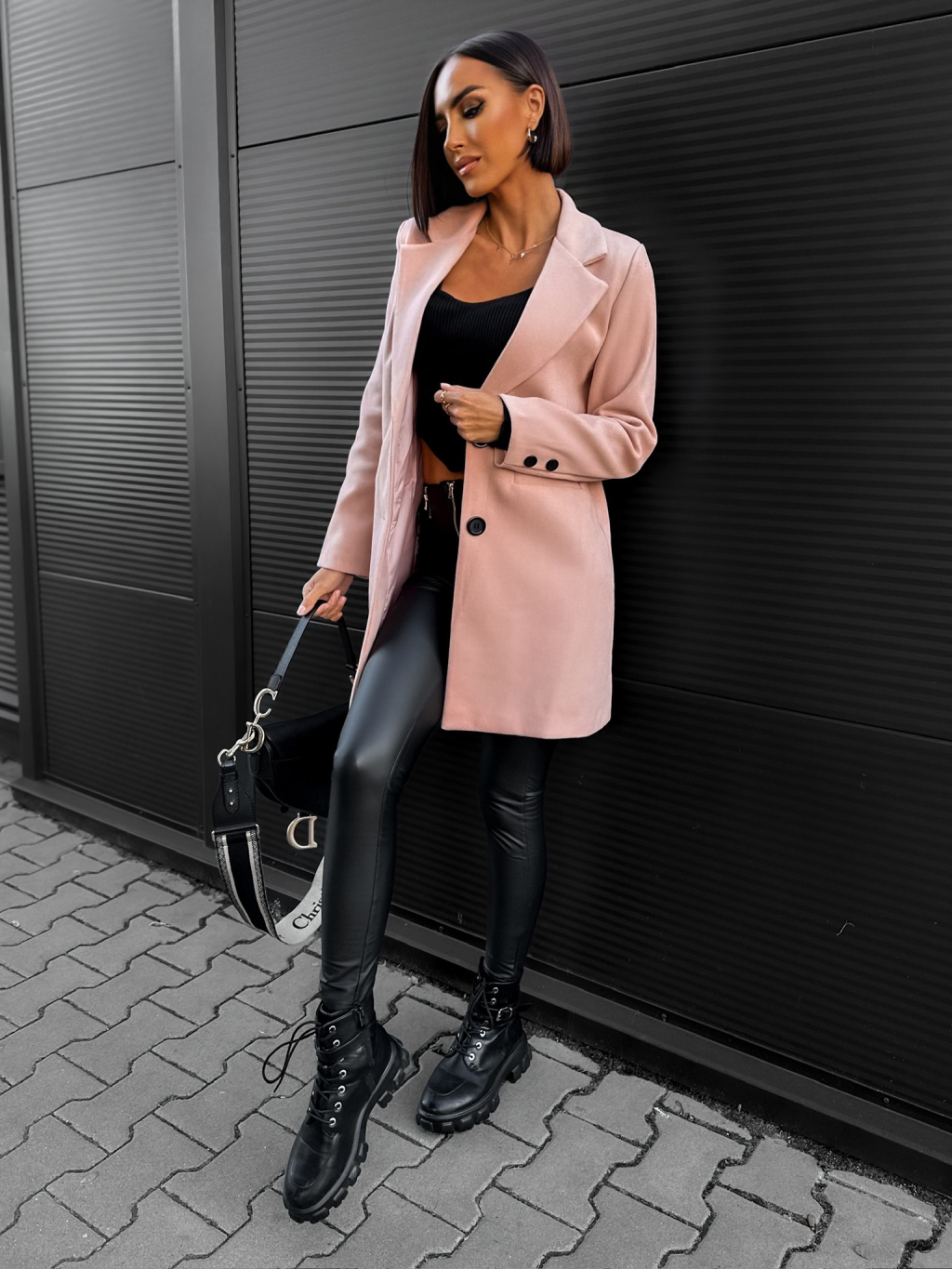 Starorůžový flaušový kabát NOAM s knoflíky