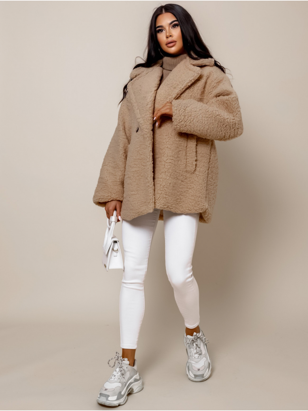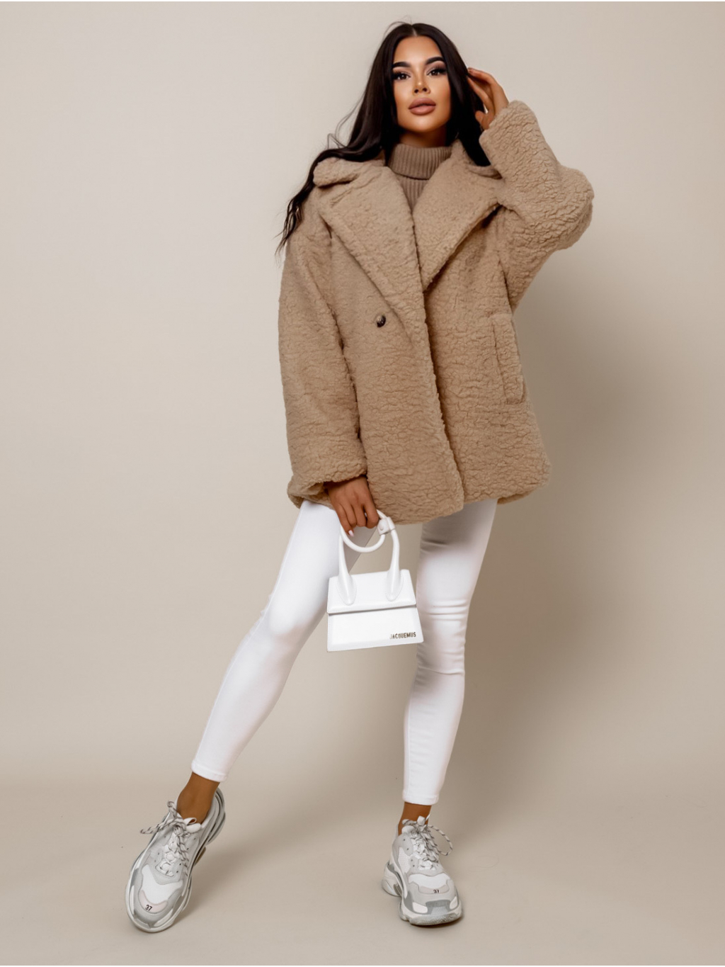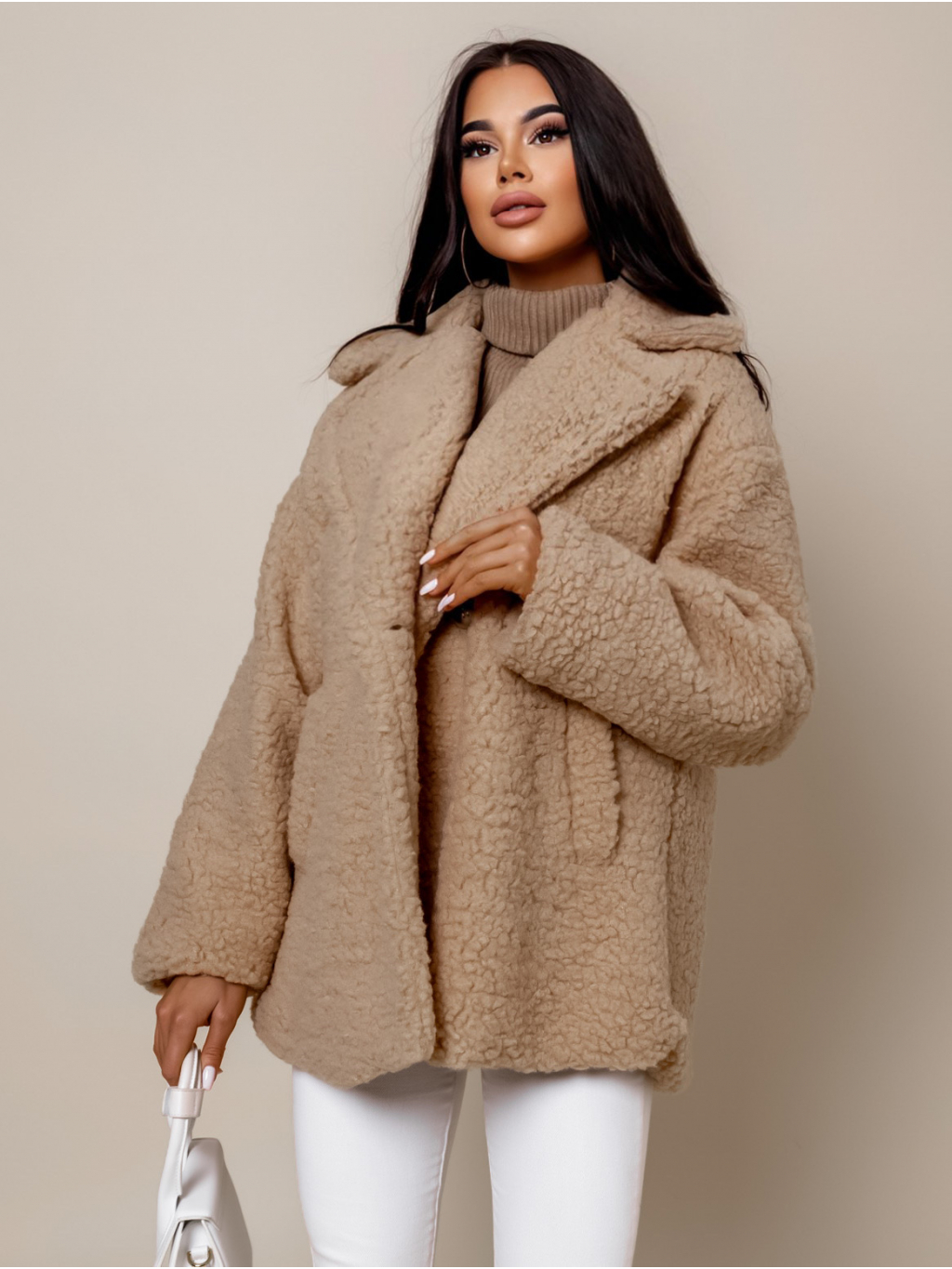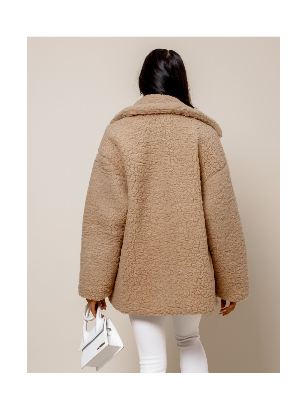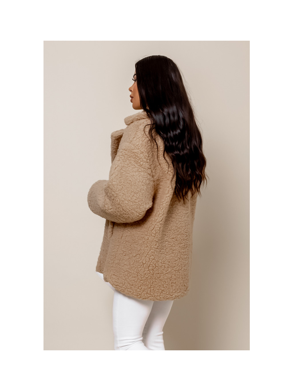 Světle hnědý teddy kabátek JEMIEN s knoflíky