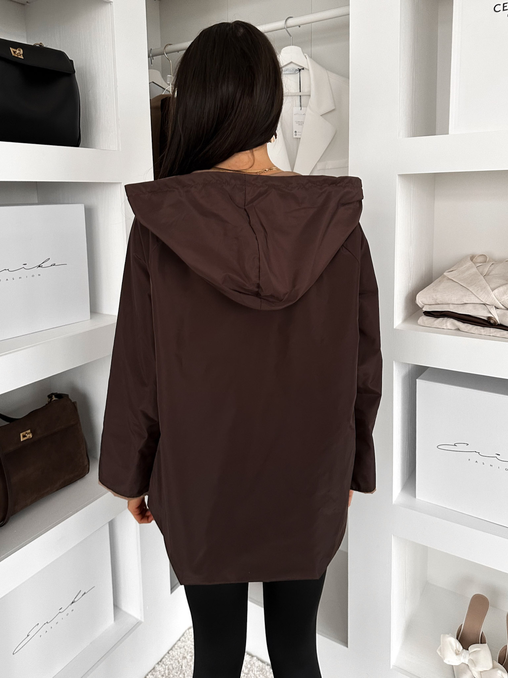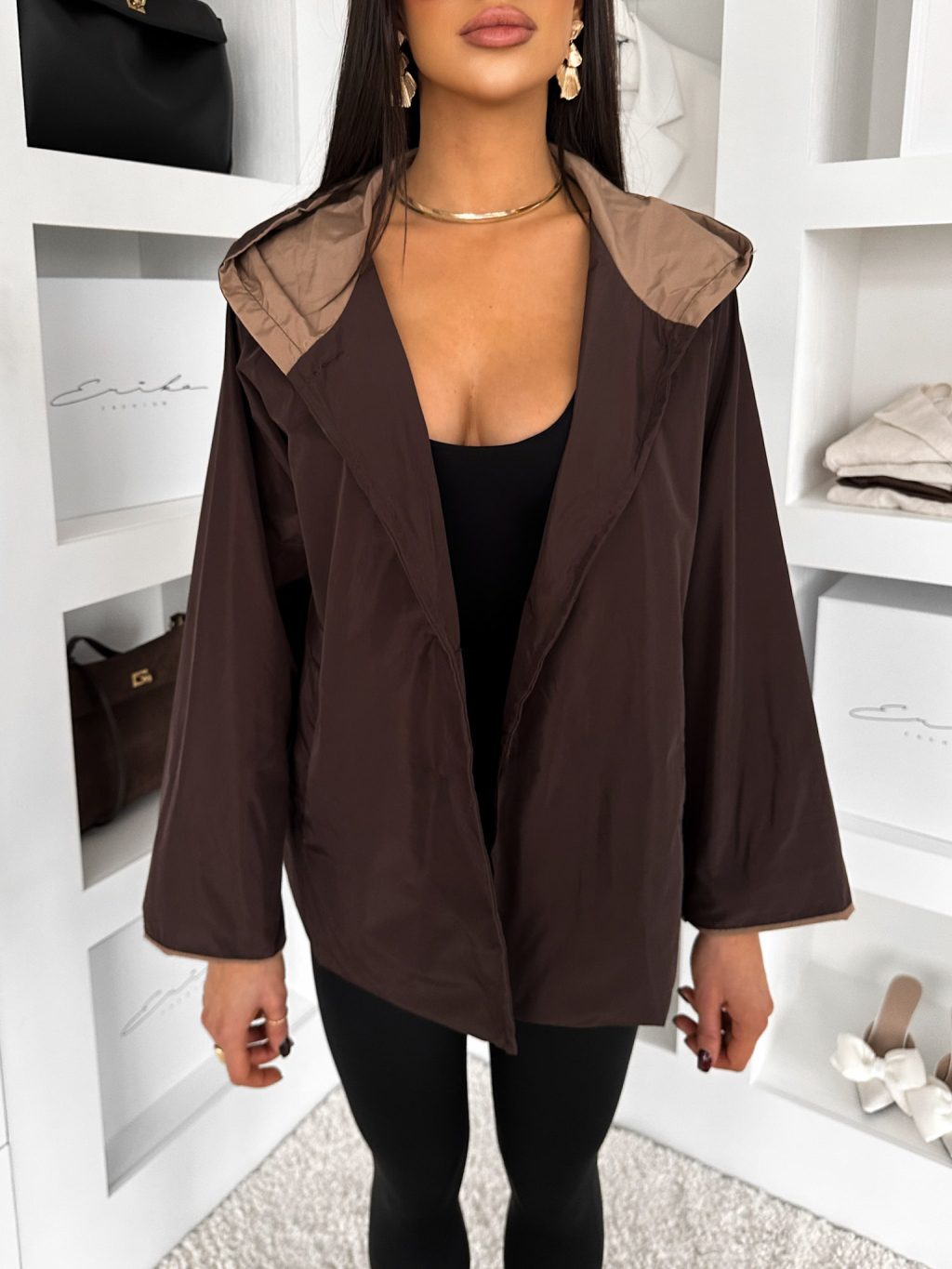 Tmavě hnědá lehká přechodná bundička BLOCKER s kapucí