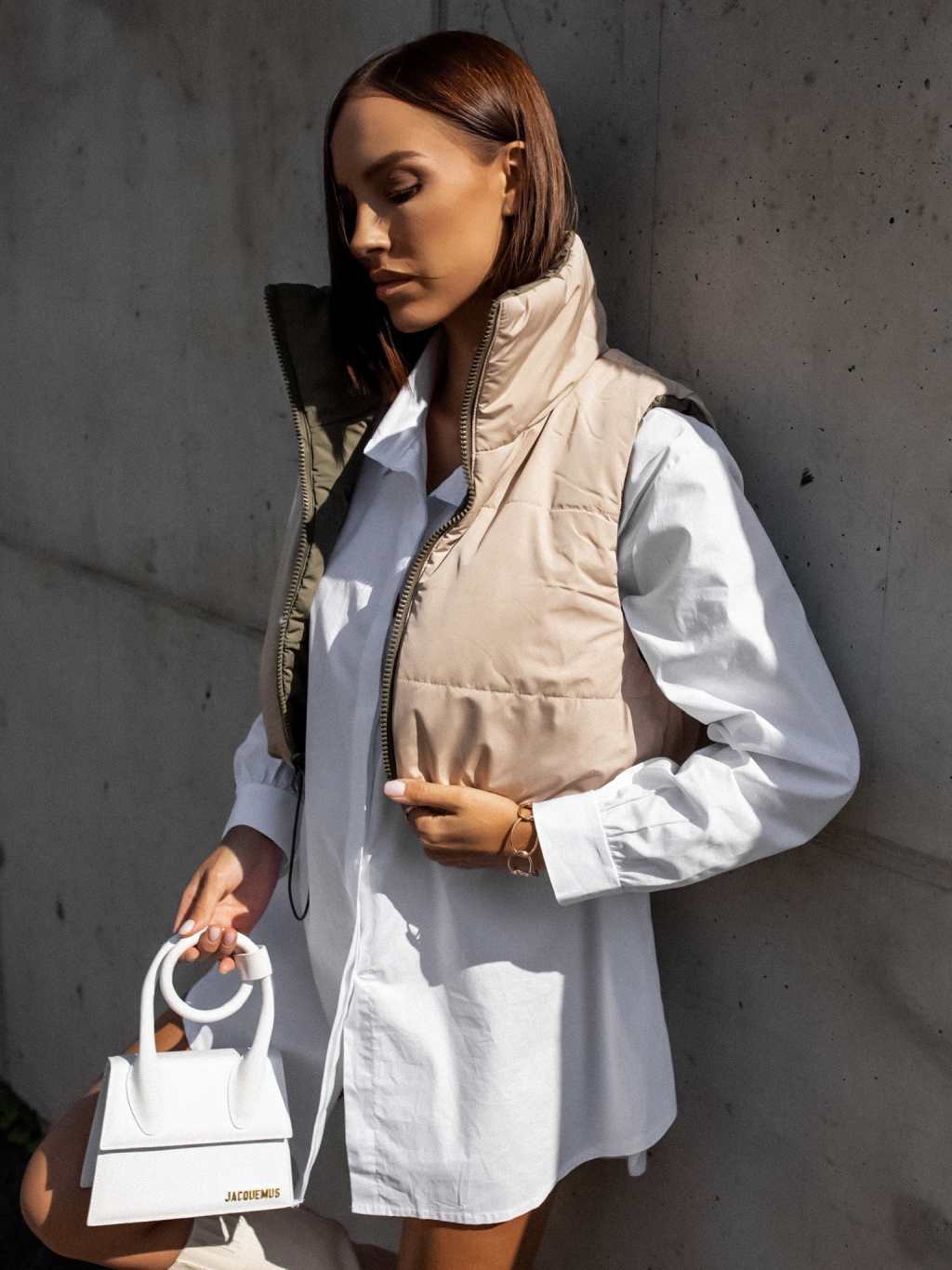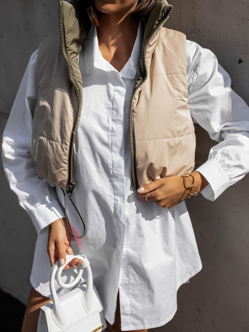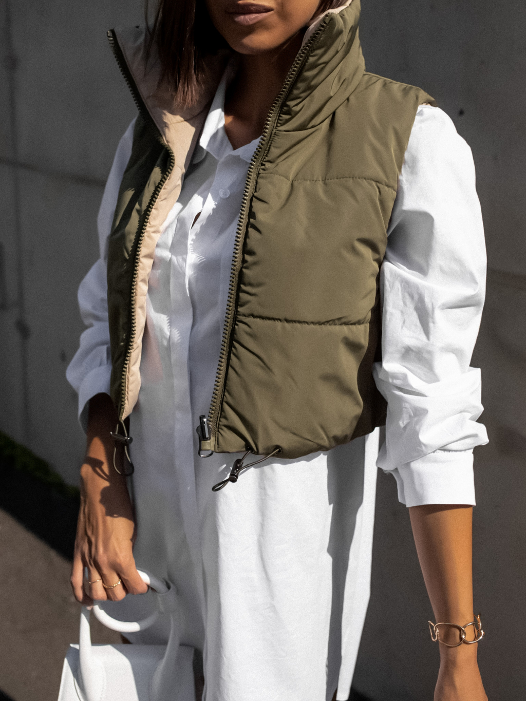 Zeleno béžová oboustranná vestička BRANCHE
