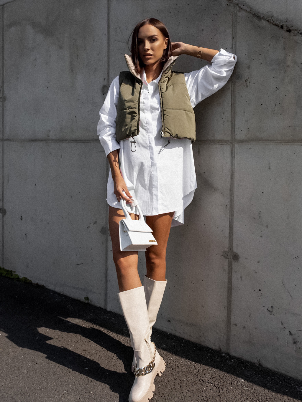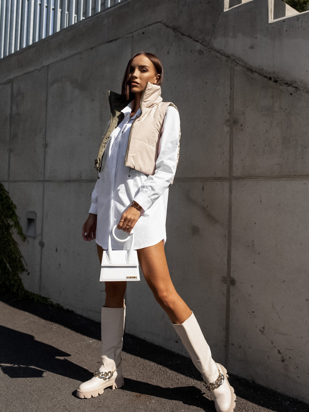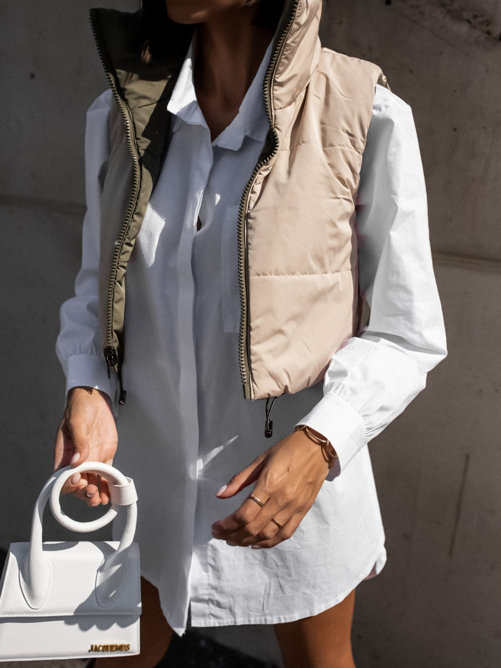 Zeleno béžová oboustranná vestička BRANCHE