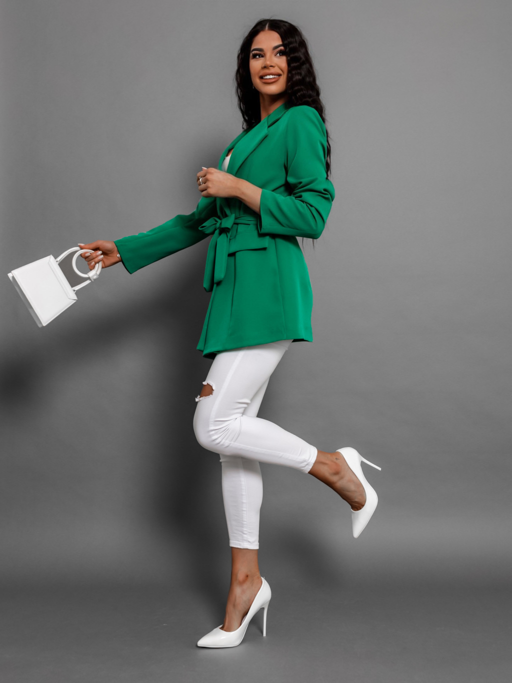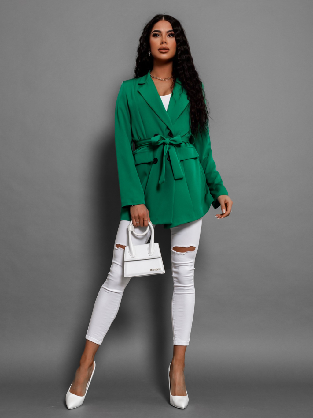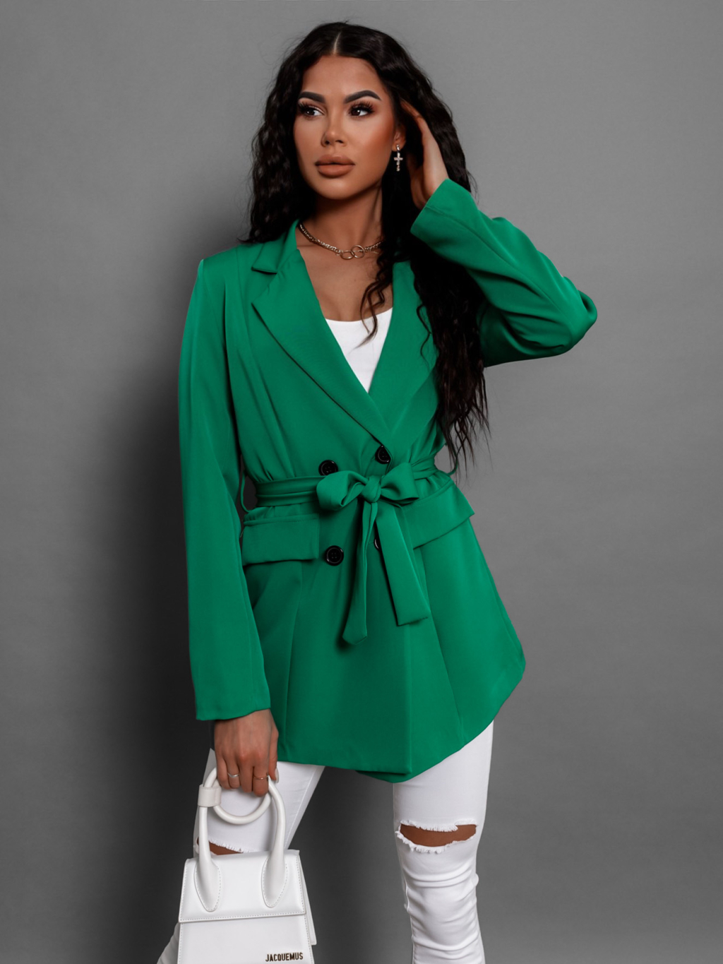 Zelený lehký elegantní kabátek SOLID se zavazováním