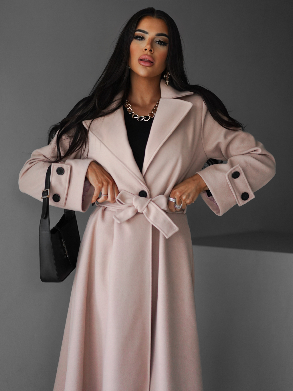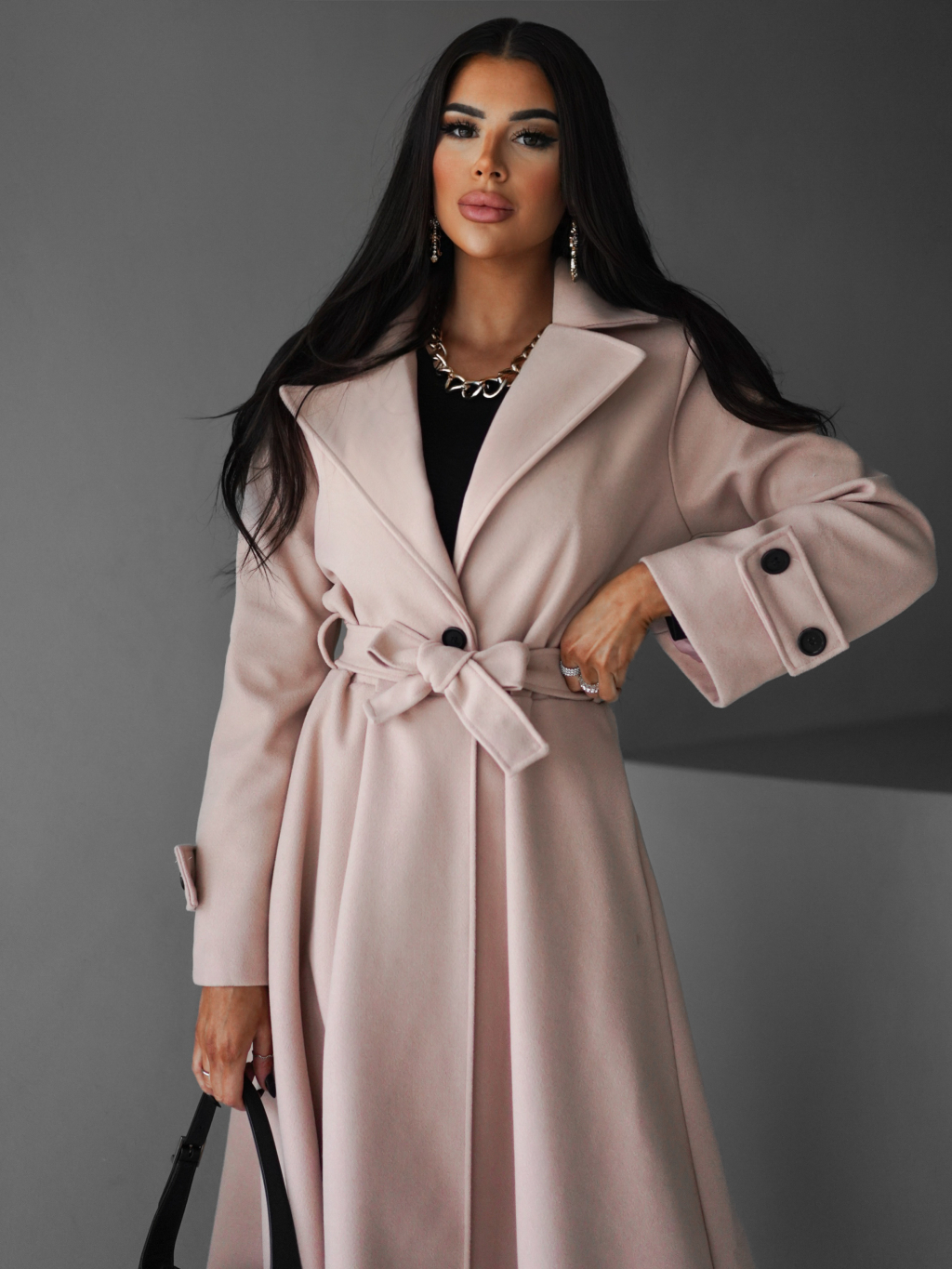 Růžový dlouhý kabát YALENA