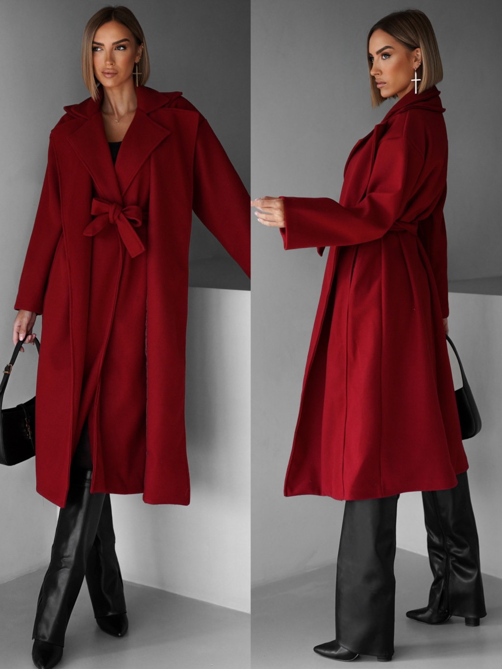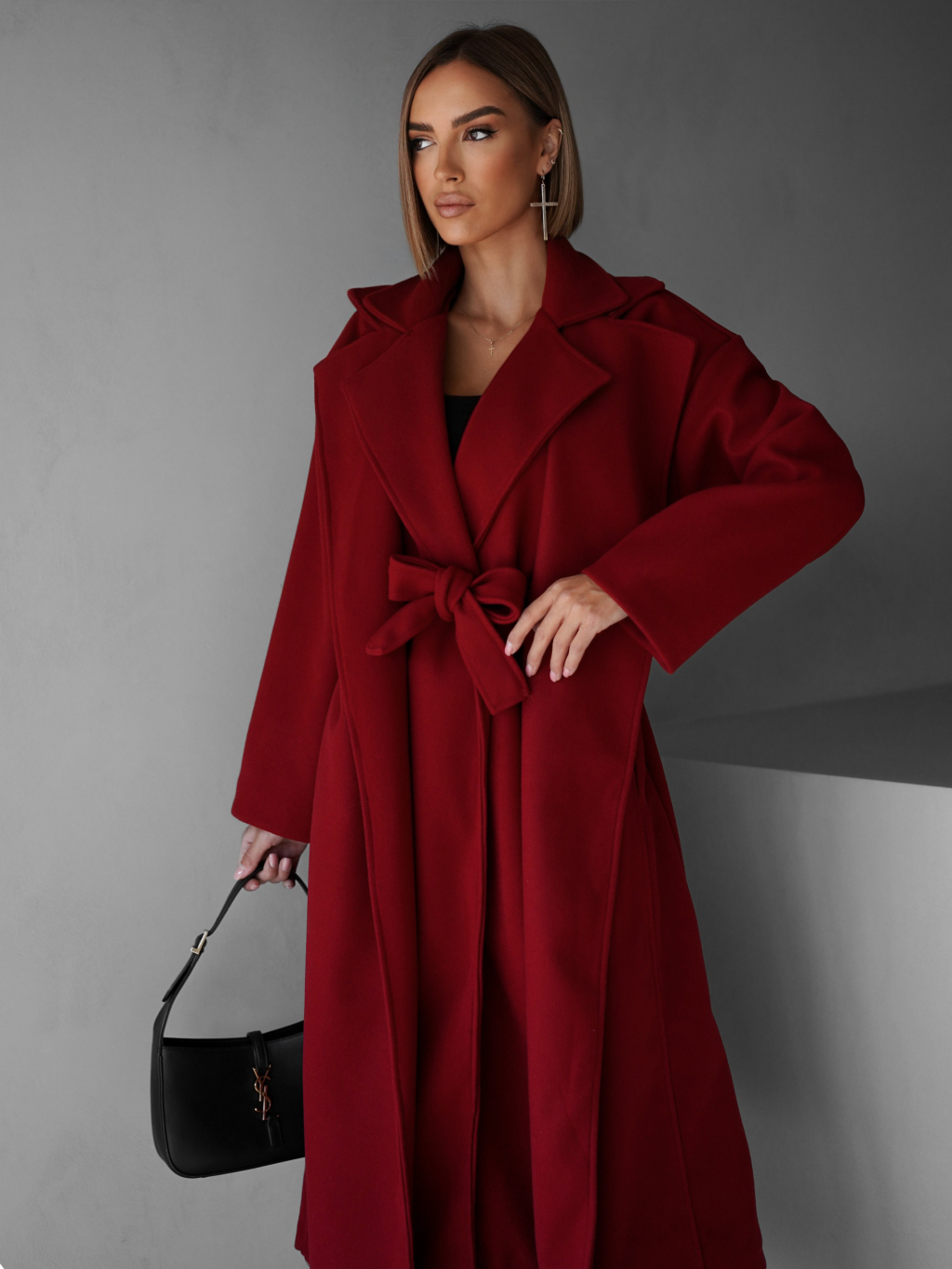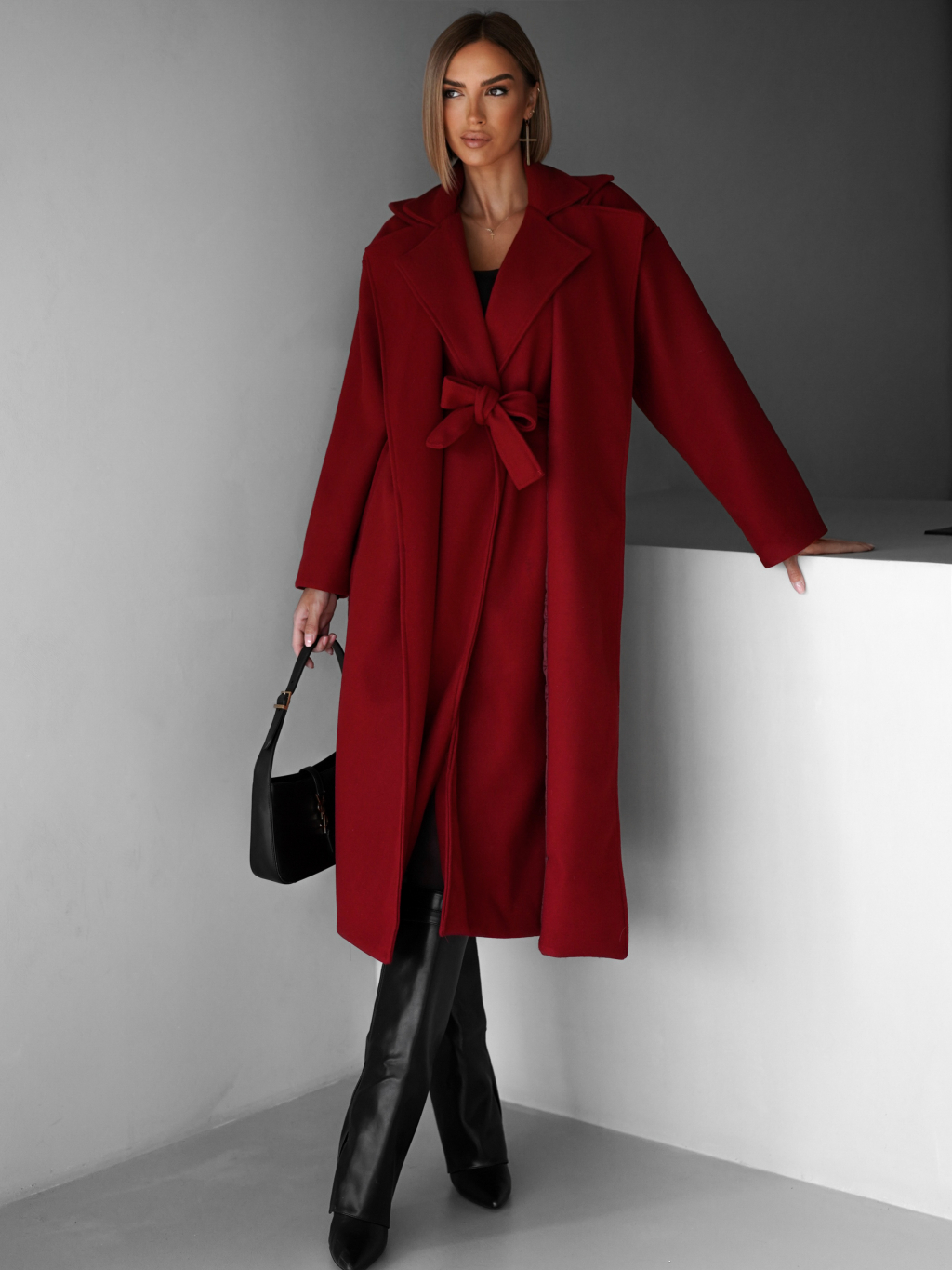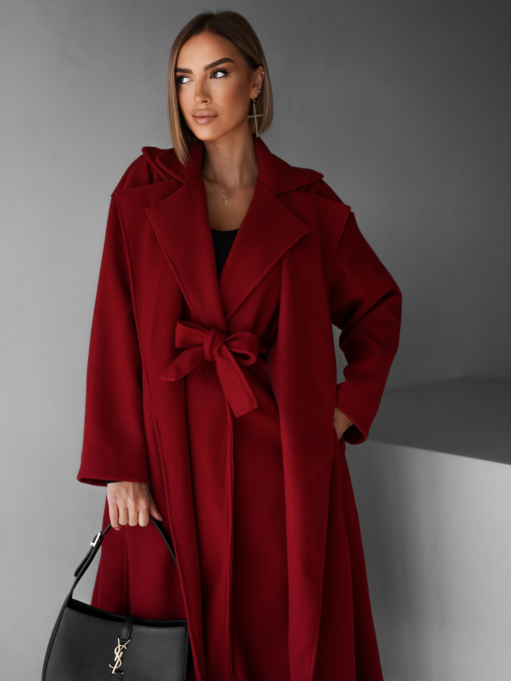 Červený dlouhý zavazovací flaušový kabát KALDEM