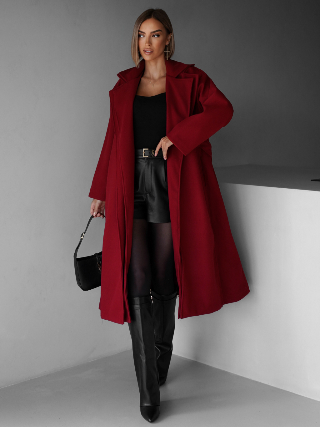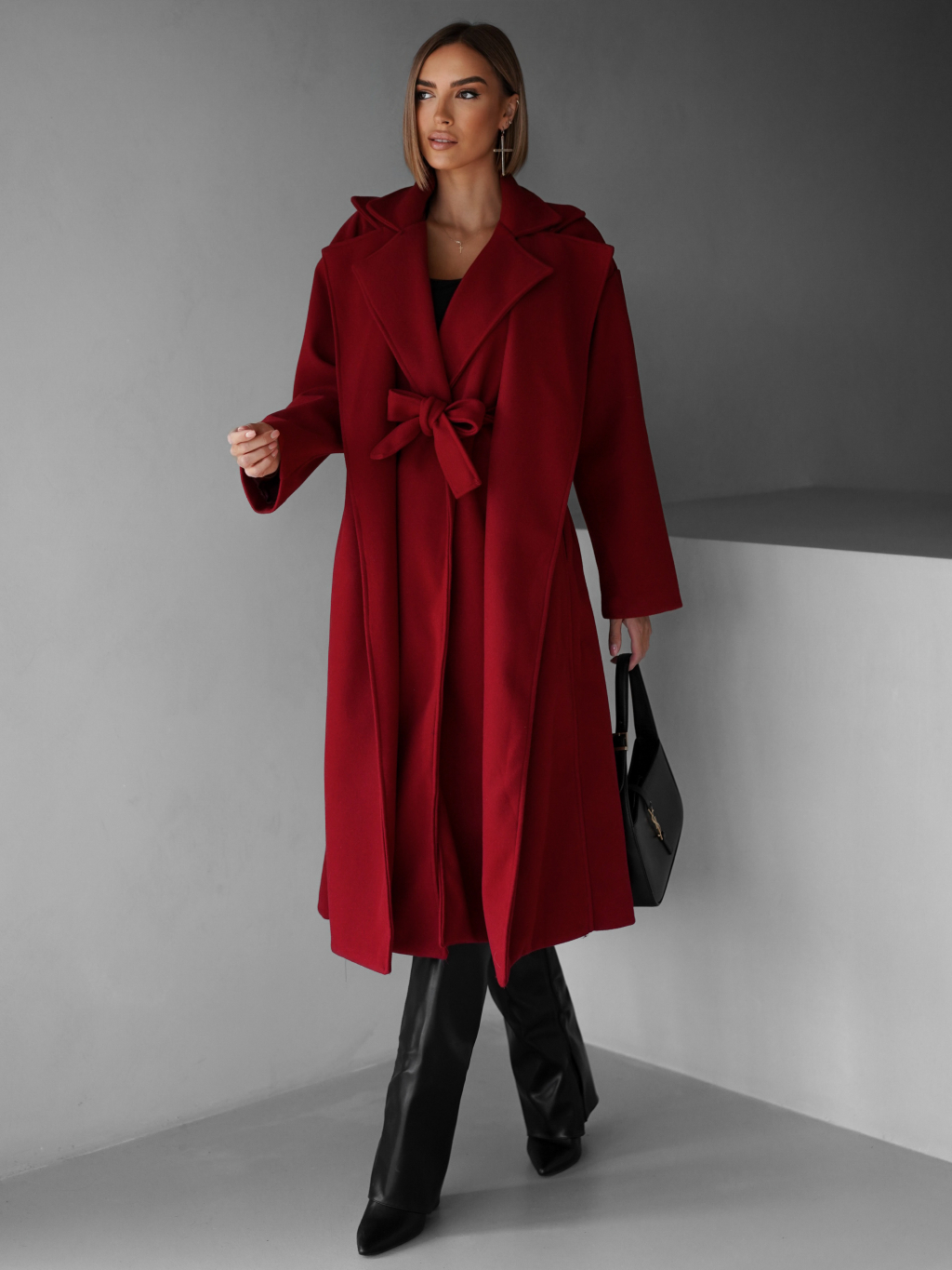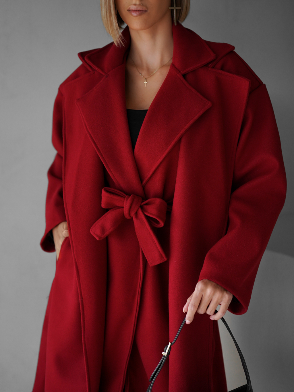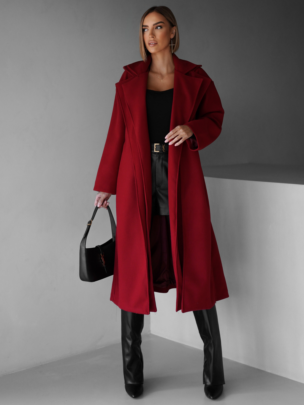 Červený dlouhý zavazovací flaušový kabát KALDEM
