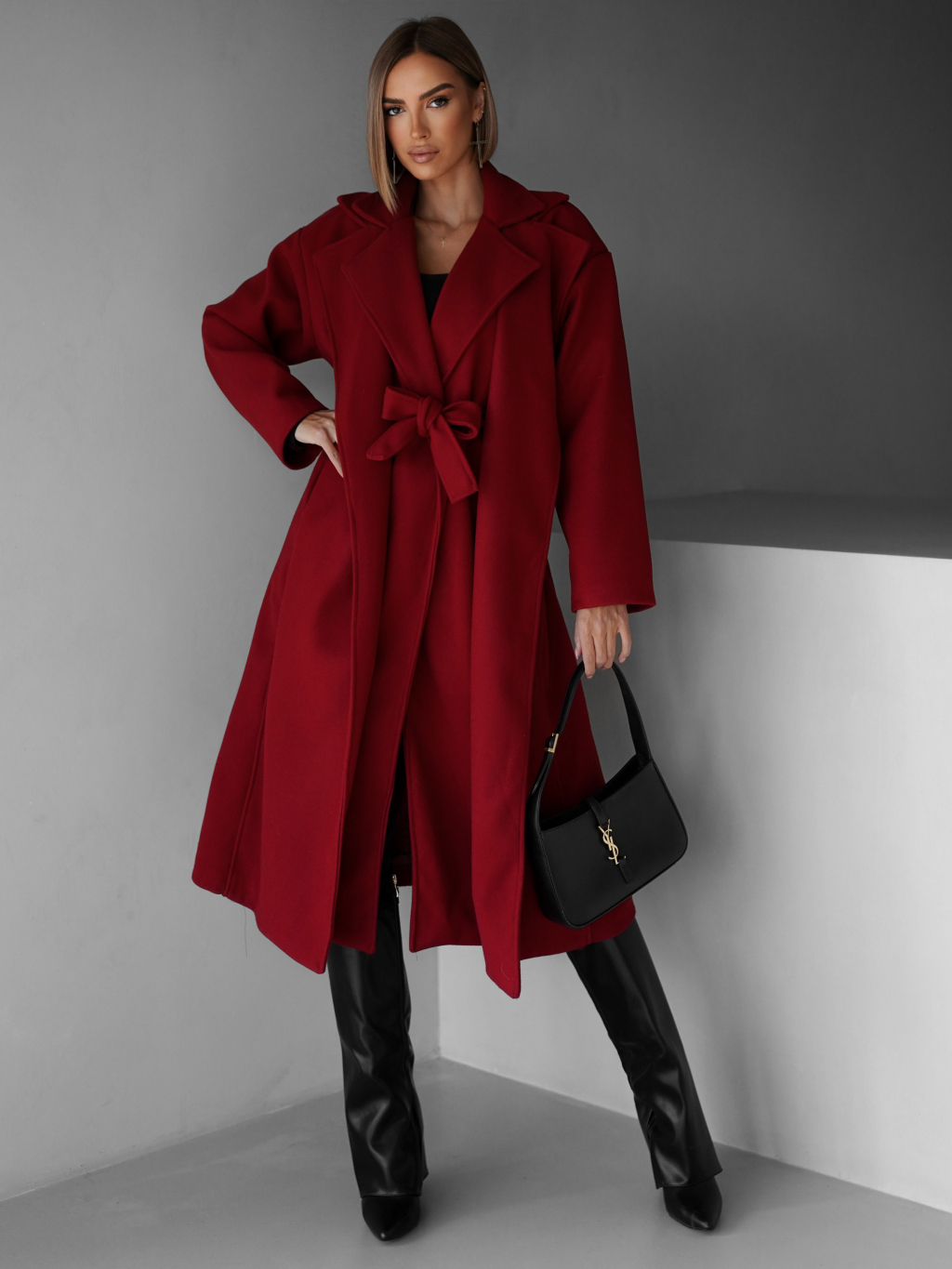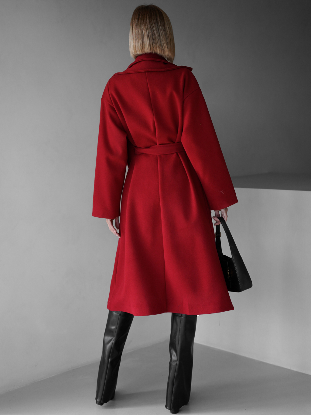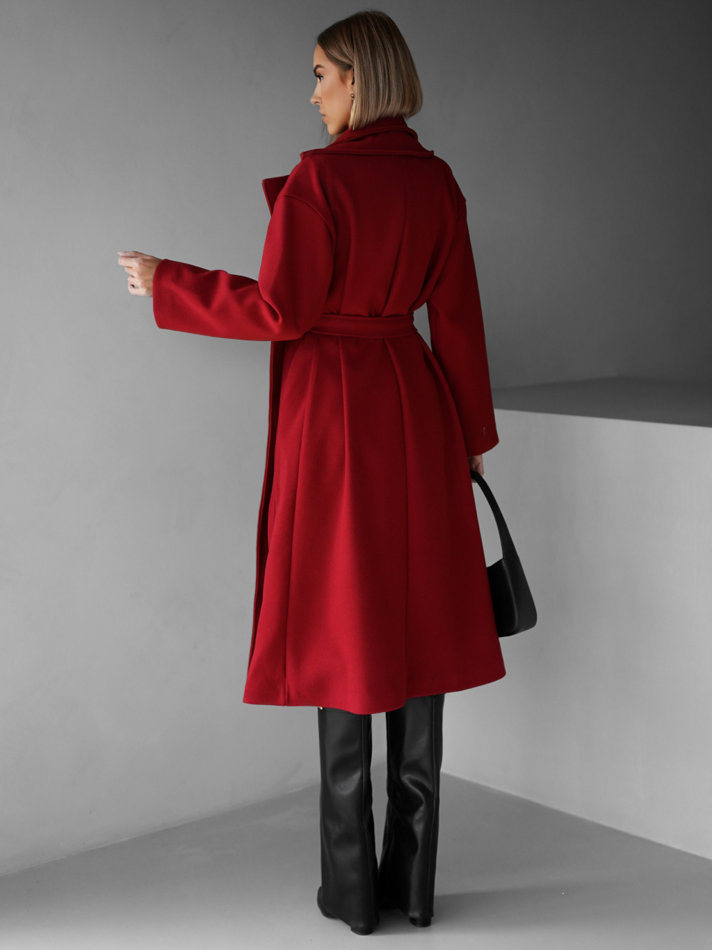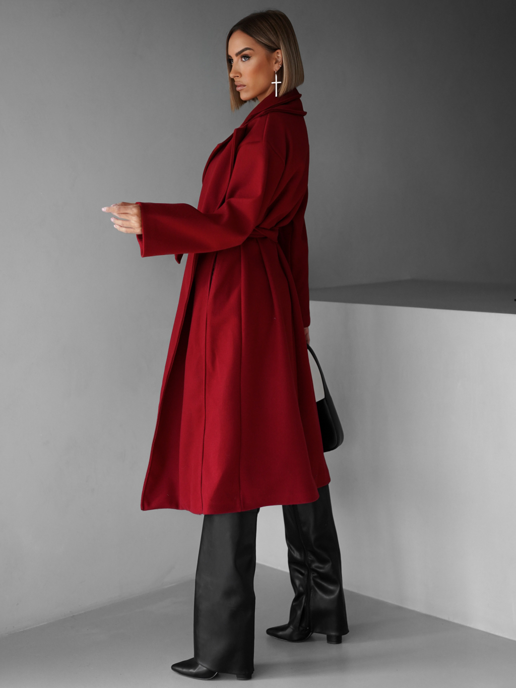 Červený dlouhý zavazovací flaušový kabát KALDEM