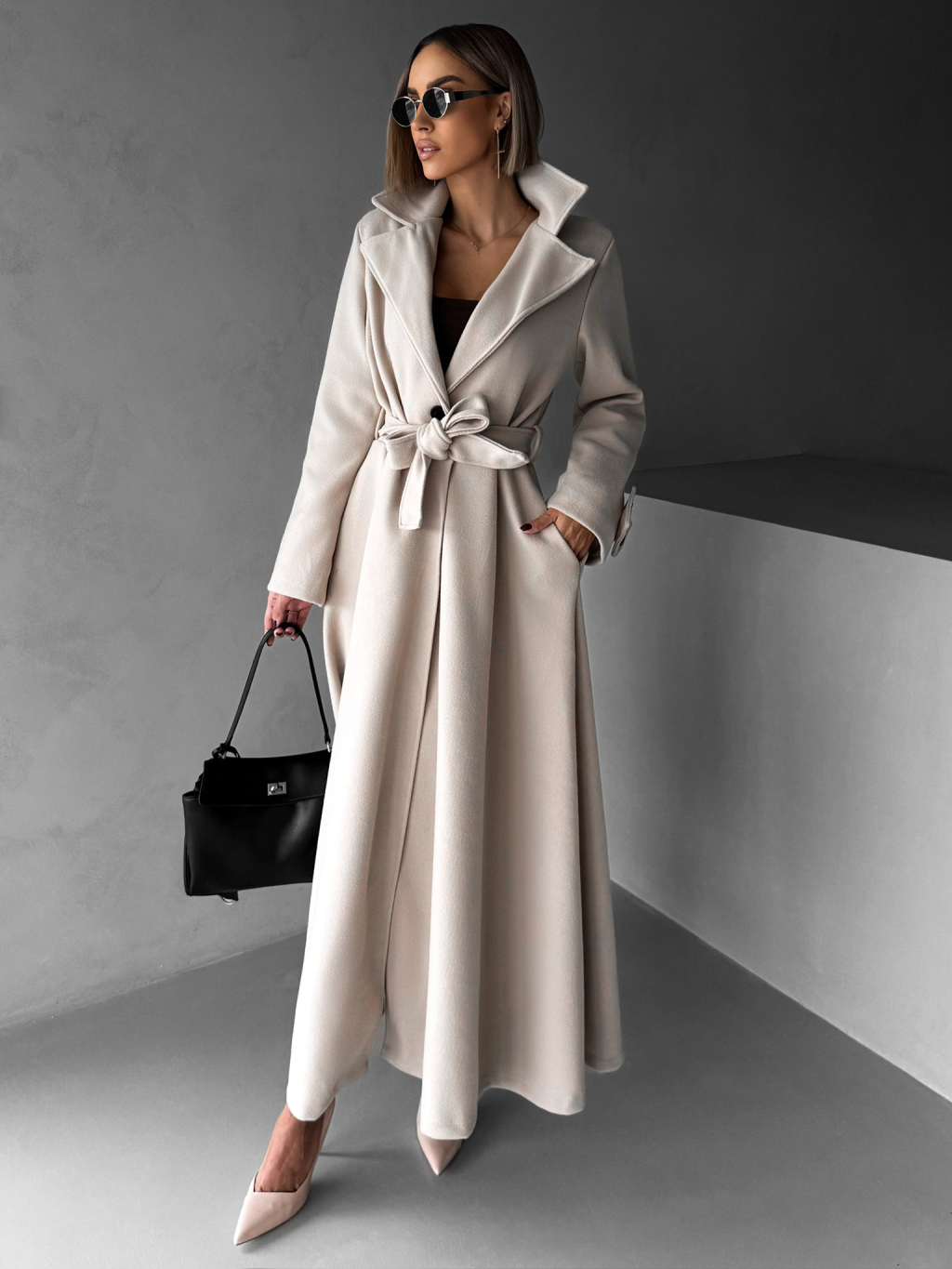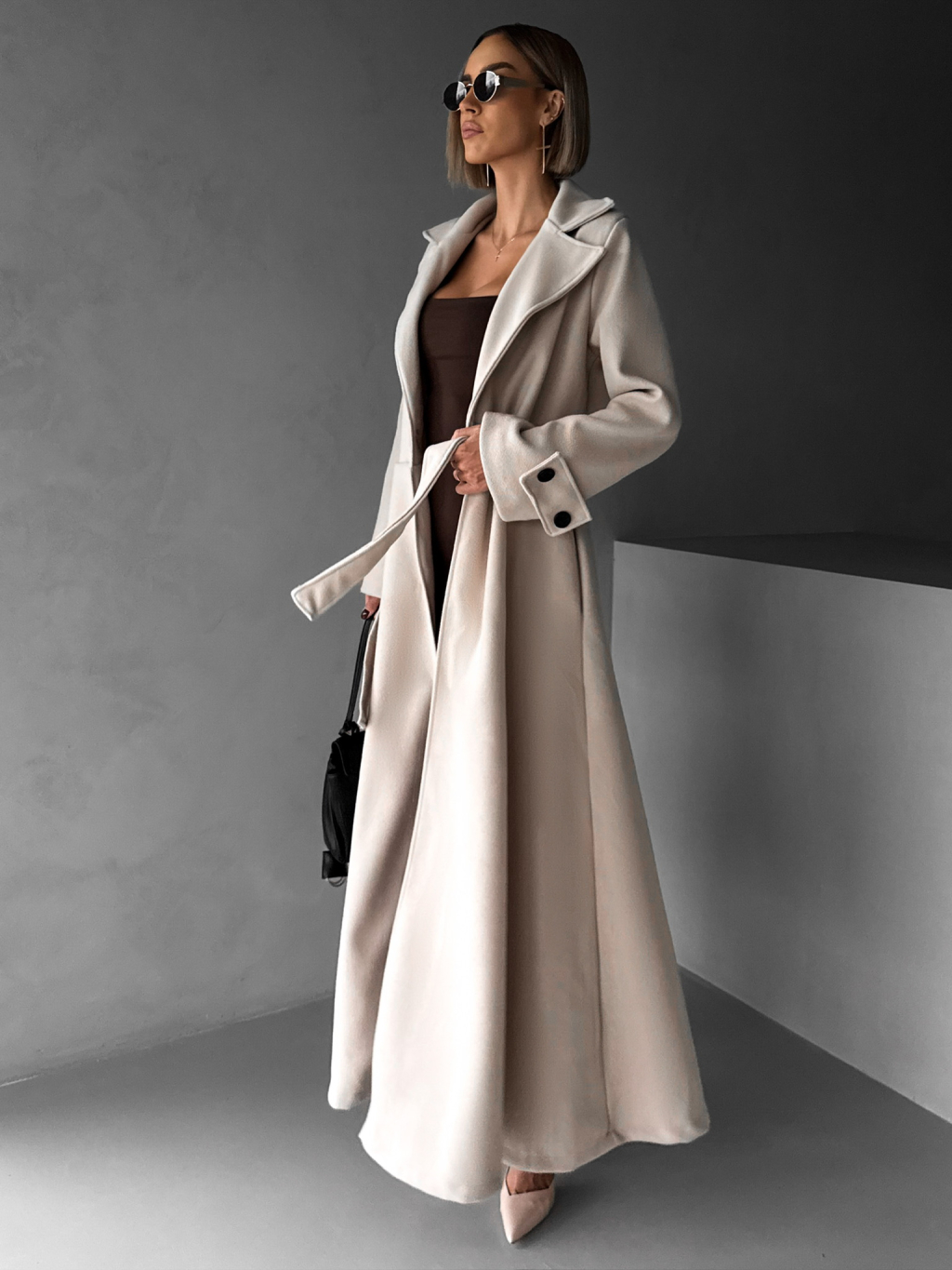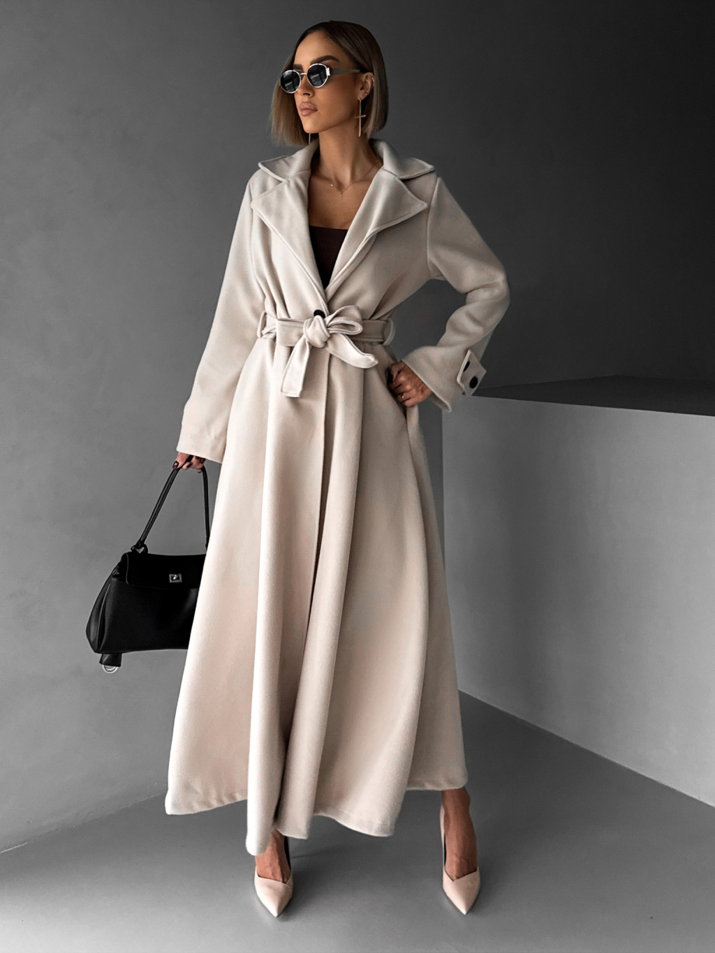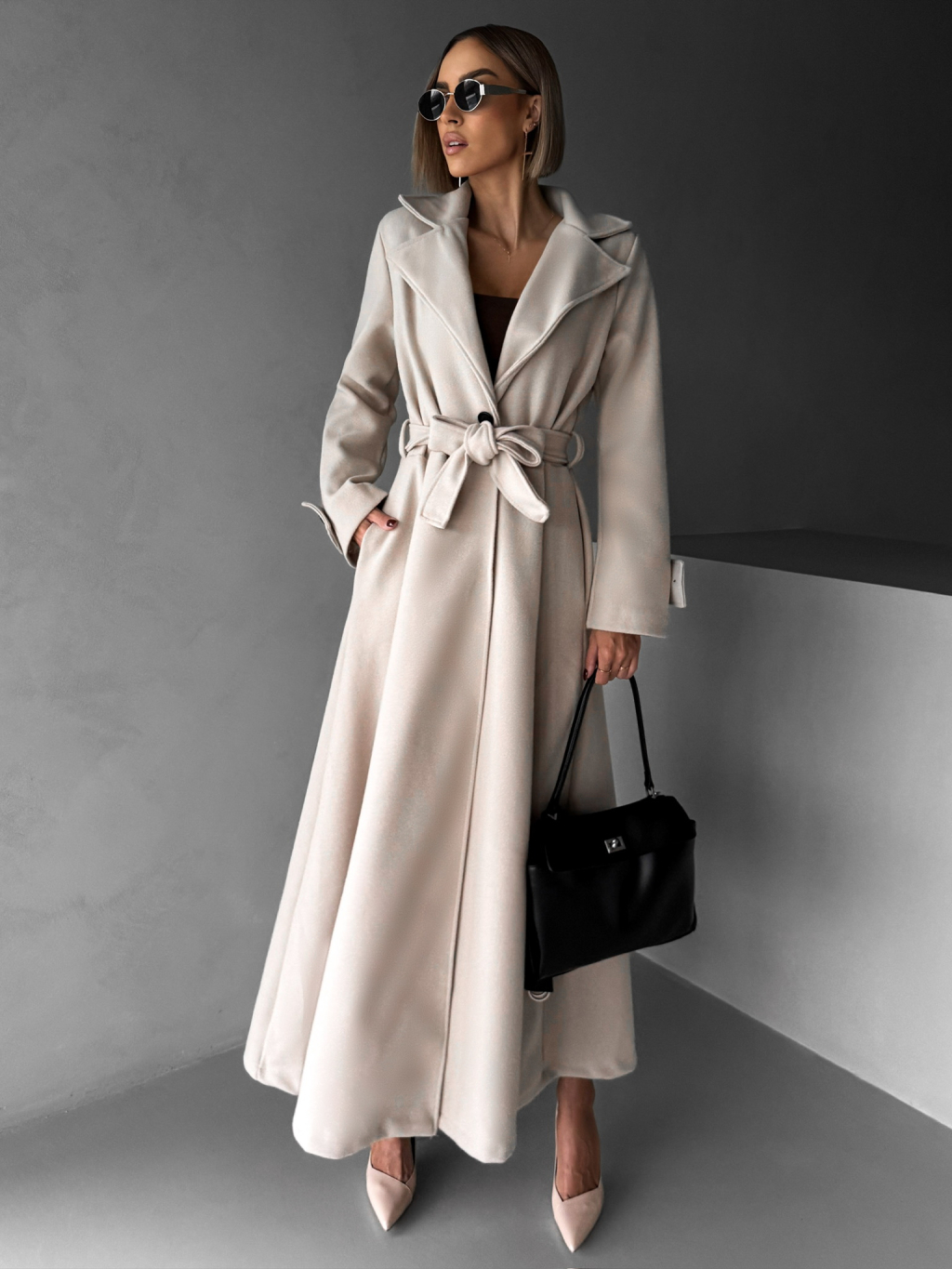 Krémový dlouhý áčkový kabát YALENA s páskem