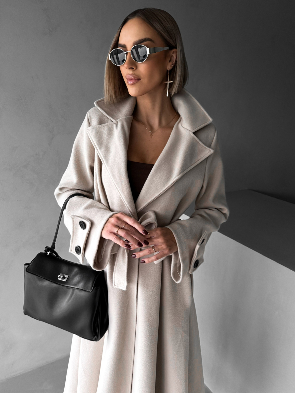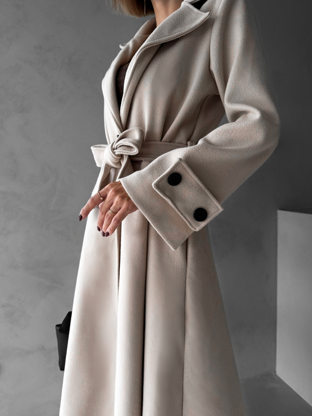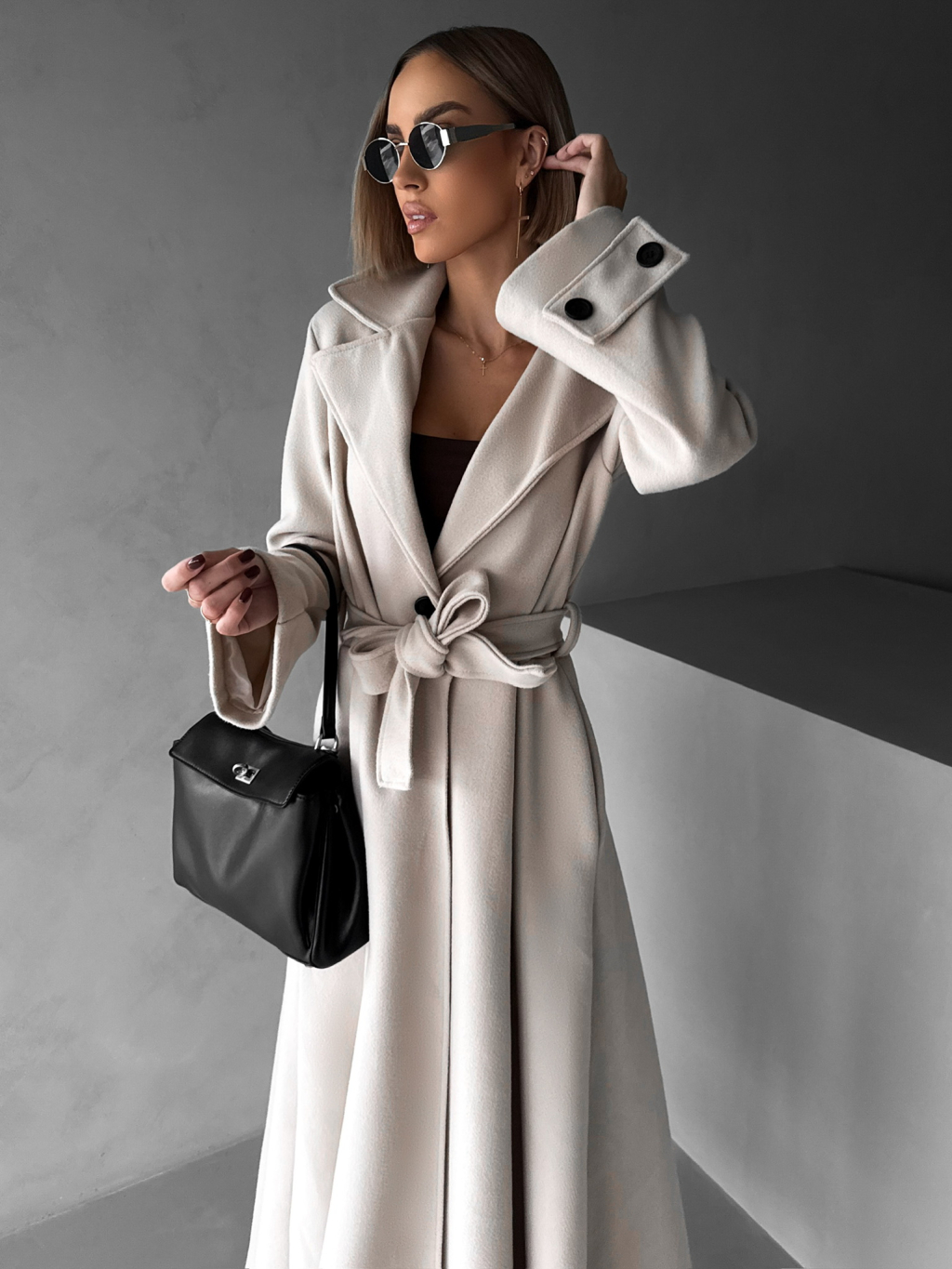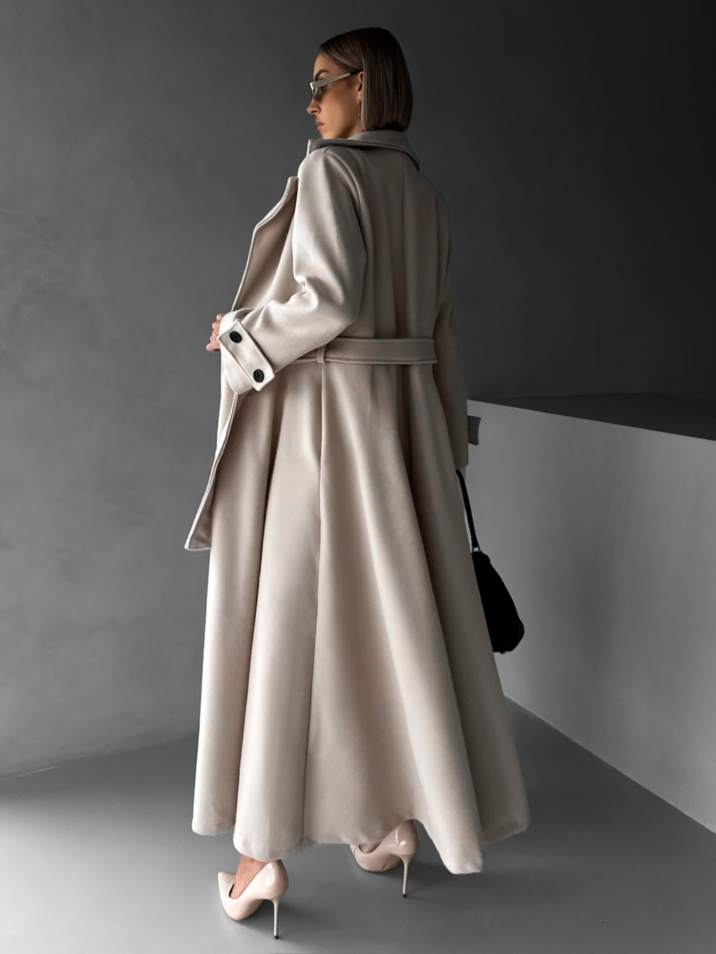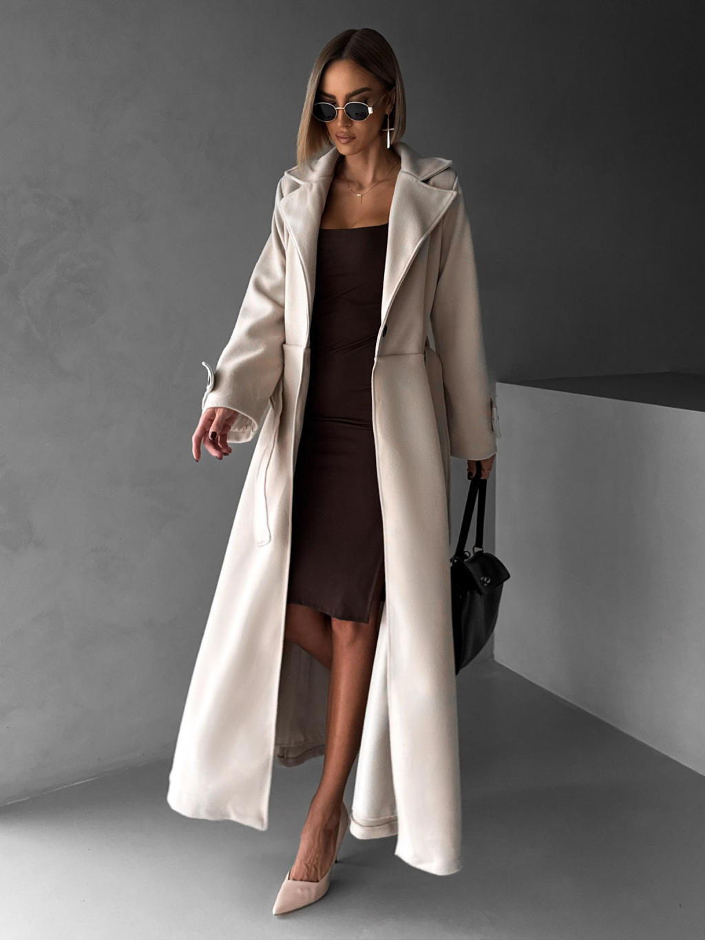 Krémový dlouhý áčkový kabát YALENA s páskem