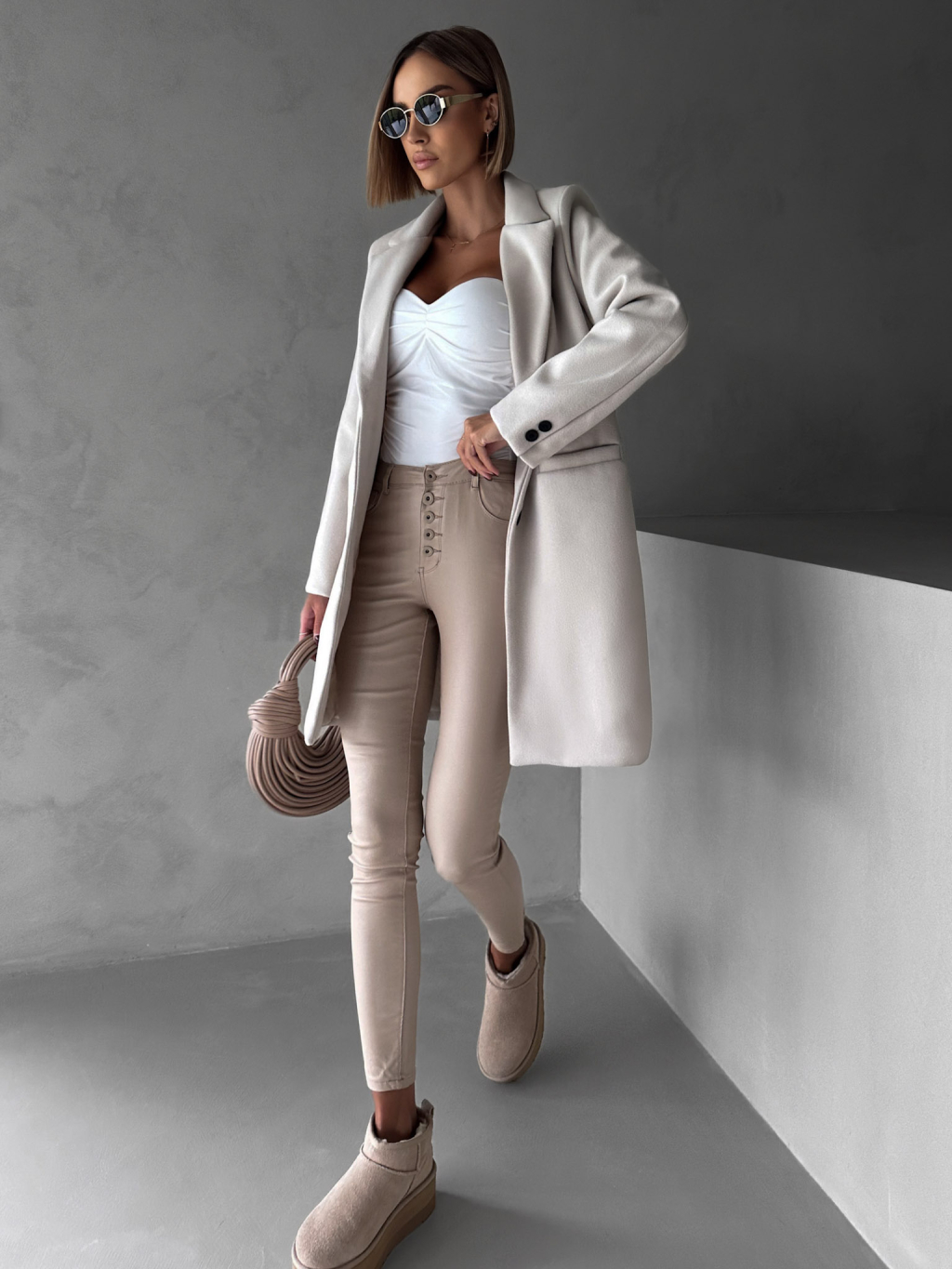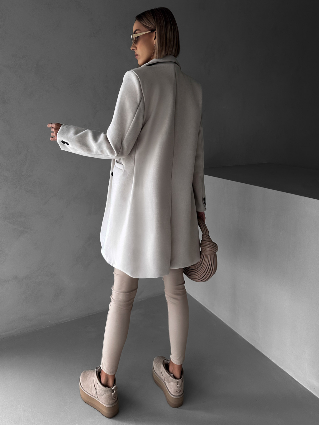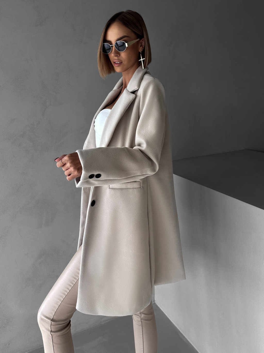 Krémový elegantní midi flaušový kabát NOAM