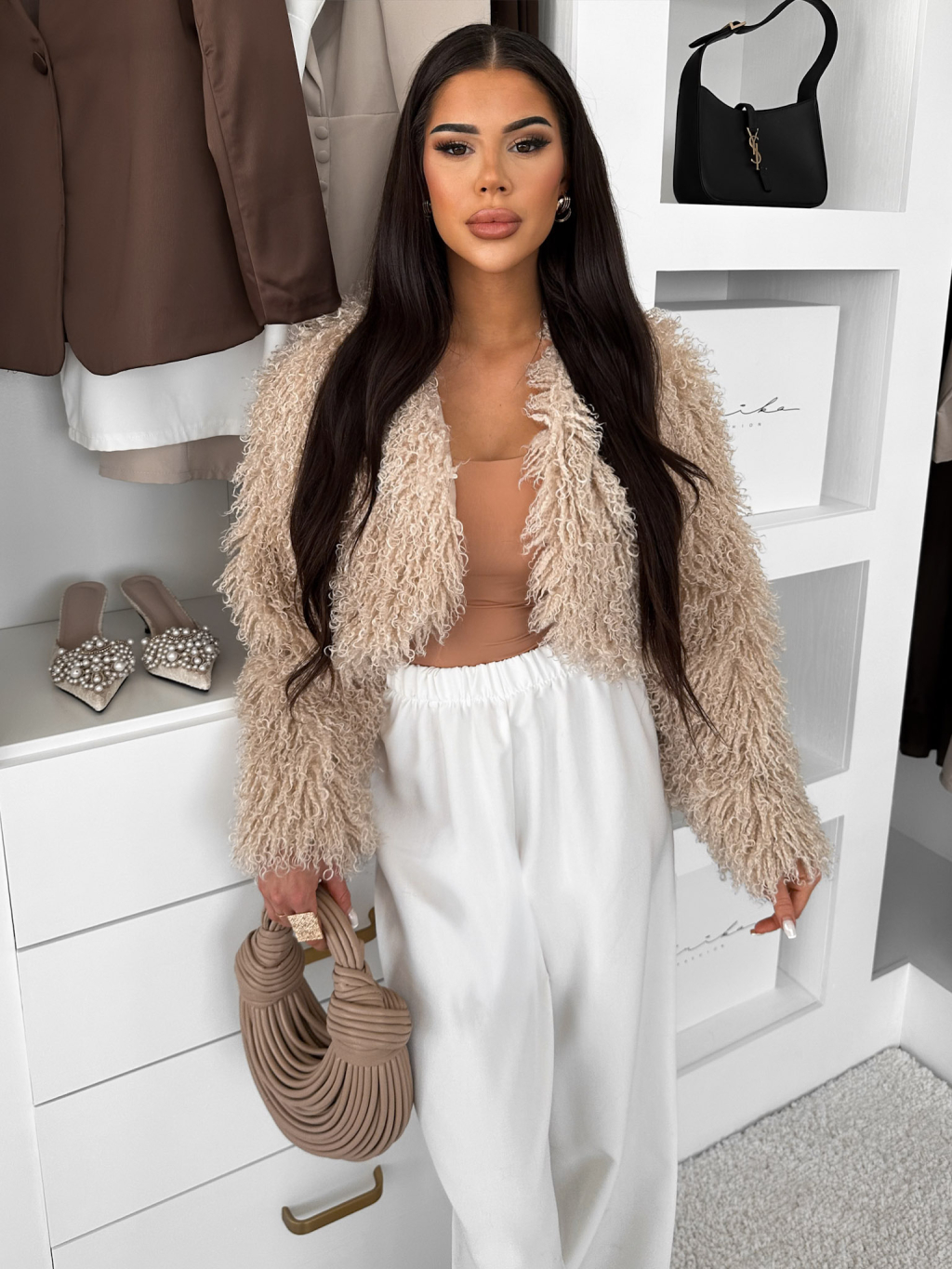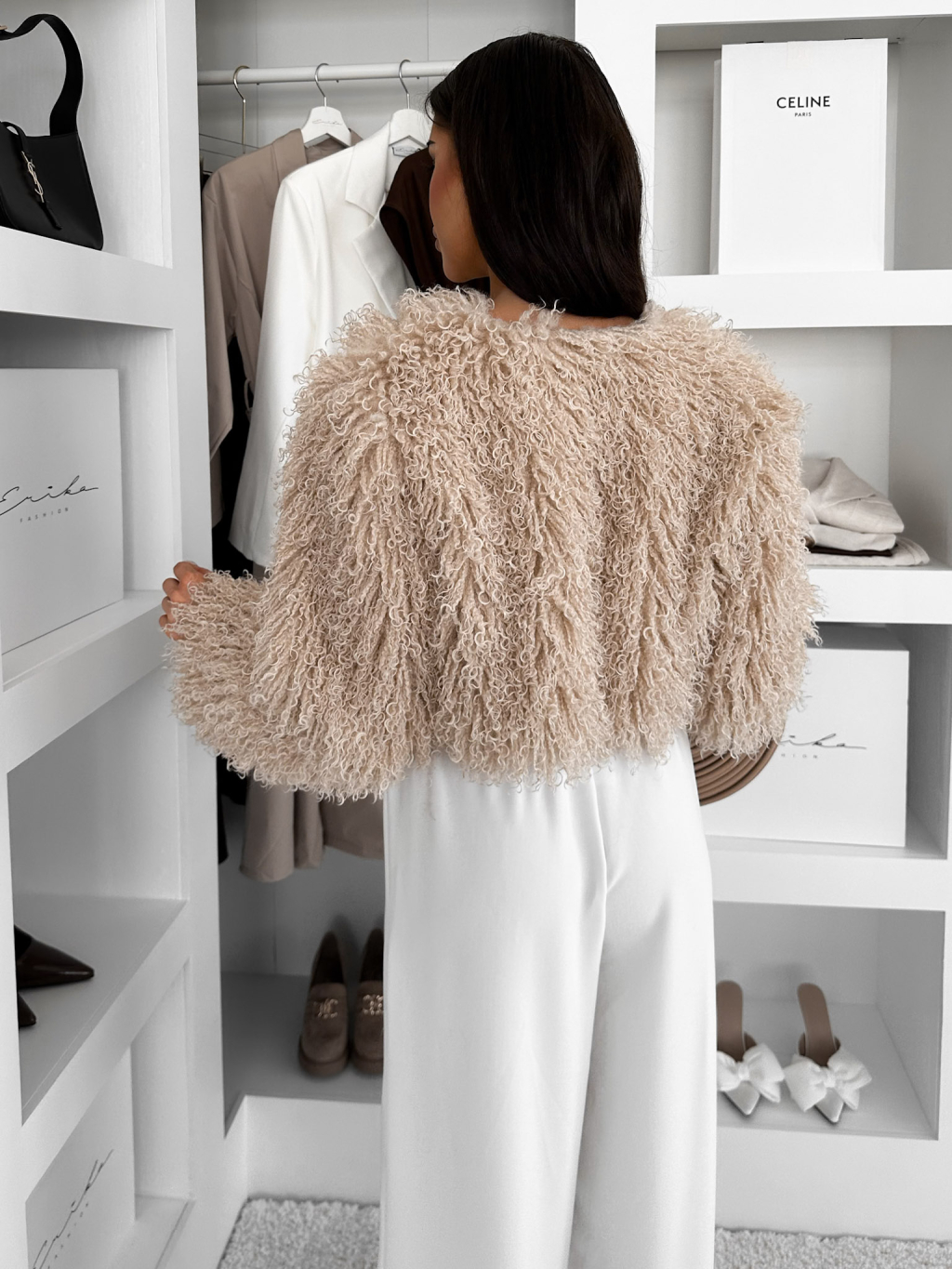 Béžový faux fur krátký kožešinový kabátek TUYEN