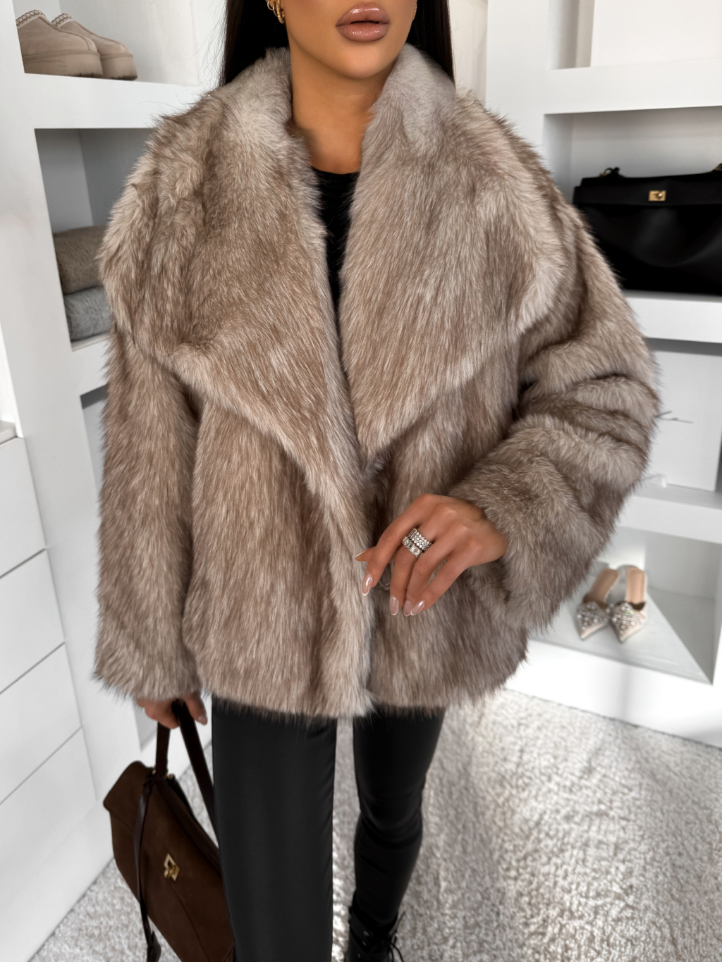 Béžový kožešinový žíhaný faux fur kabát MINVERO