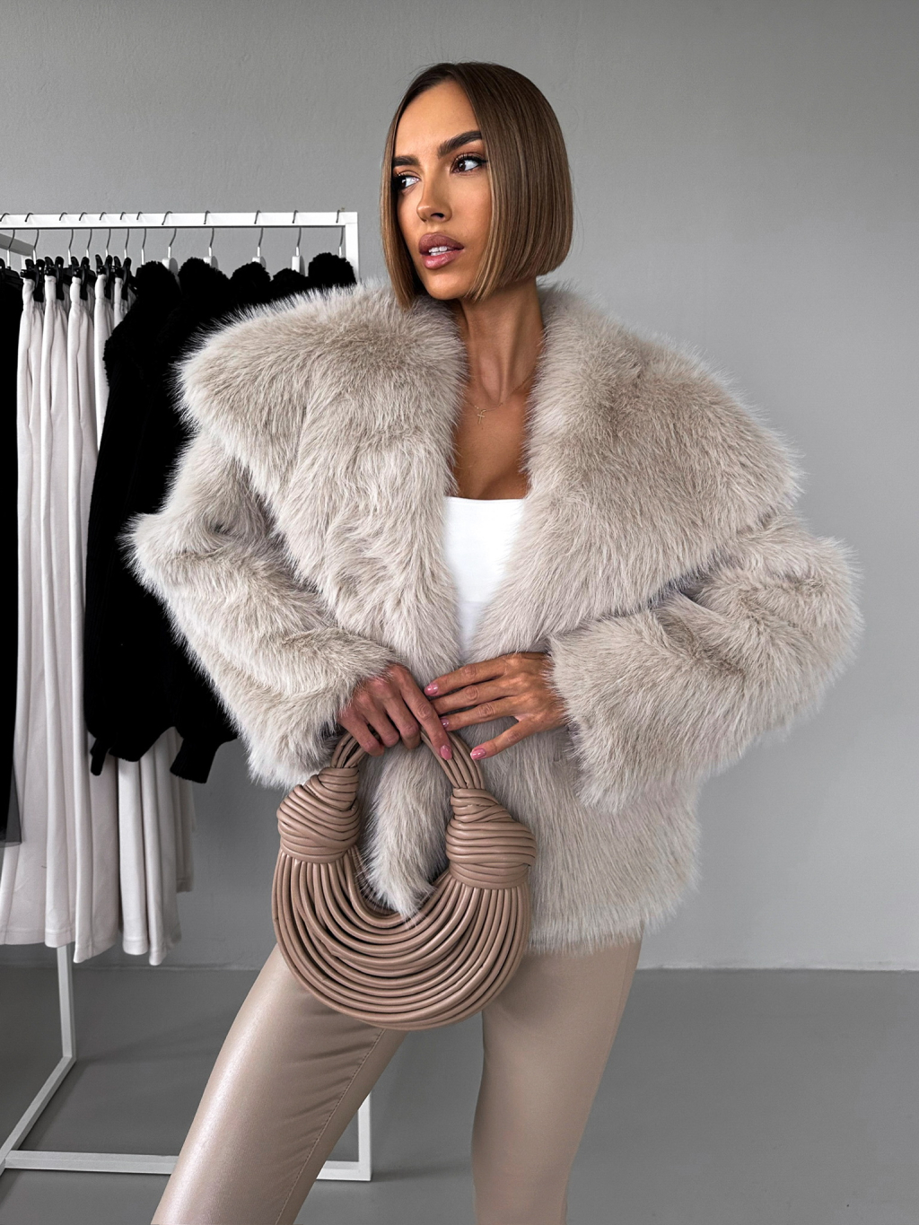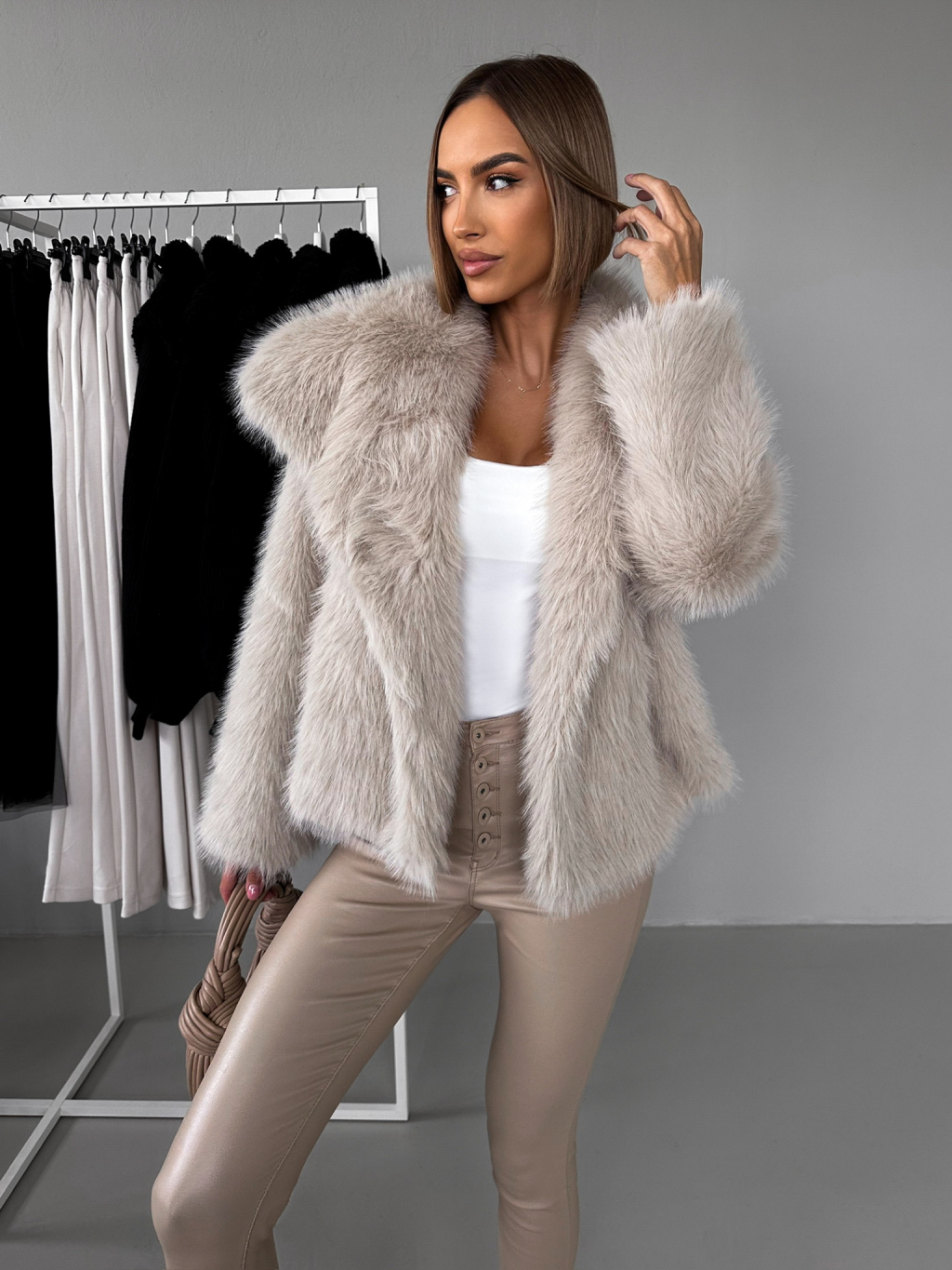 Béžový krátký faux fur kožesinový kabátek HILARI