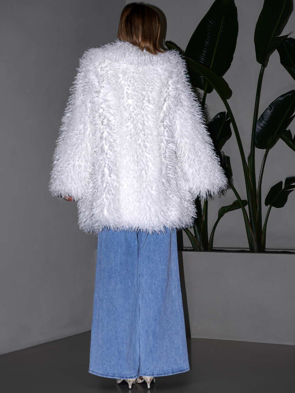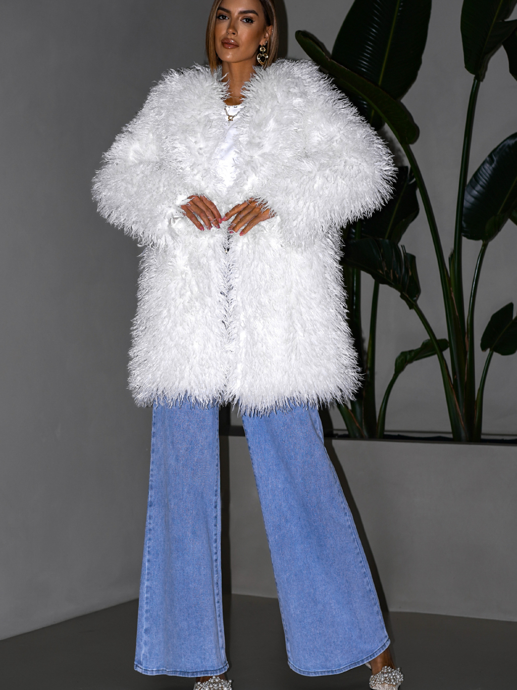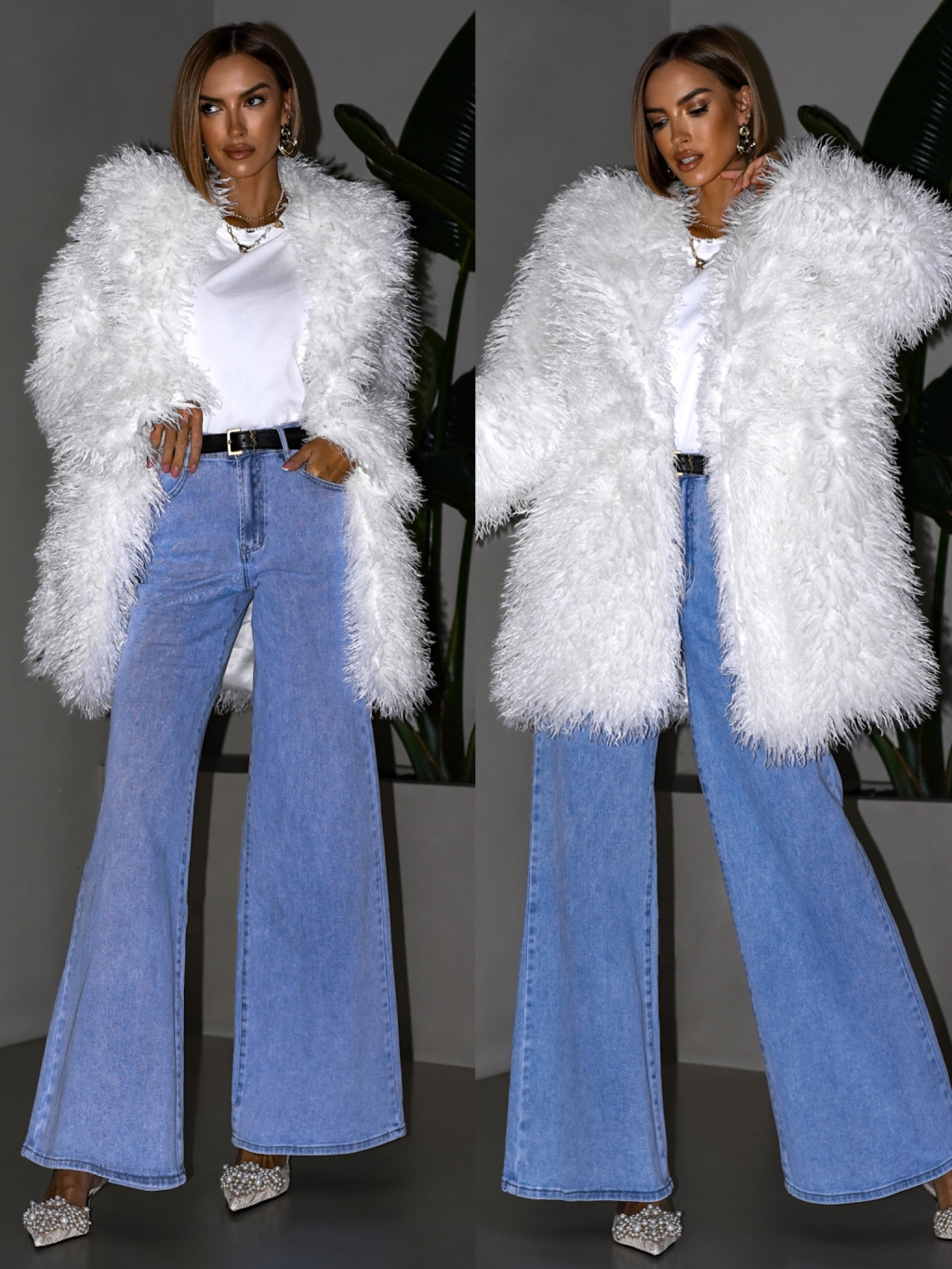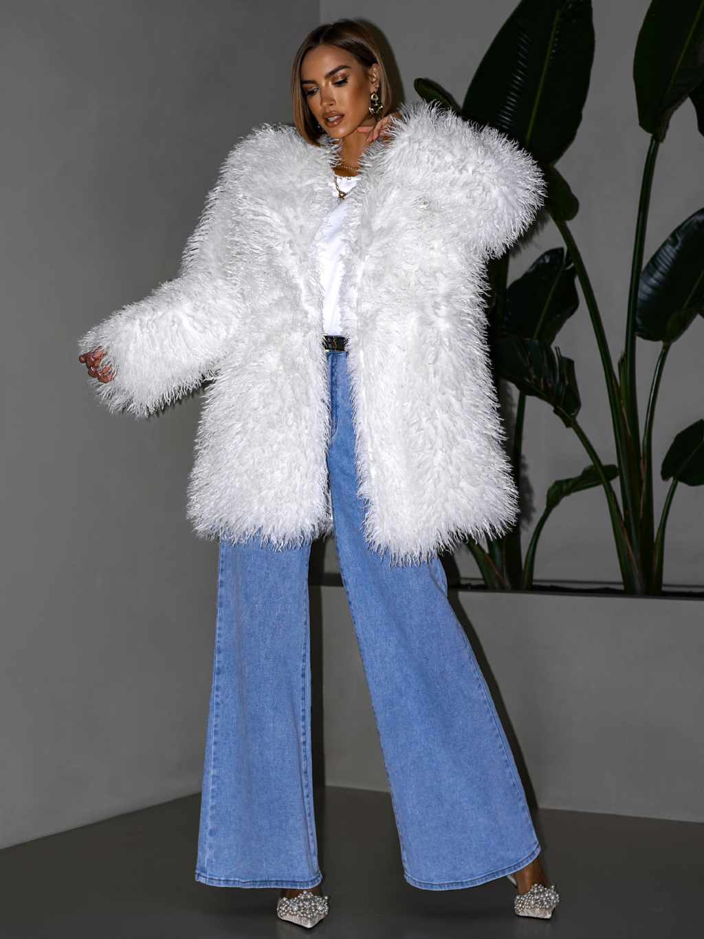 Bílý faux fur kožešinový kabátek KORTNY