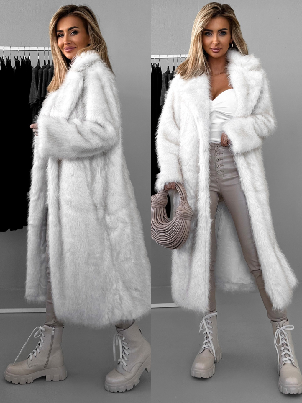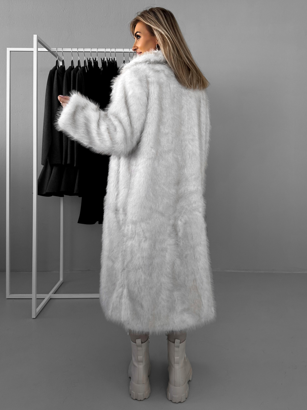 Bílý žíhaný dlouhý faux fur kožešinový kabát KINKA