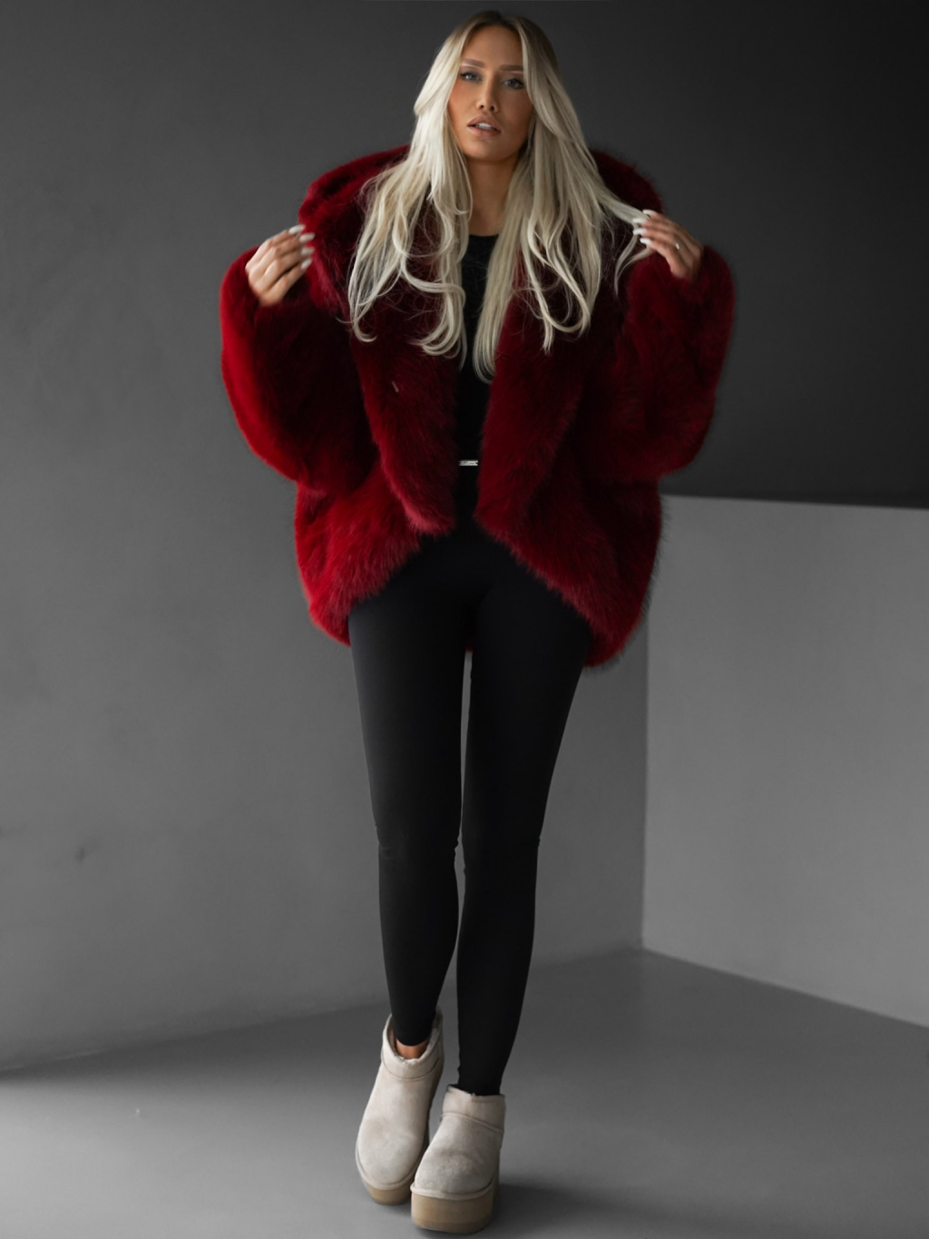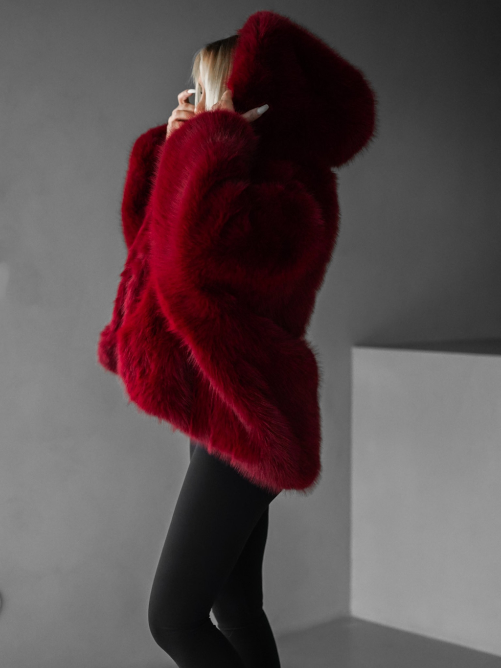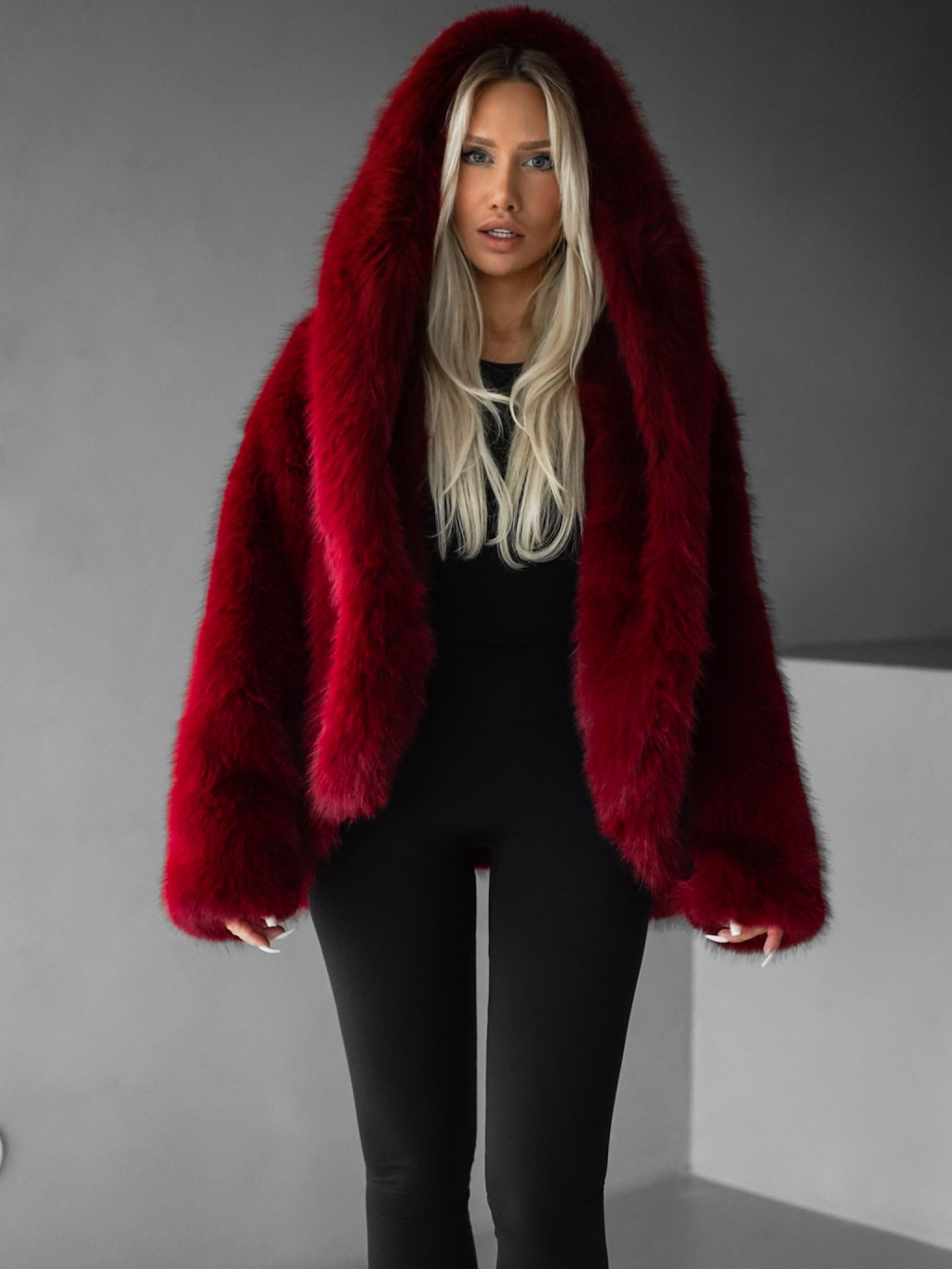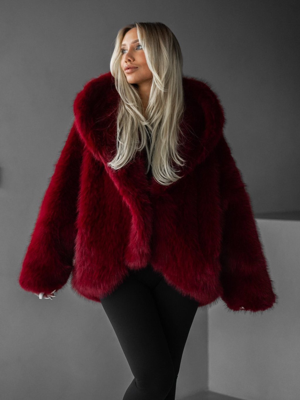 Bordó faux fur kožešinový kabátek kožich XADEN