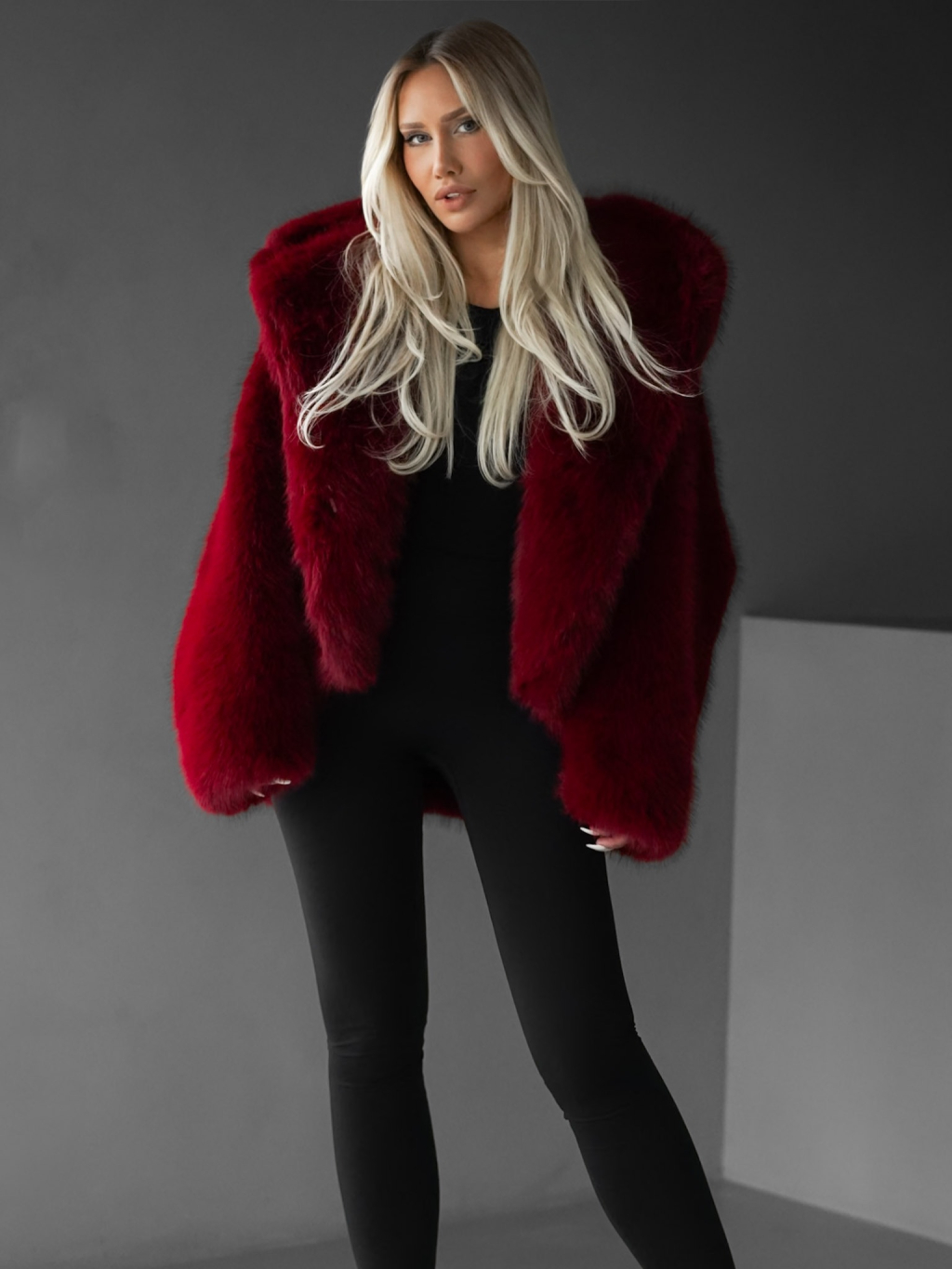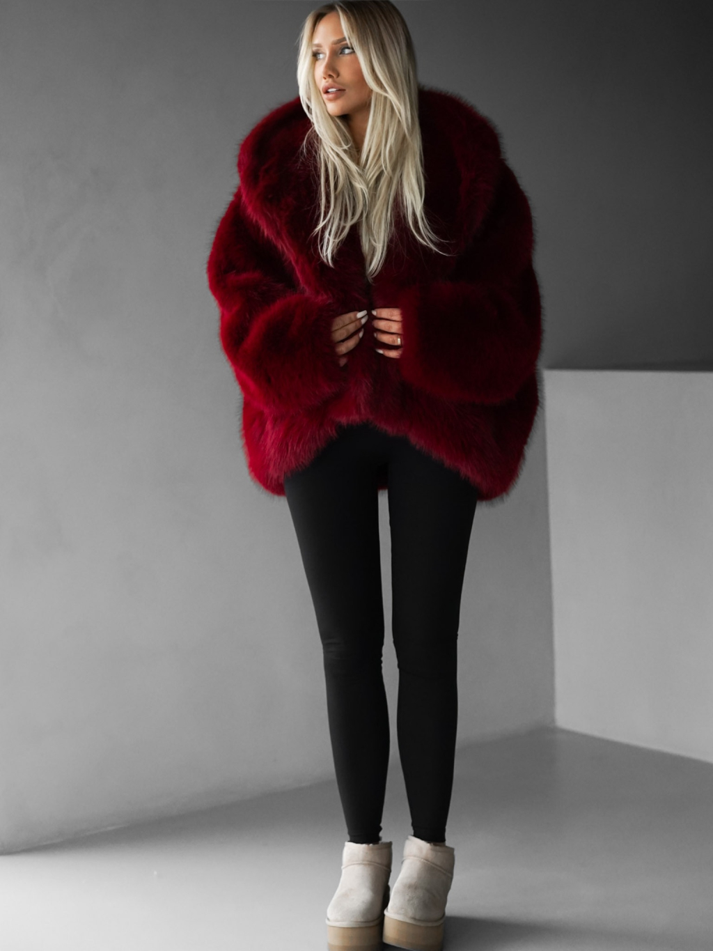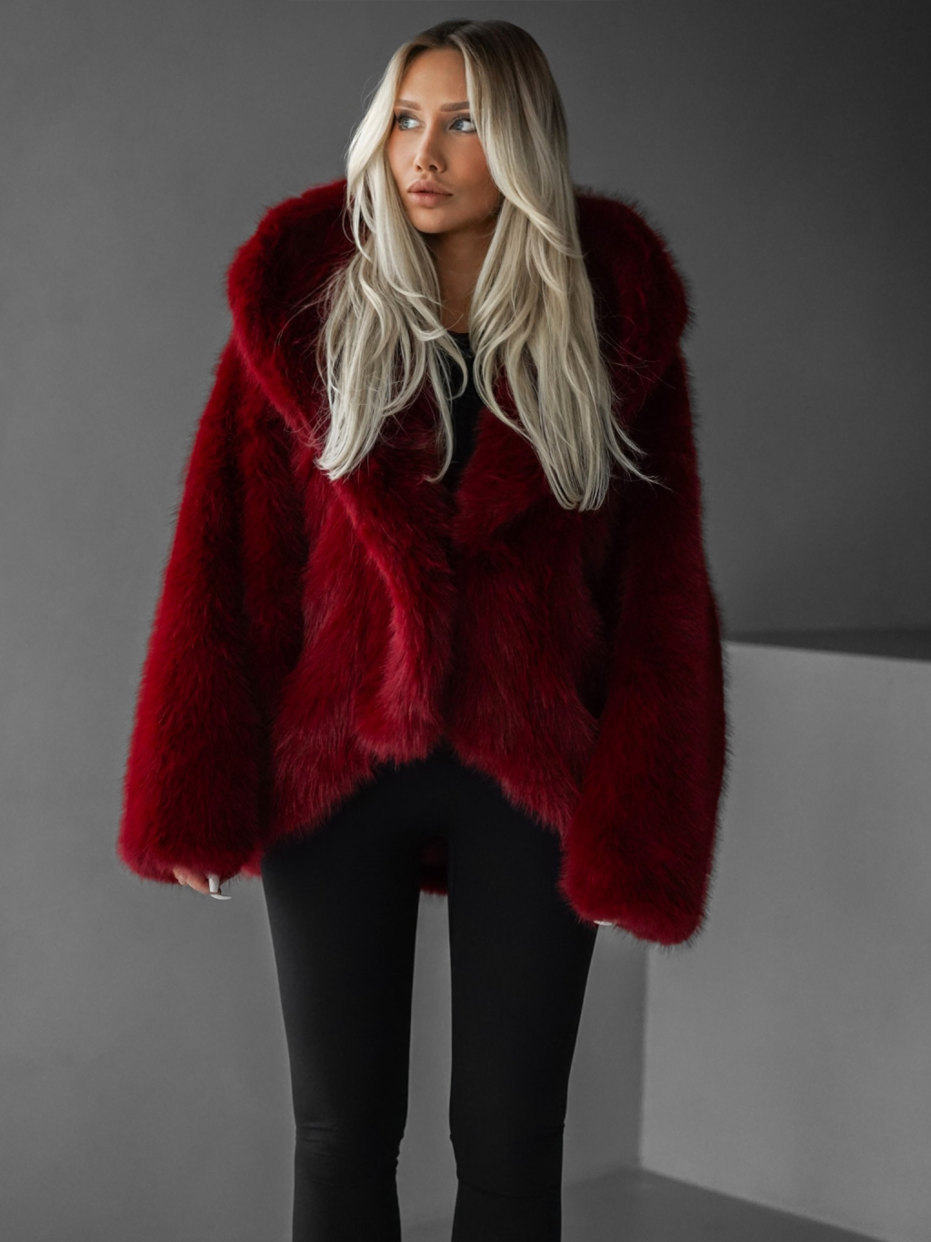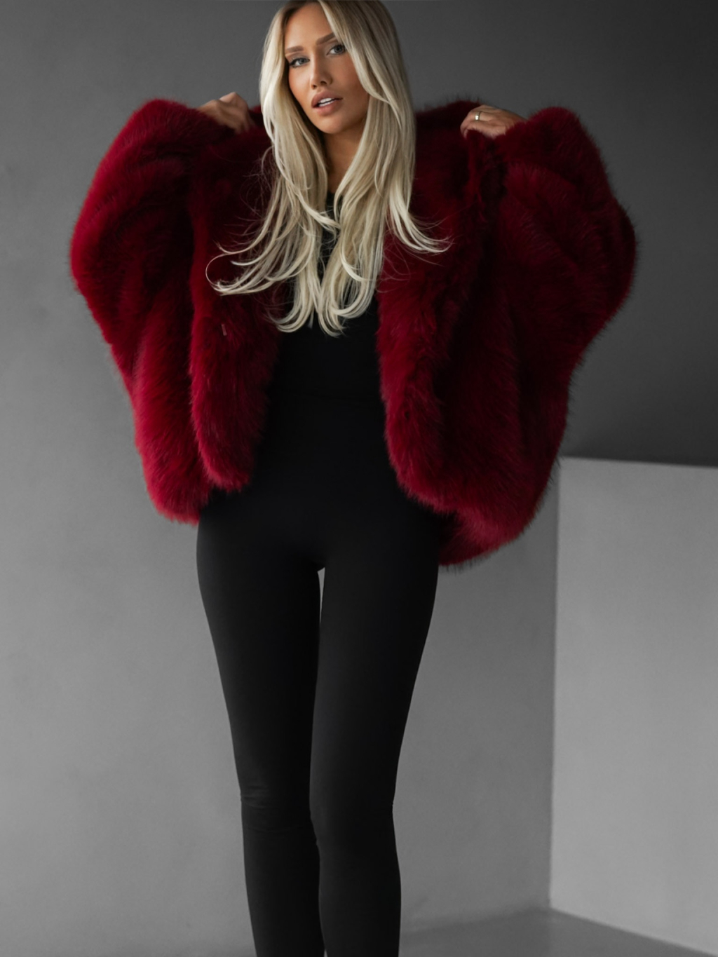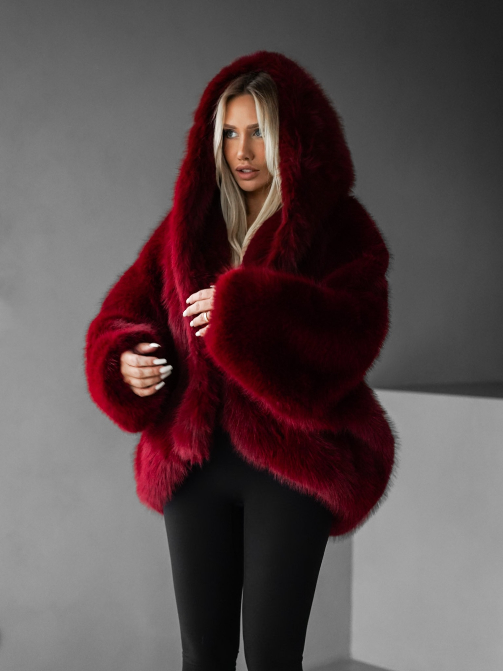 Bordó faux fur kožešinový kabátek kožich XADEN