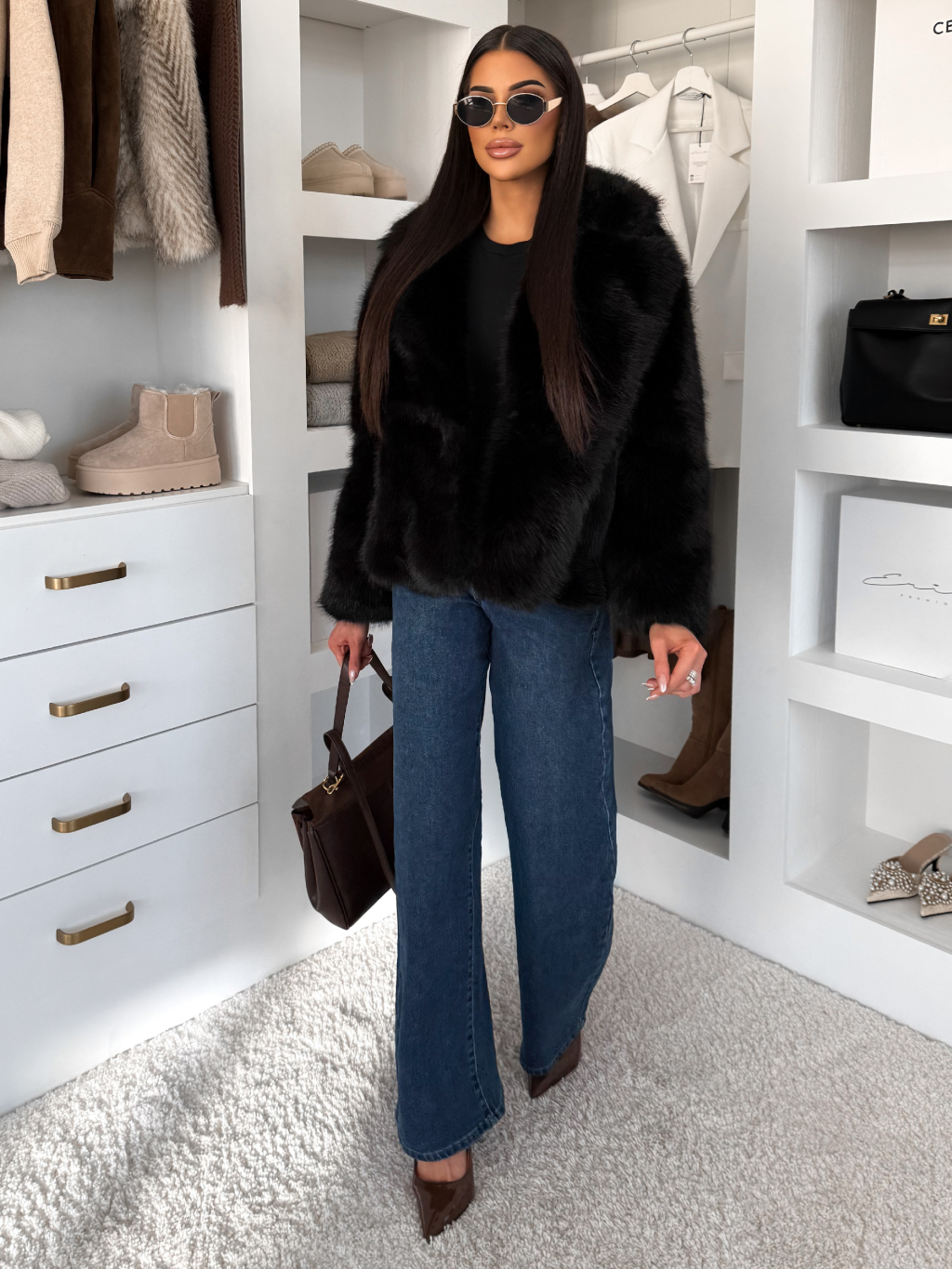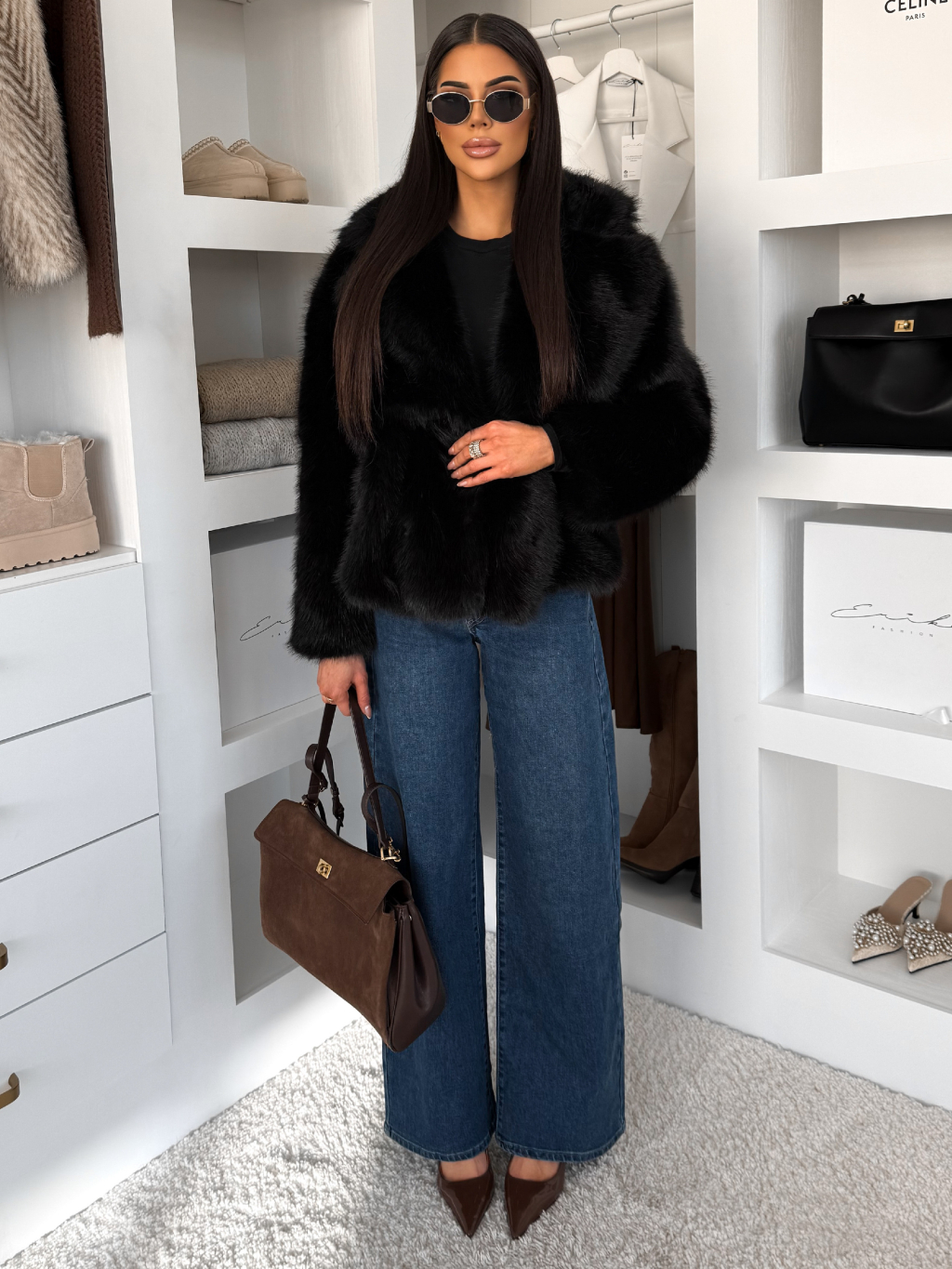 Černý faux fur kožešinový krátký kabátek MORVEN
